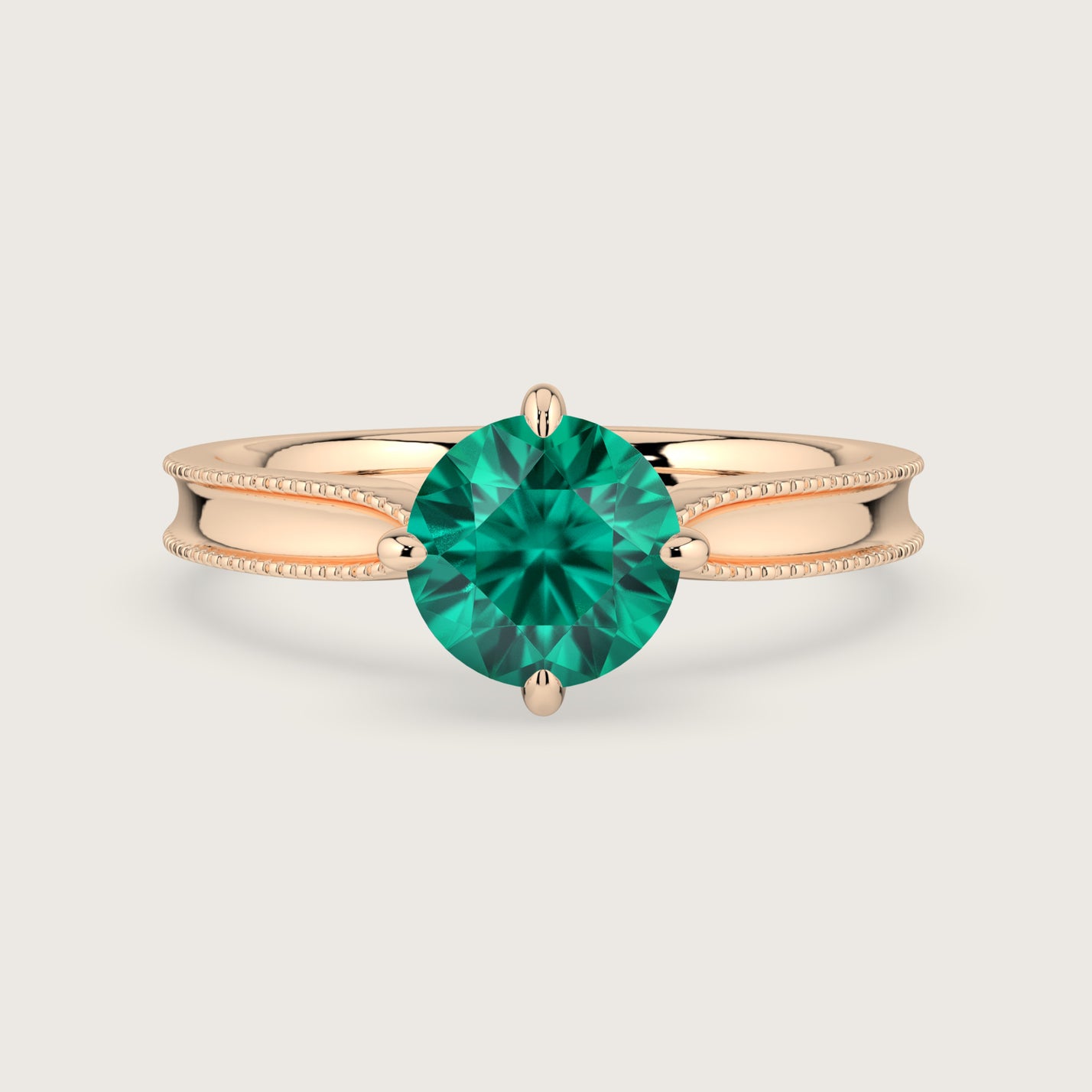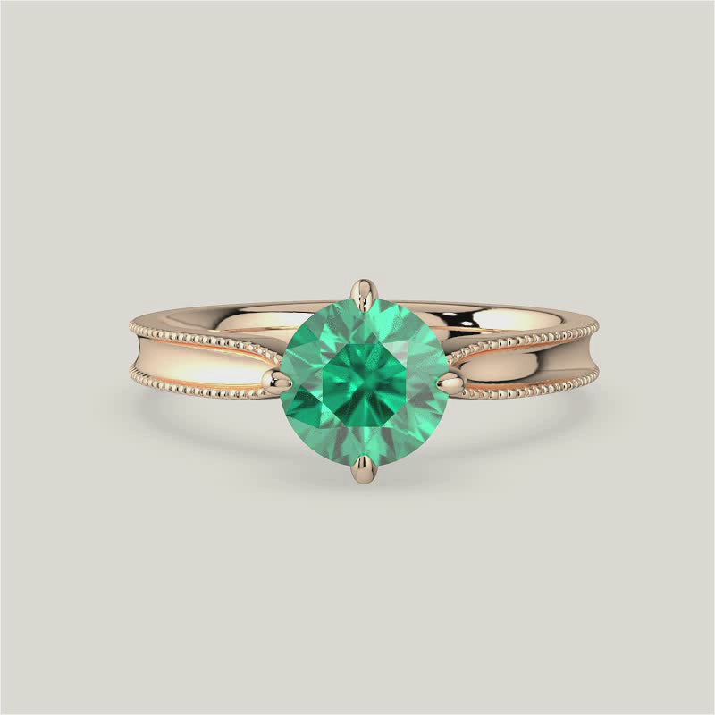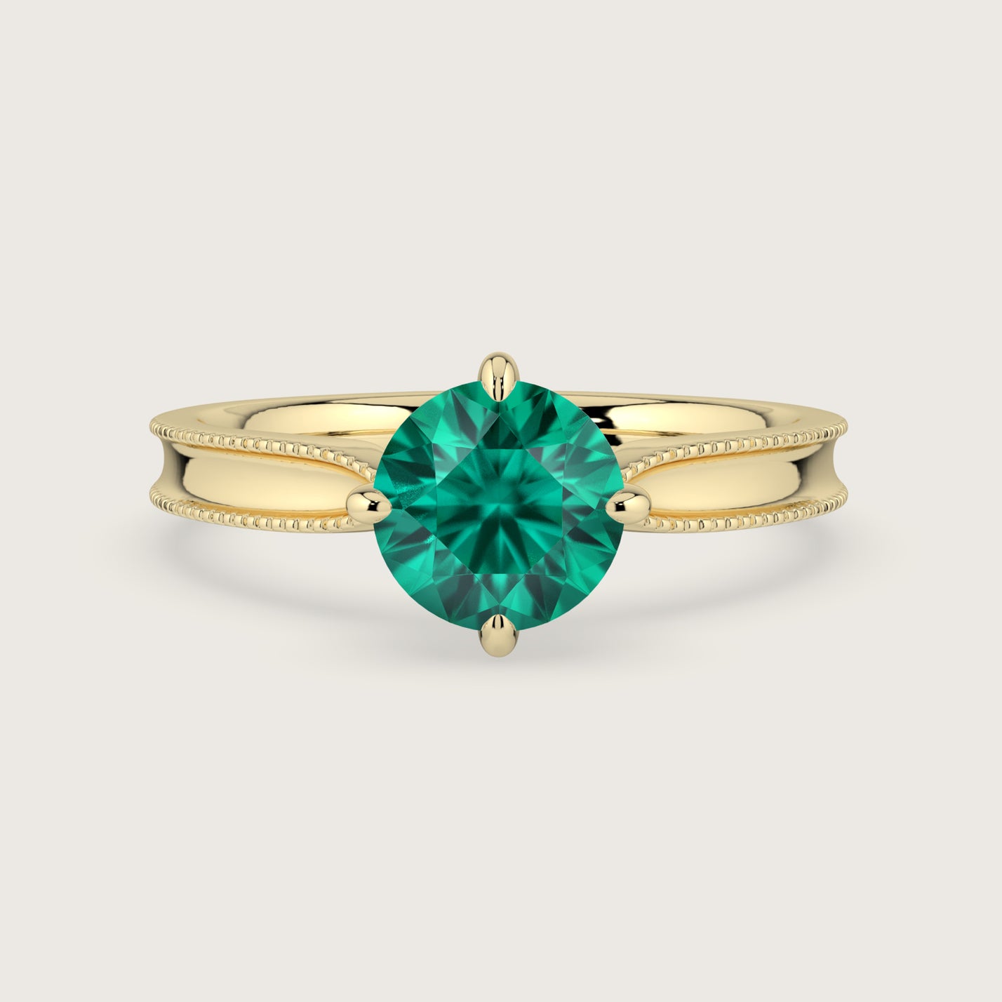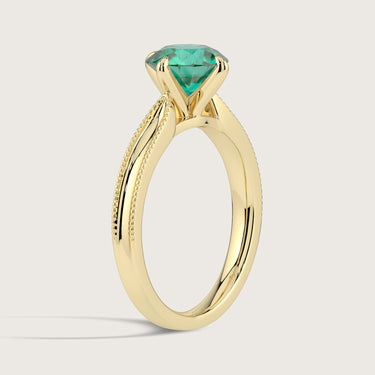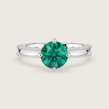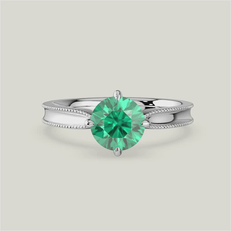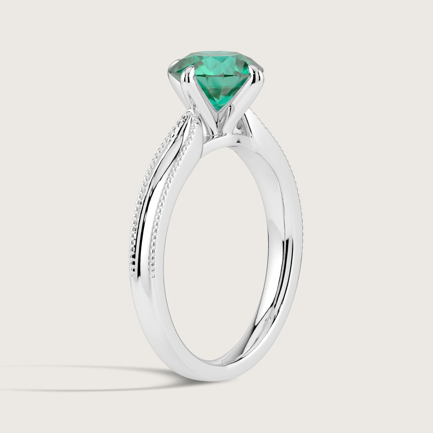 Millie, Vintage Milgrain Round Brilliant Emerald Solitaire Ring