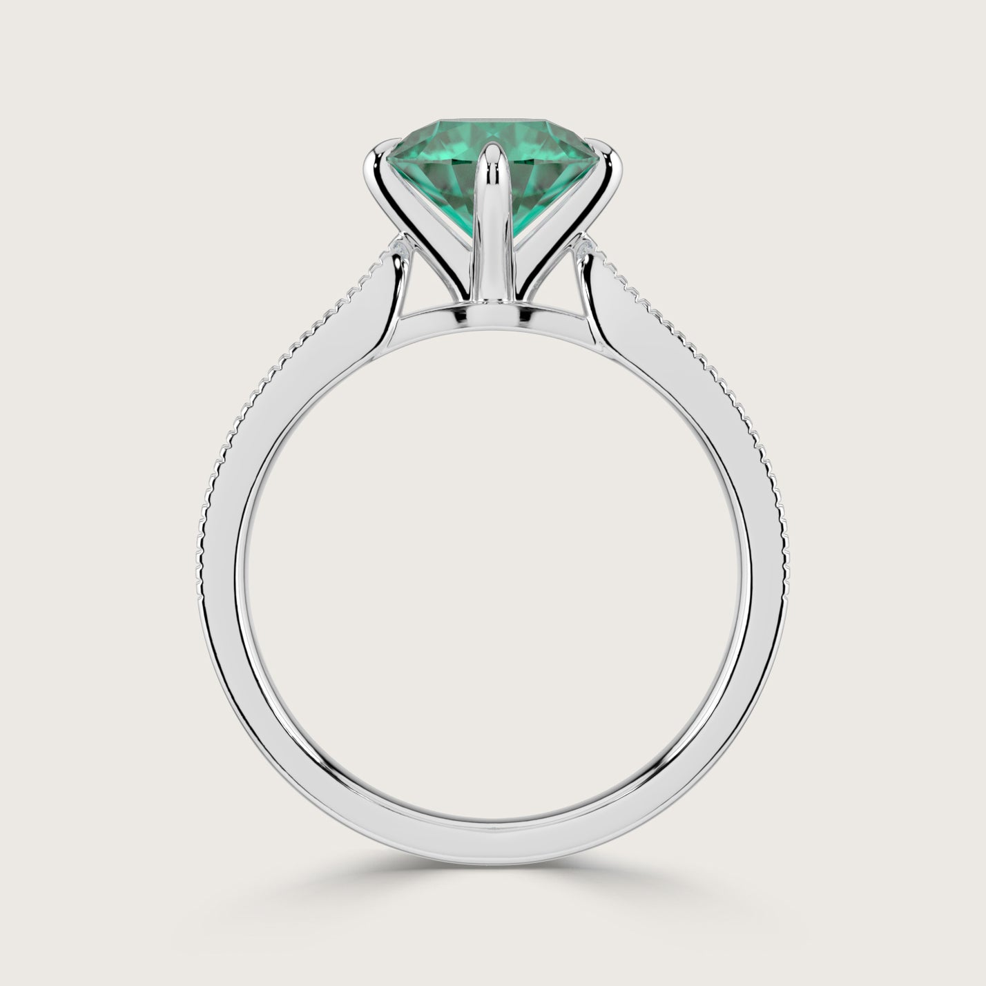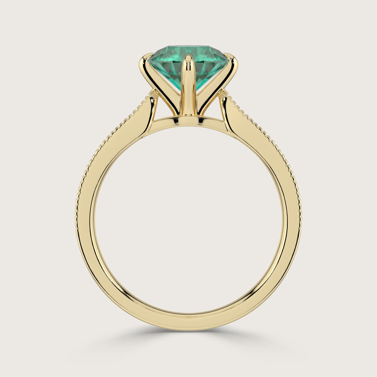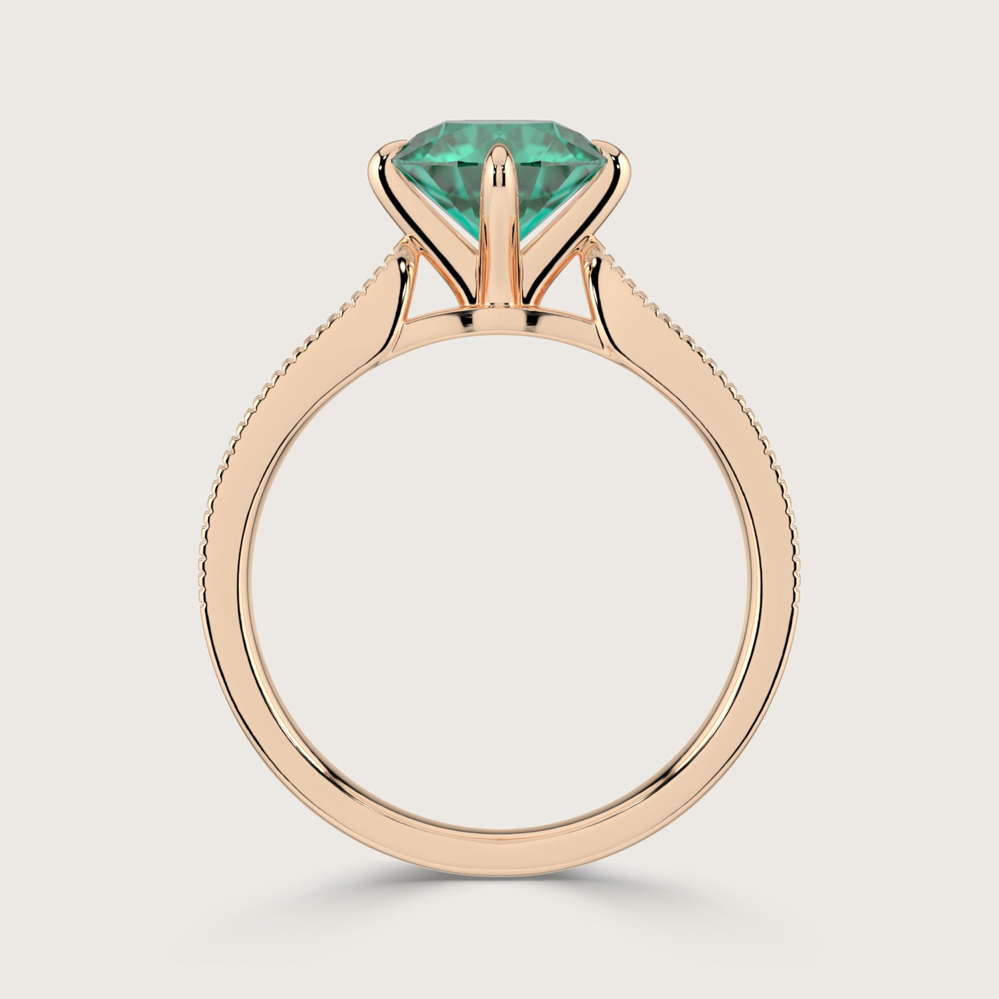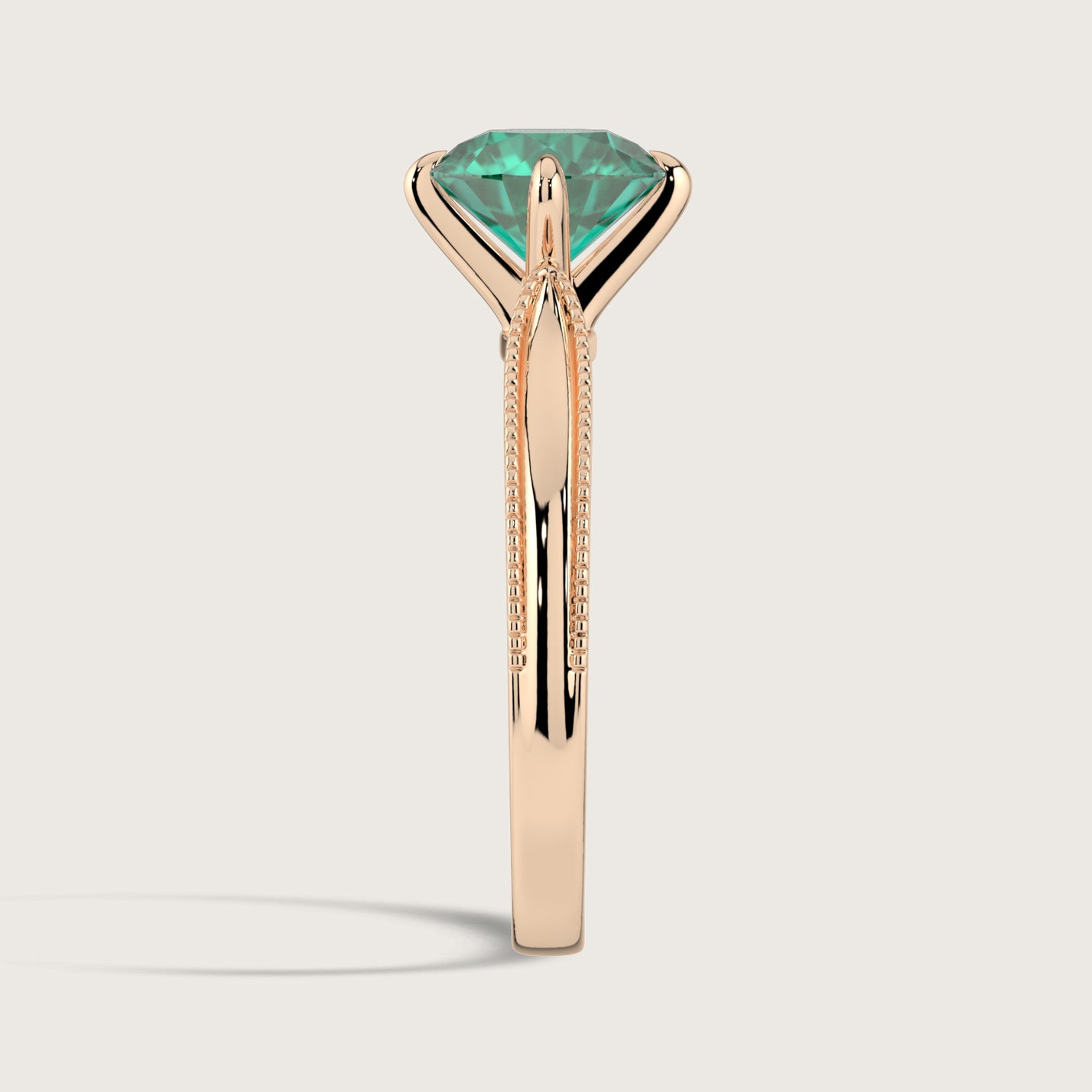 Millie, Vintage Milgrain Round Brilliant Emerald Solitaire Ring