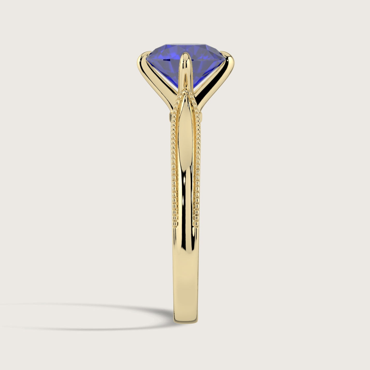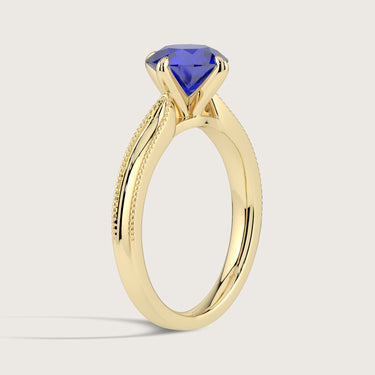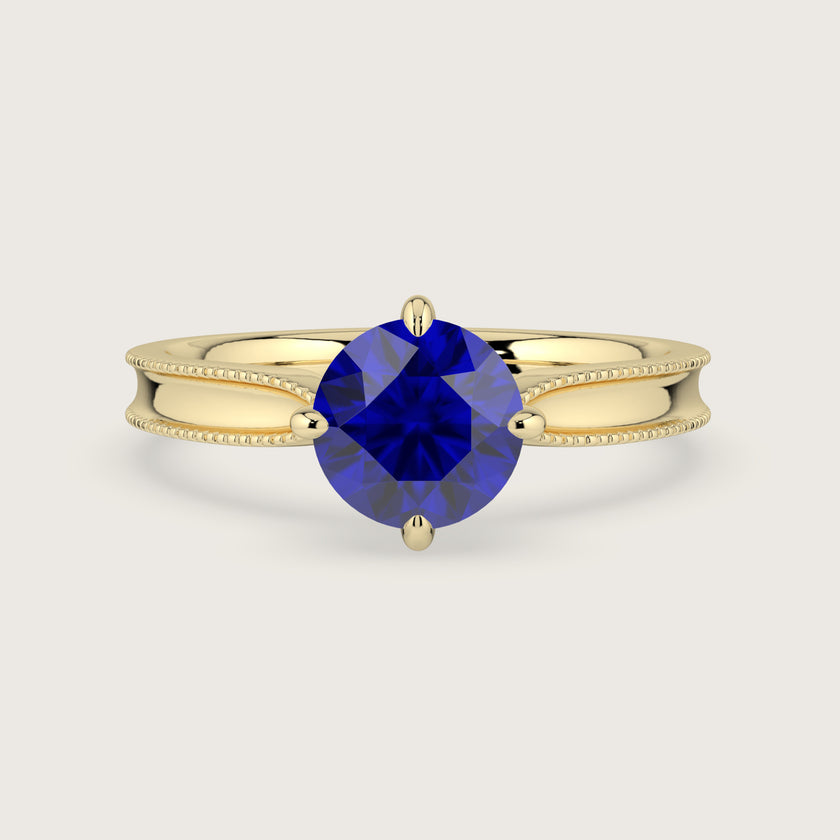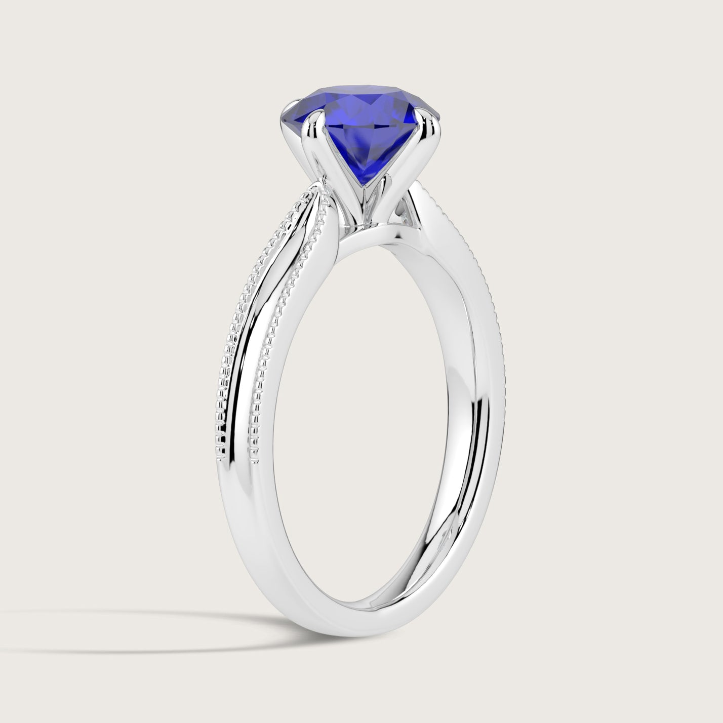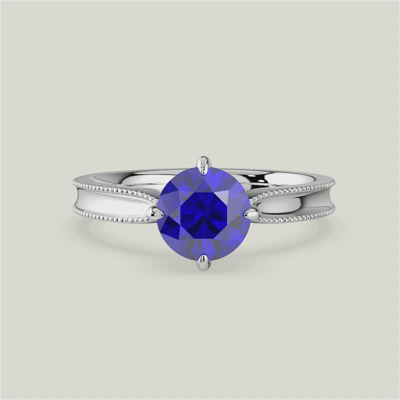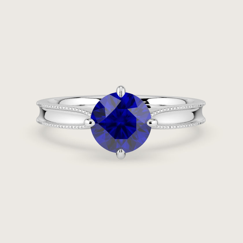 Millie, Vintage Milgrain Round Brilliant Sapphire Solitaire Ring