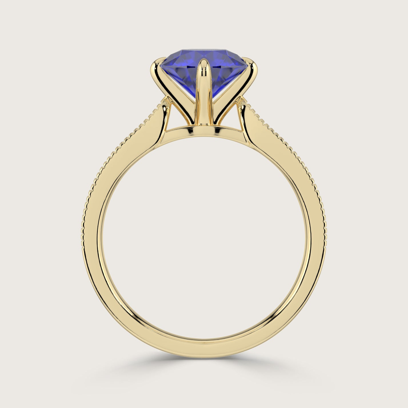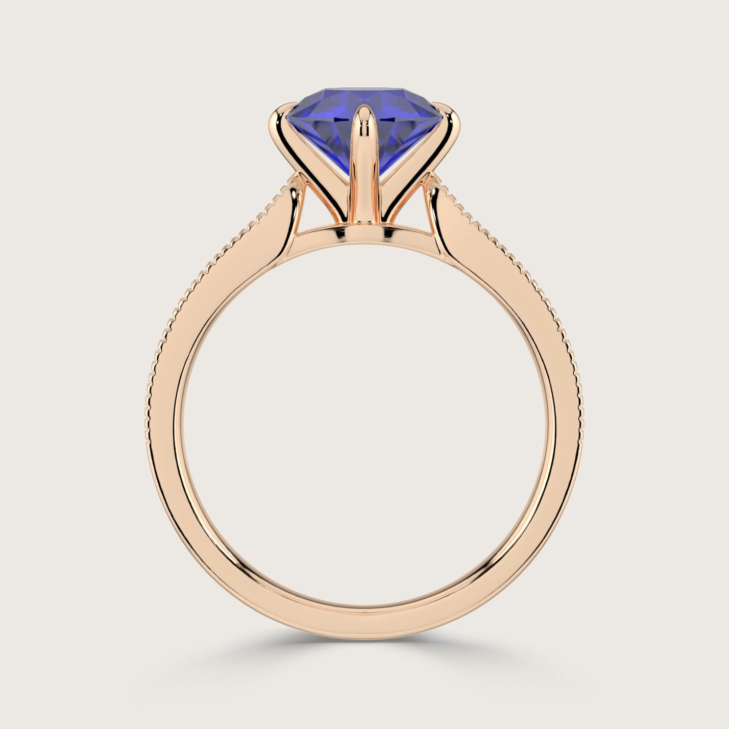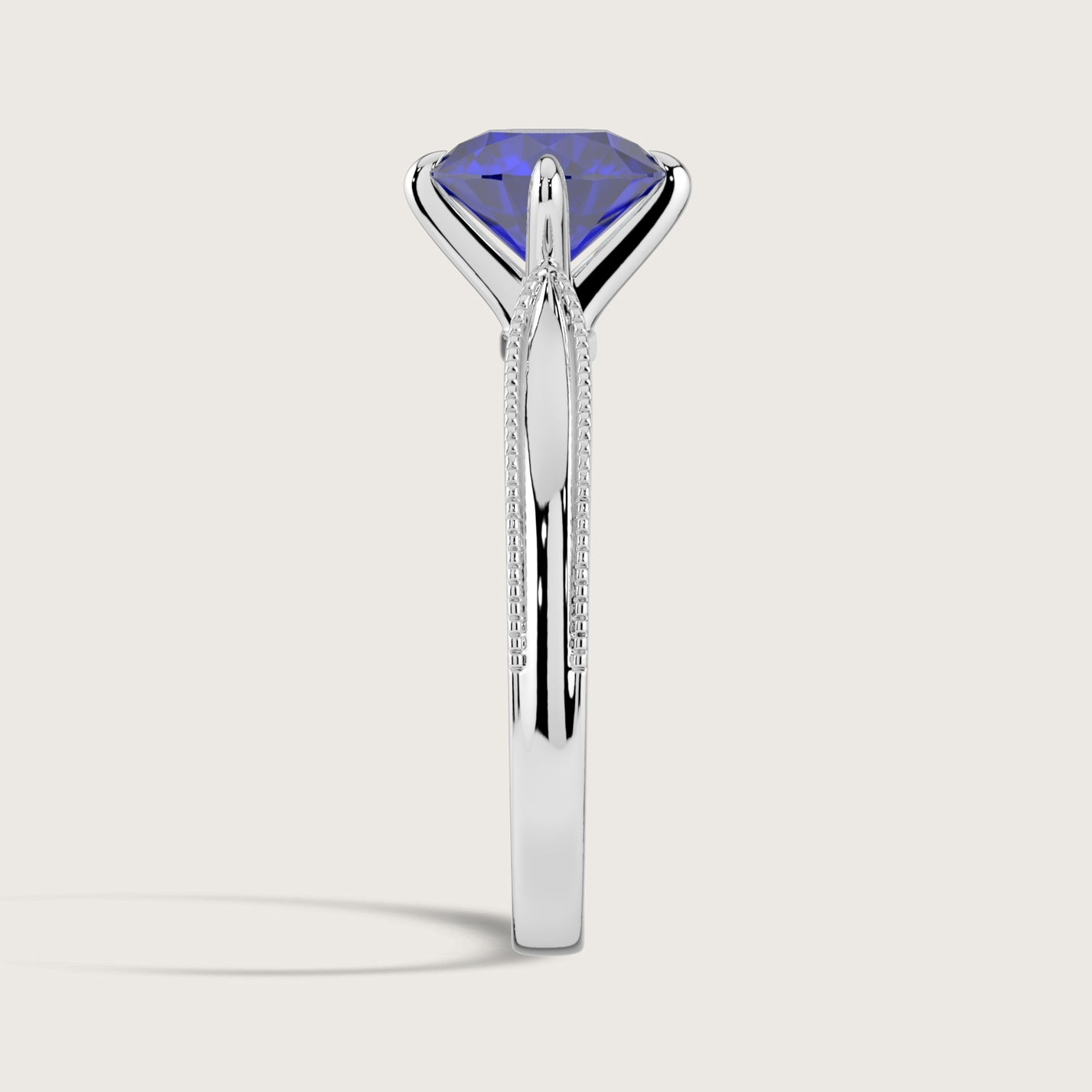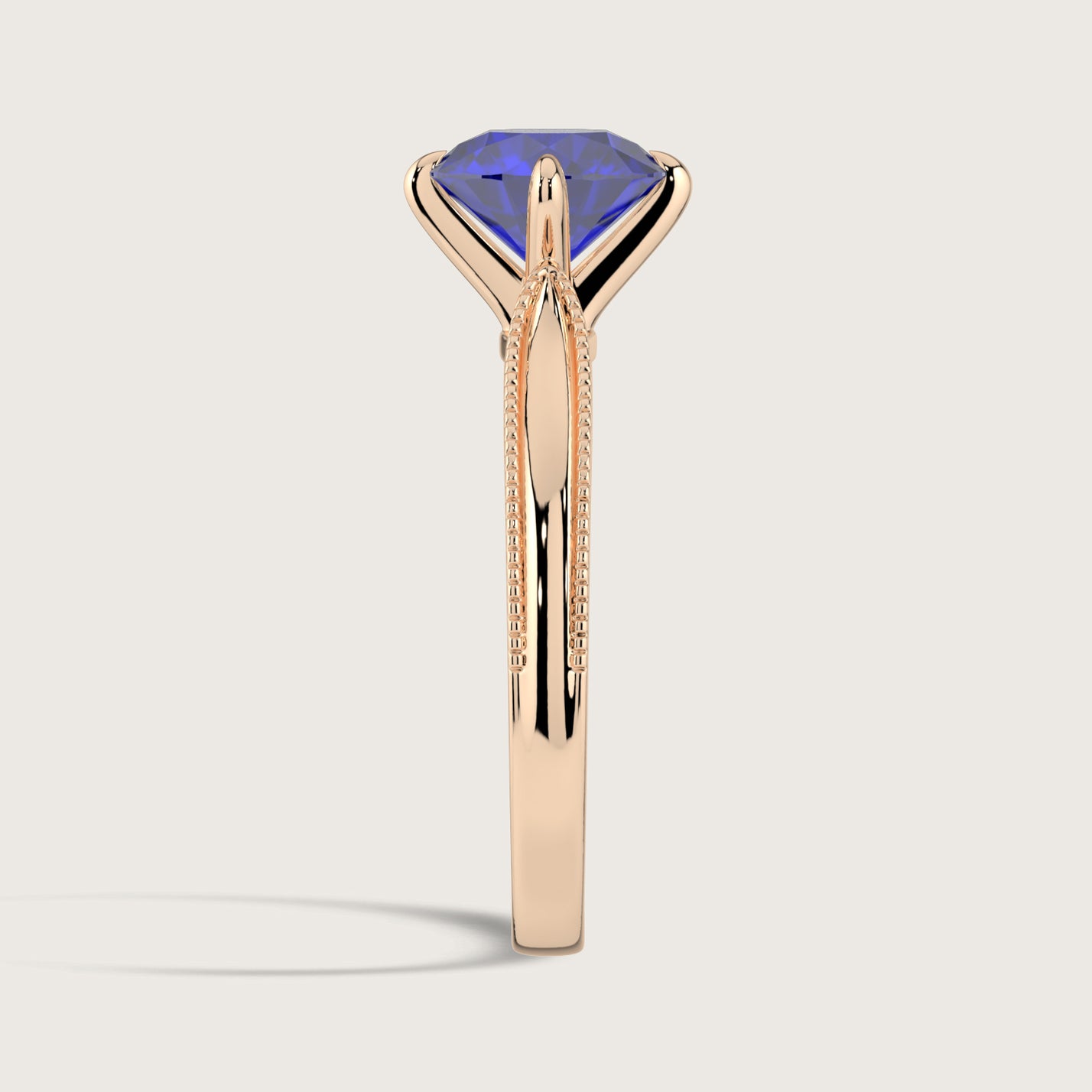 Millie, Vintage Milgrain Round Brilliant Sapphire Solitaire Ring