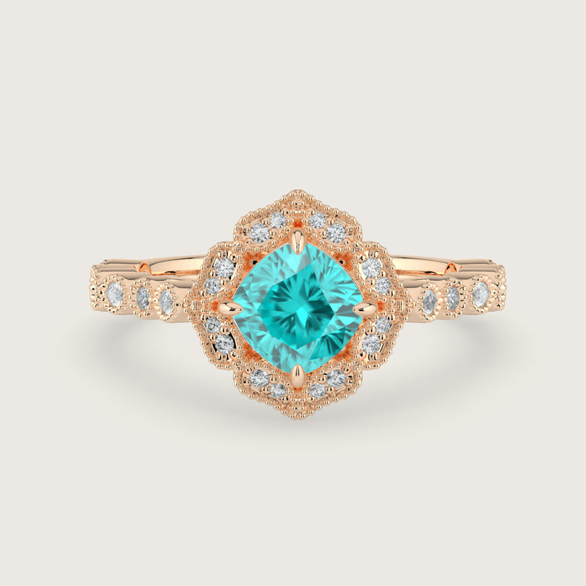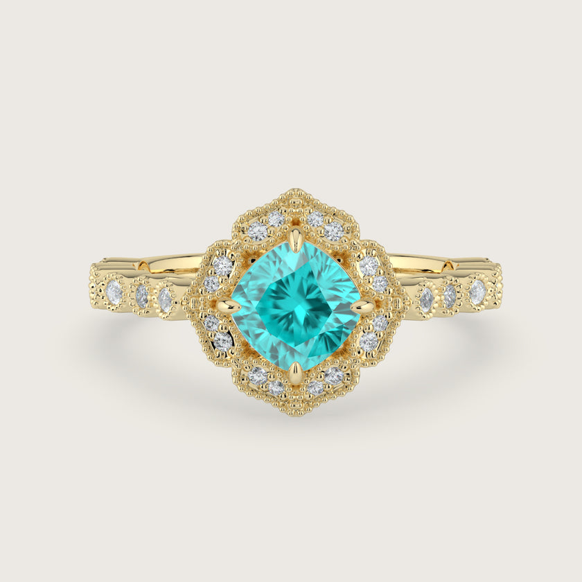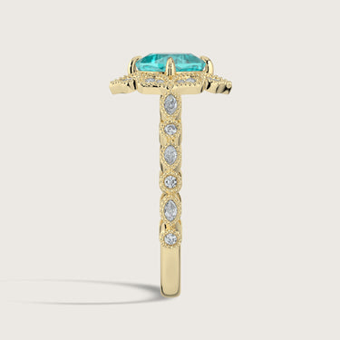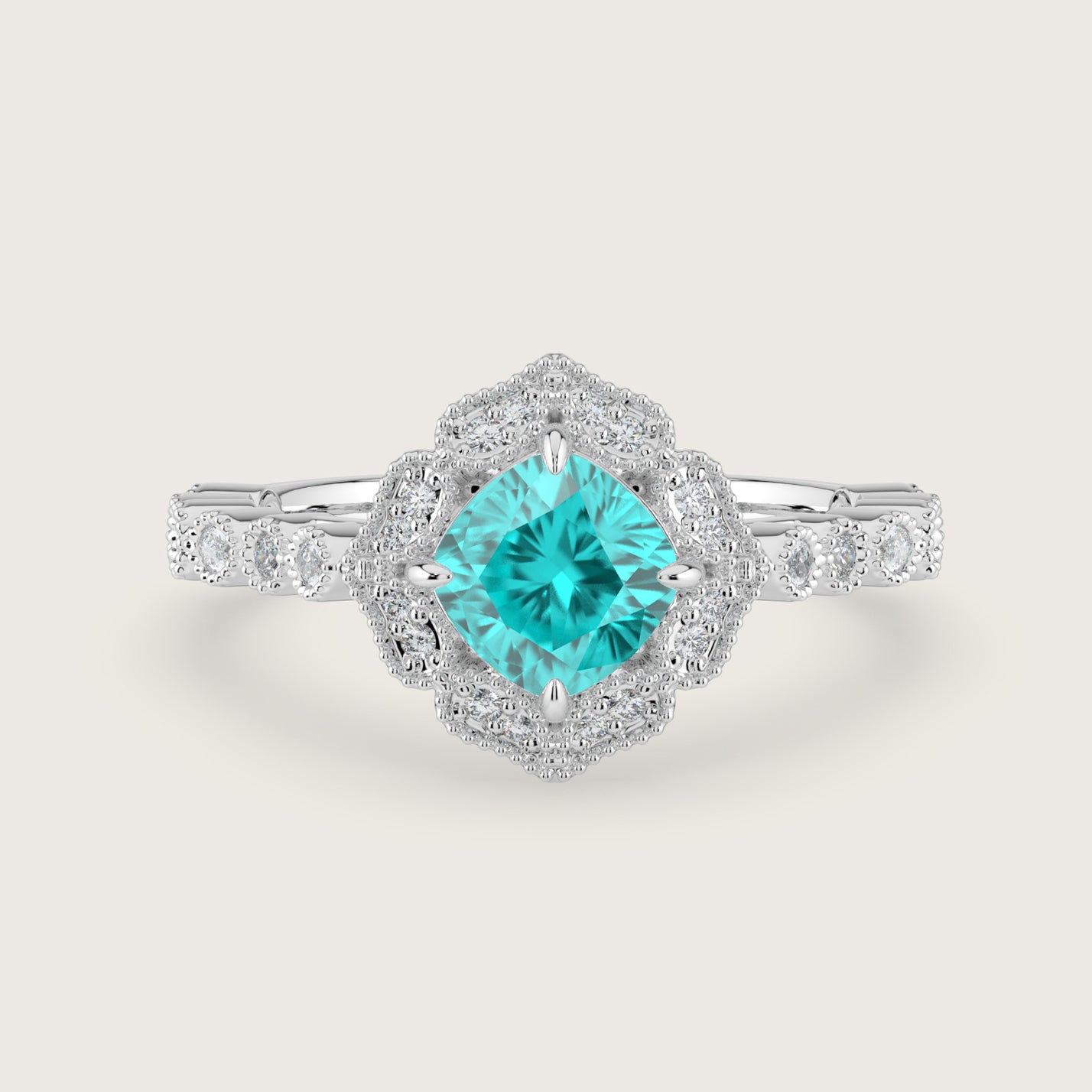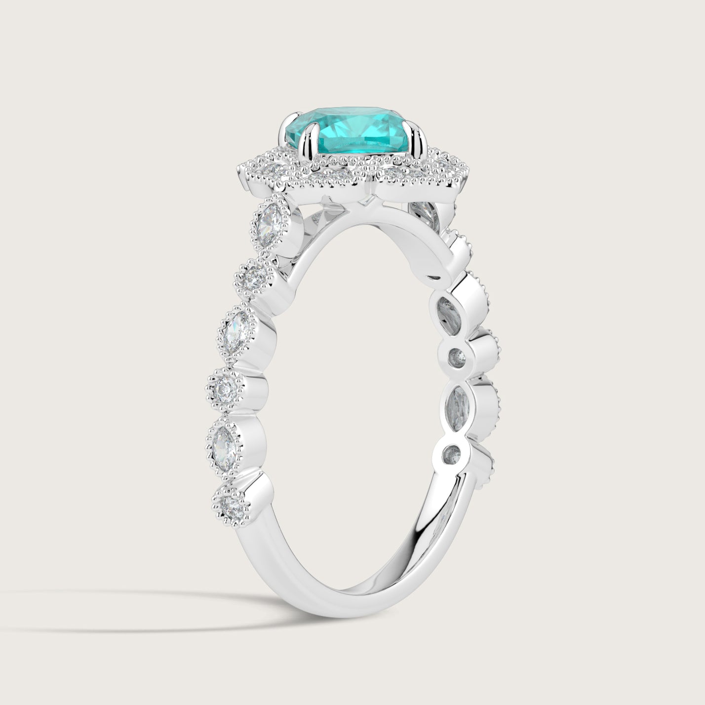 Octavia, Cushion Cut Paraiba Vintage Halo Ring