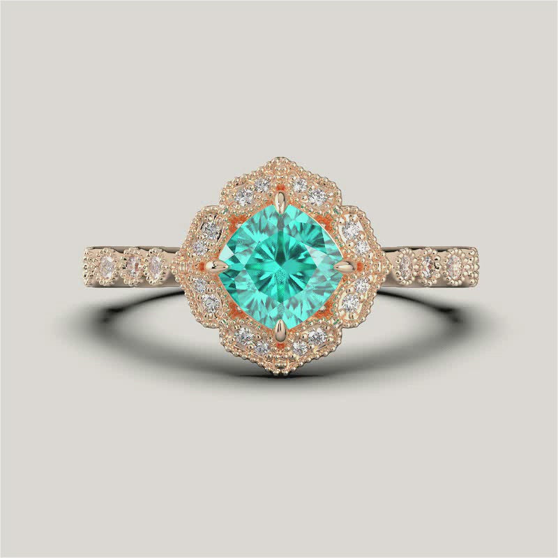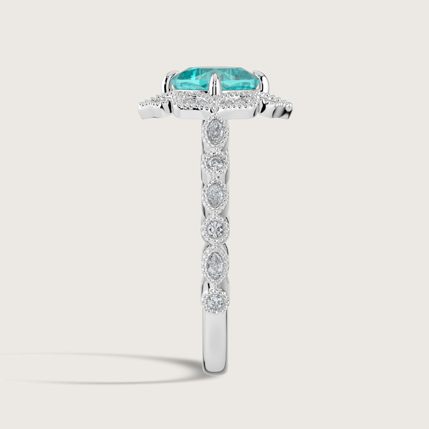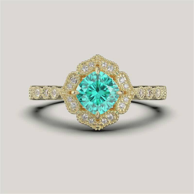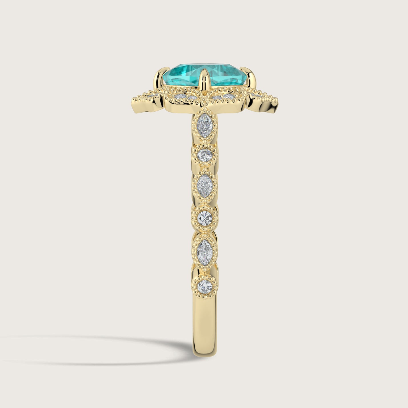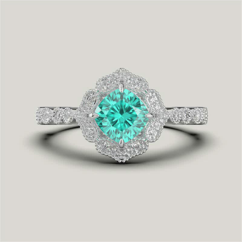 Octavia, Cushion Cut Paraiba Vintage Halo Ring