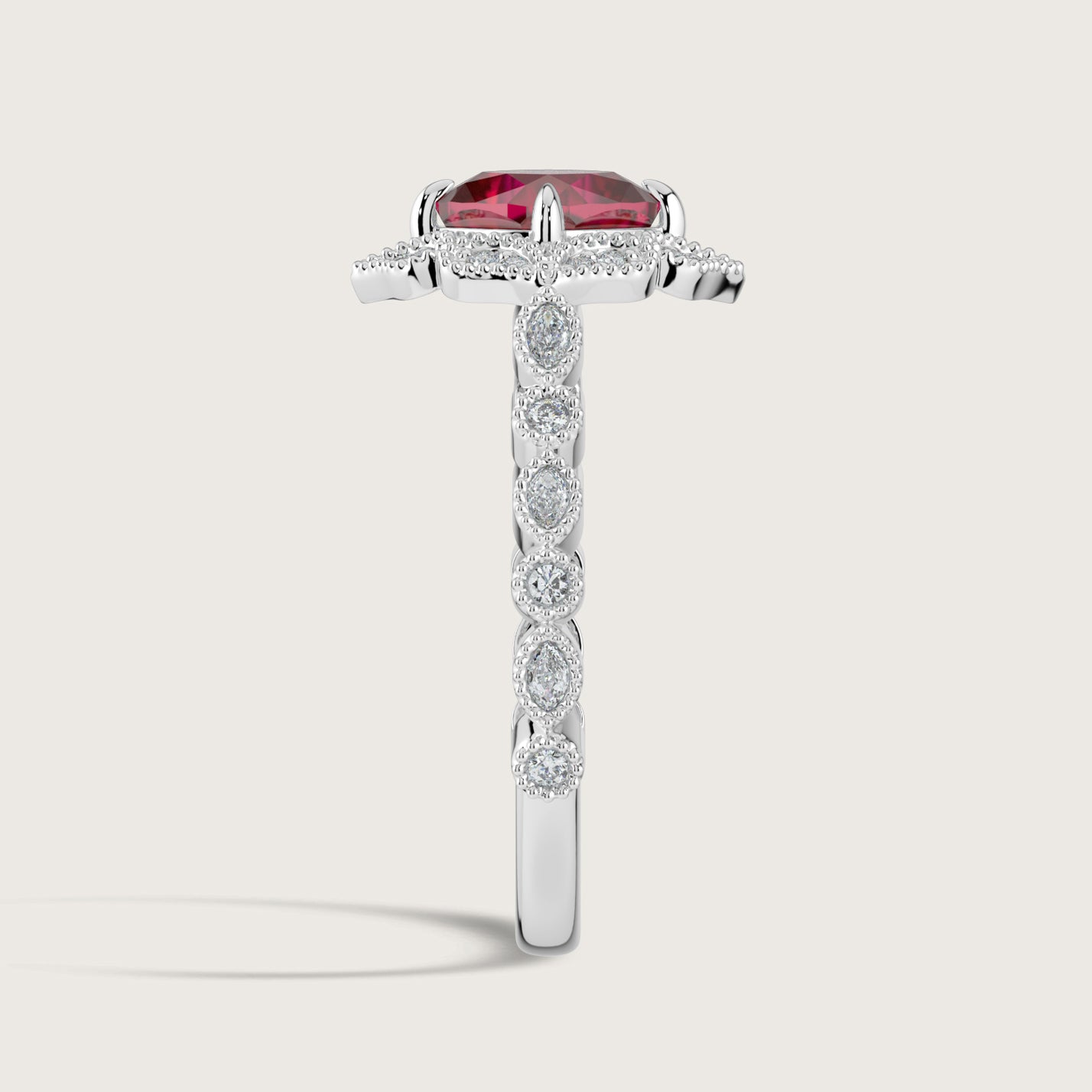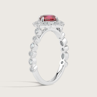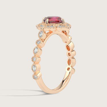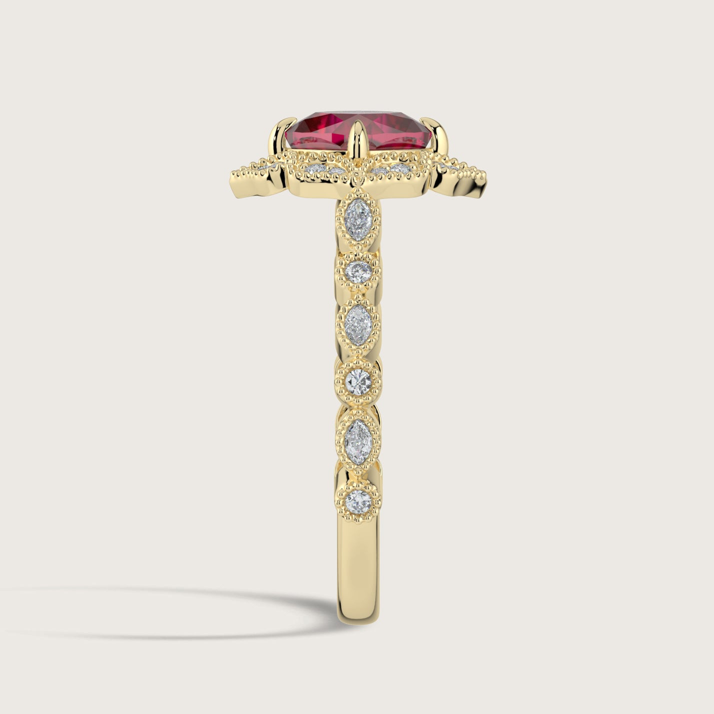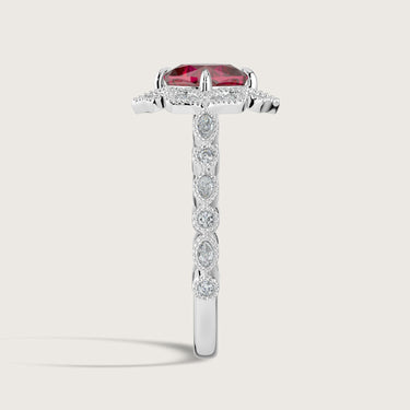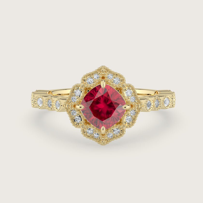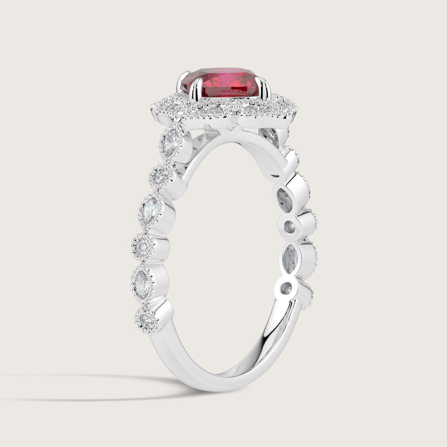 Octavia, Cushion Cut Ruby Vintage Halo Ring