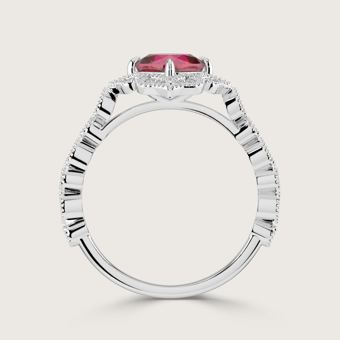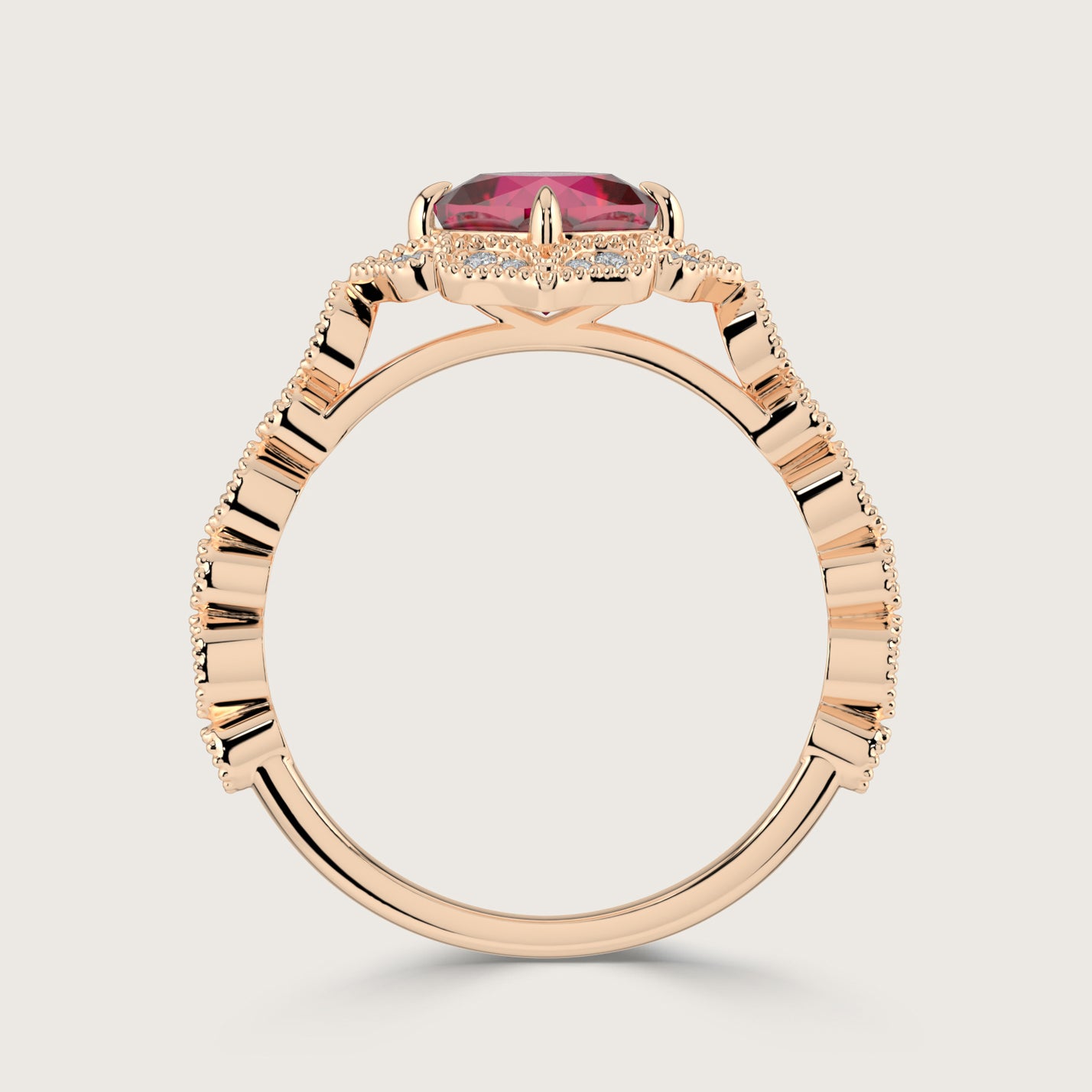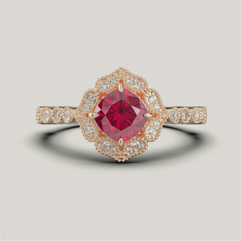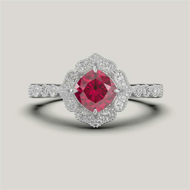 Octavia, Cushion Cut Ruby Vintage Halo Ring