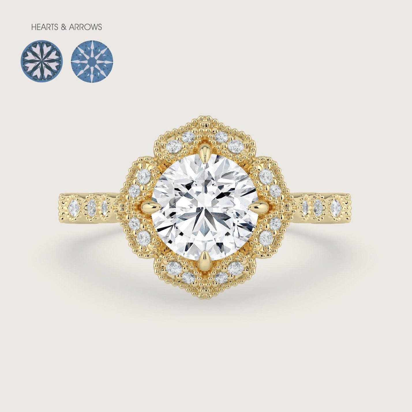 Octavia, Hearts & Arrows Diamond Vintage Halo Ring