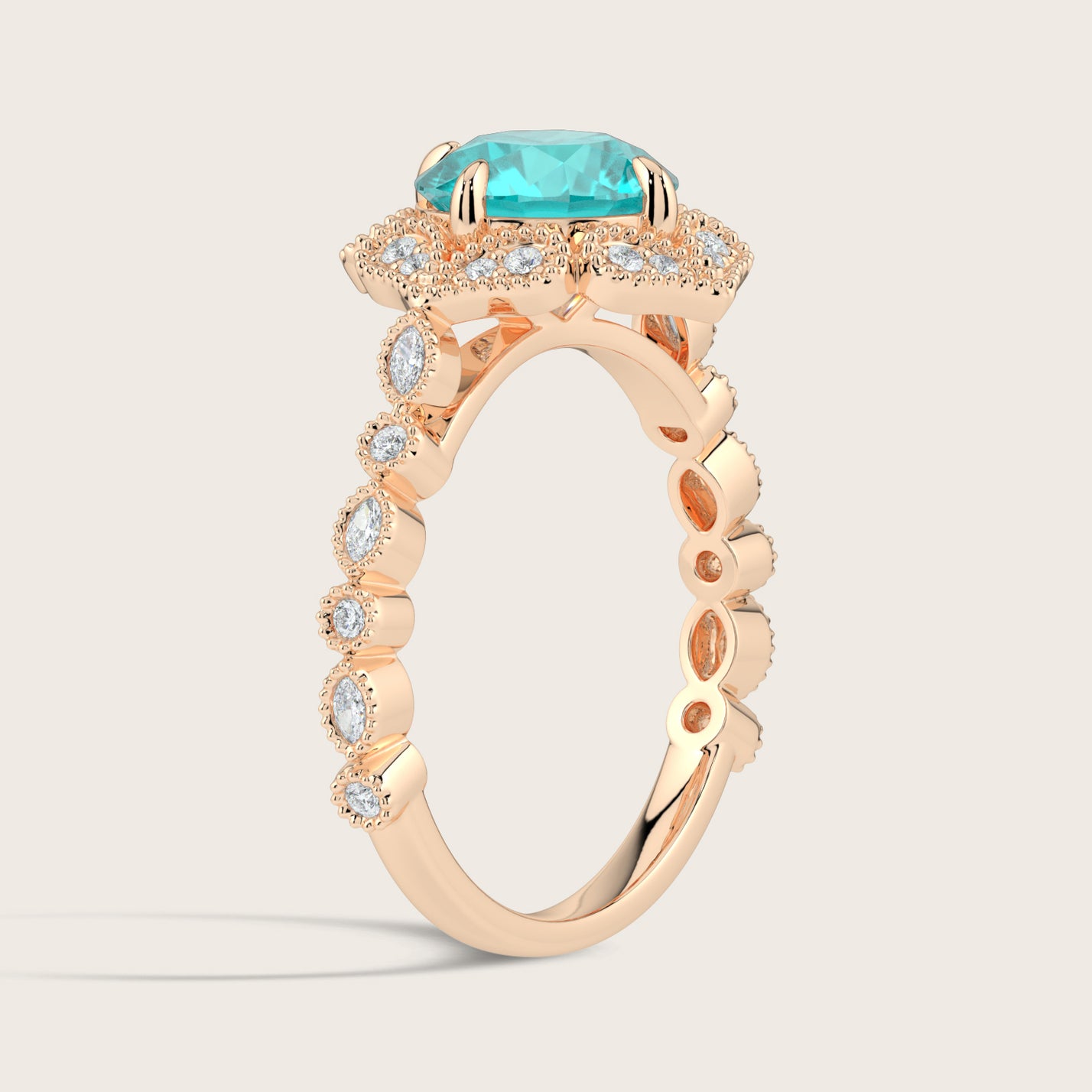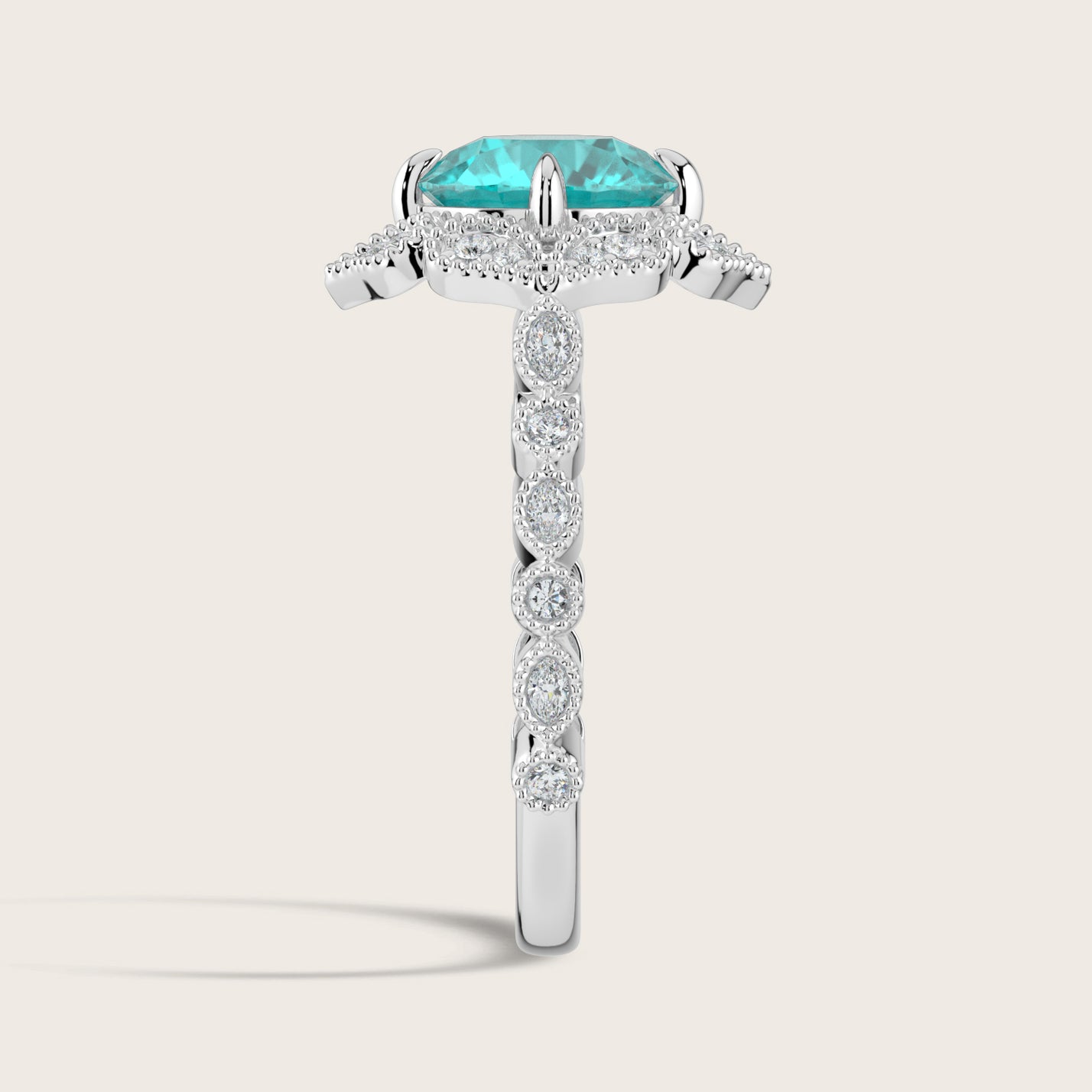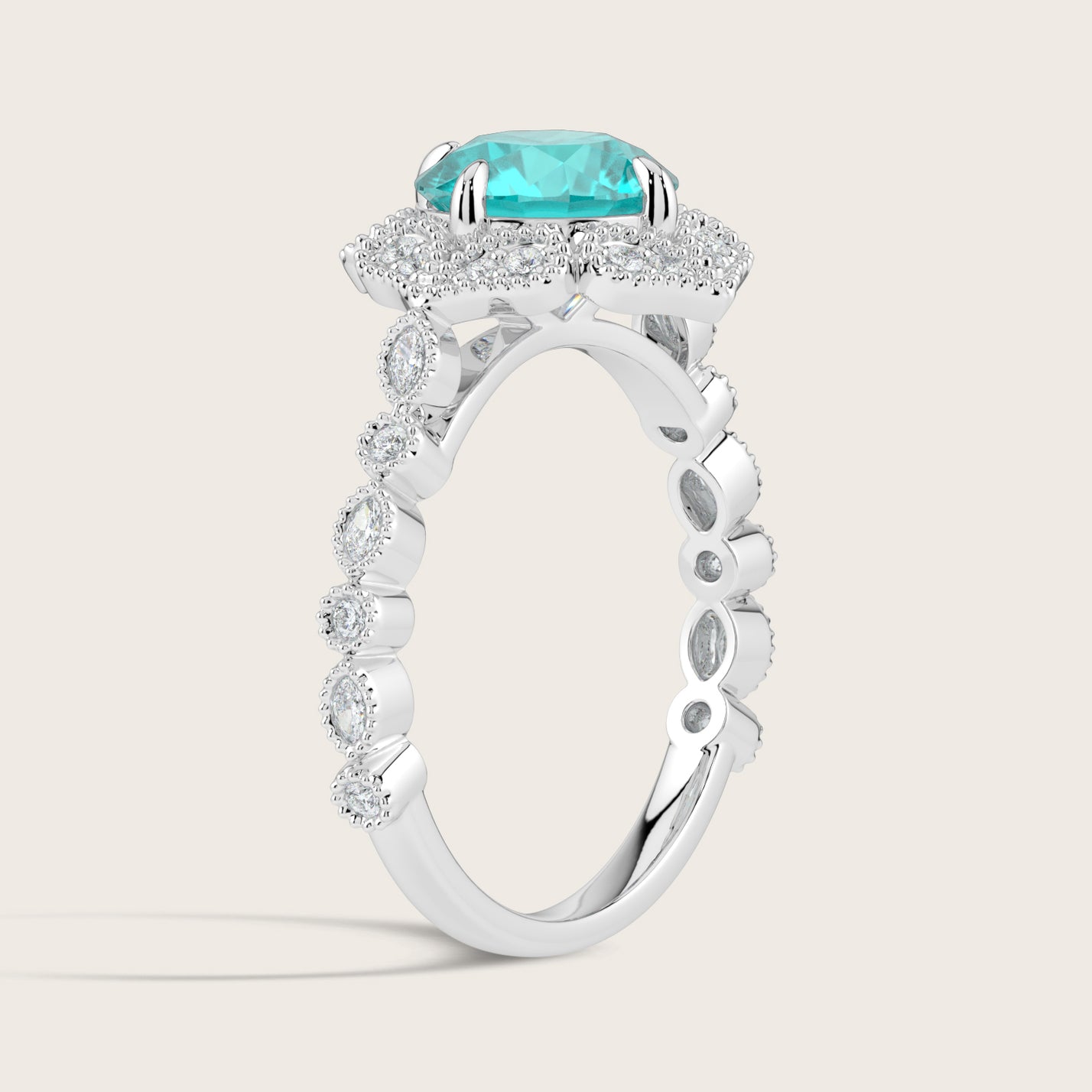 Octavia, Round Brilliant Paraiba Vintage Halo Ring