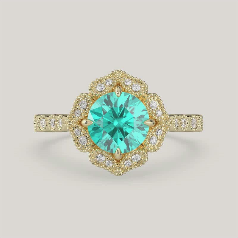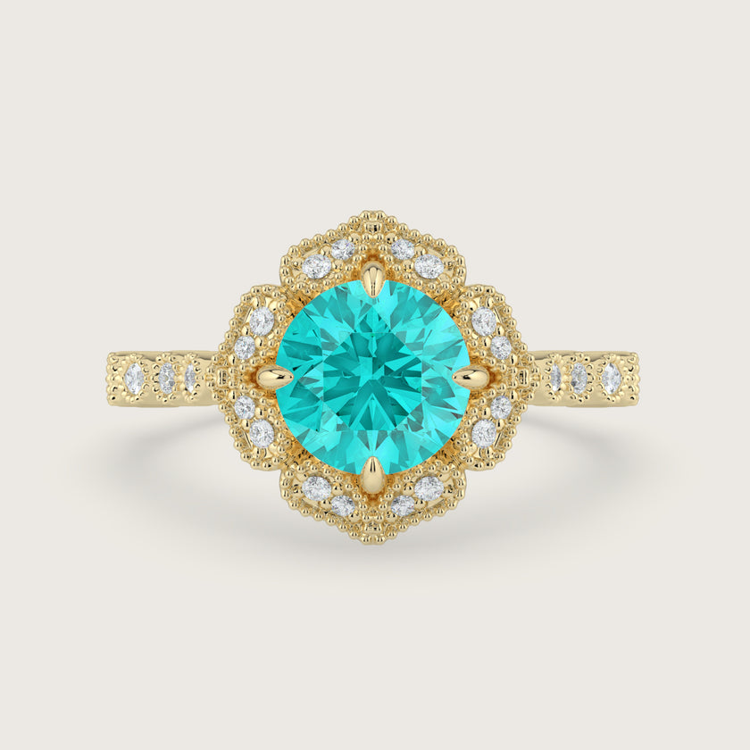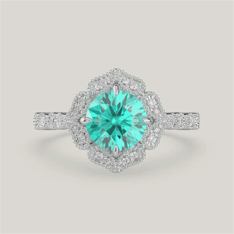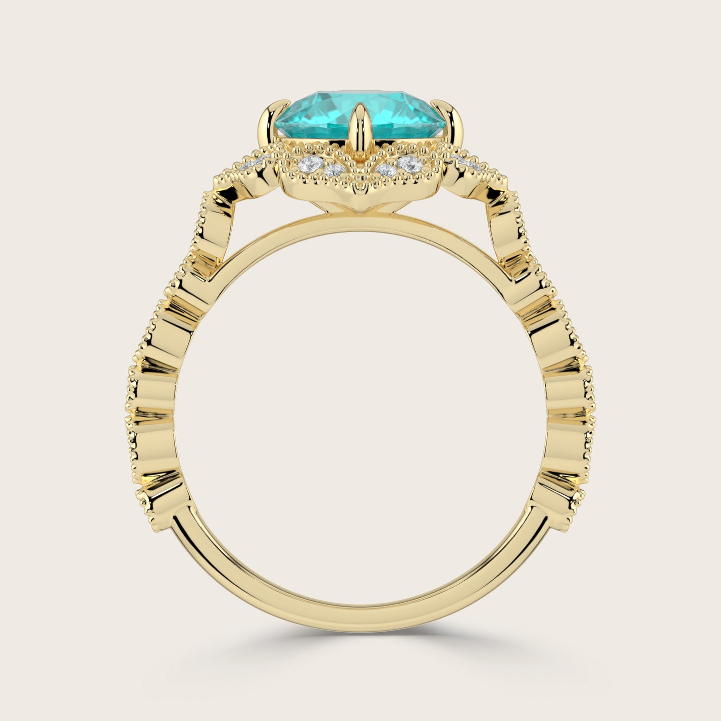 Octavia, Round Brilliant Paraiba Vintage Halo Ring