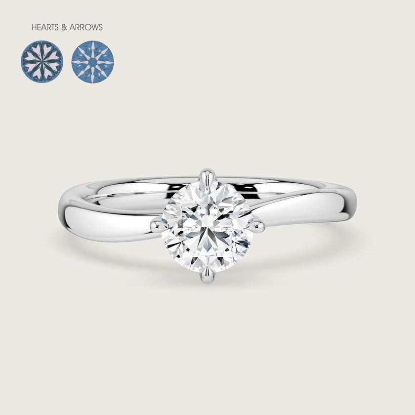 Olive, Hearts & Arrows Diamond Curved Solitaire Ring