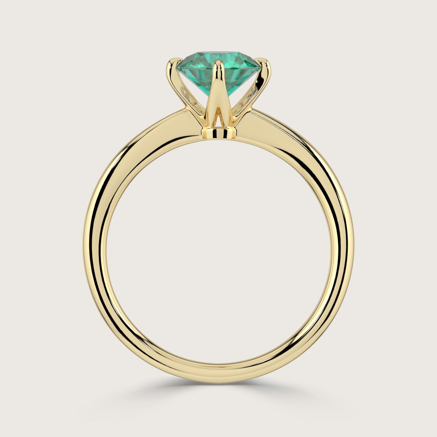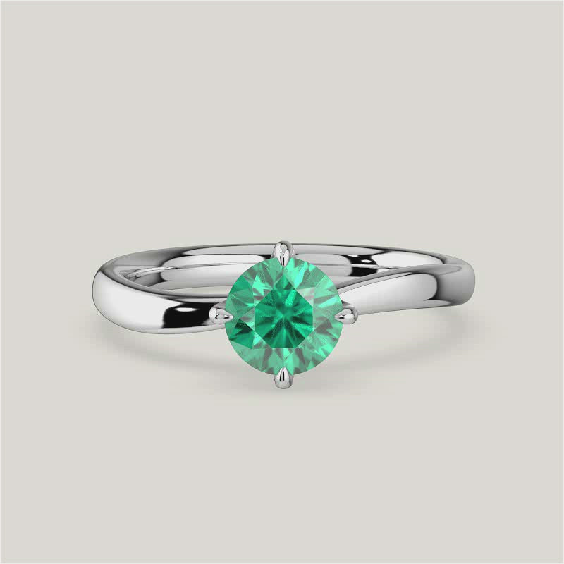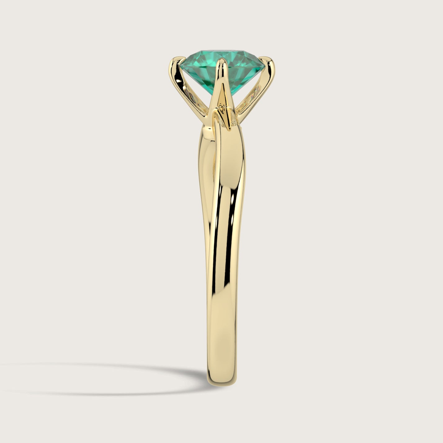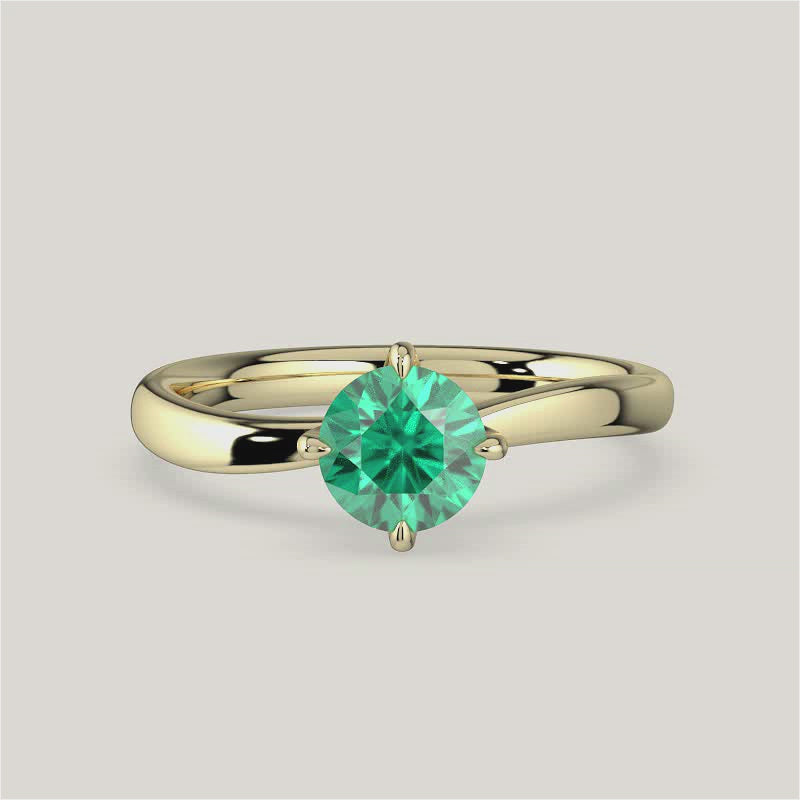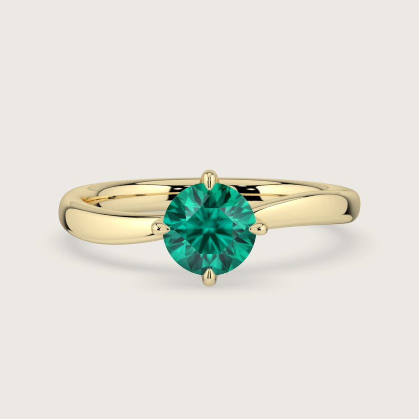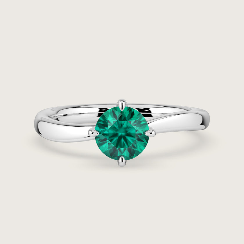 Olive, Round Brilliant Emerald Curved Solitaire Ring