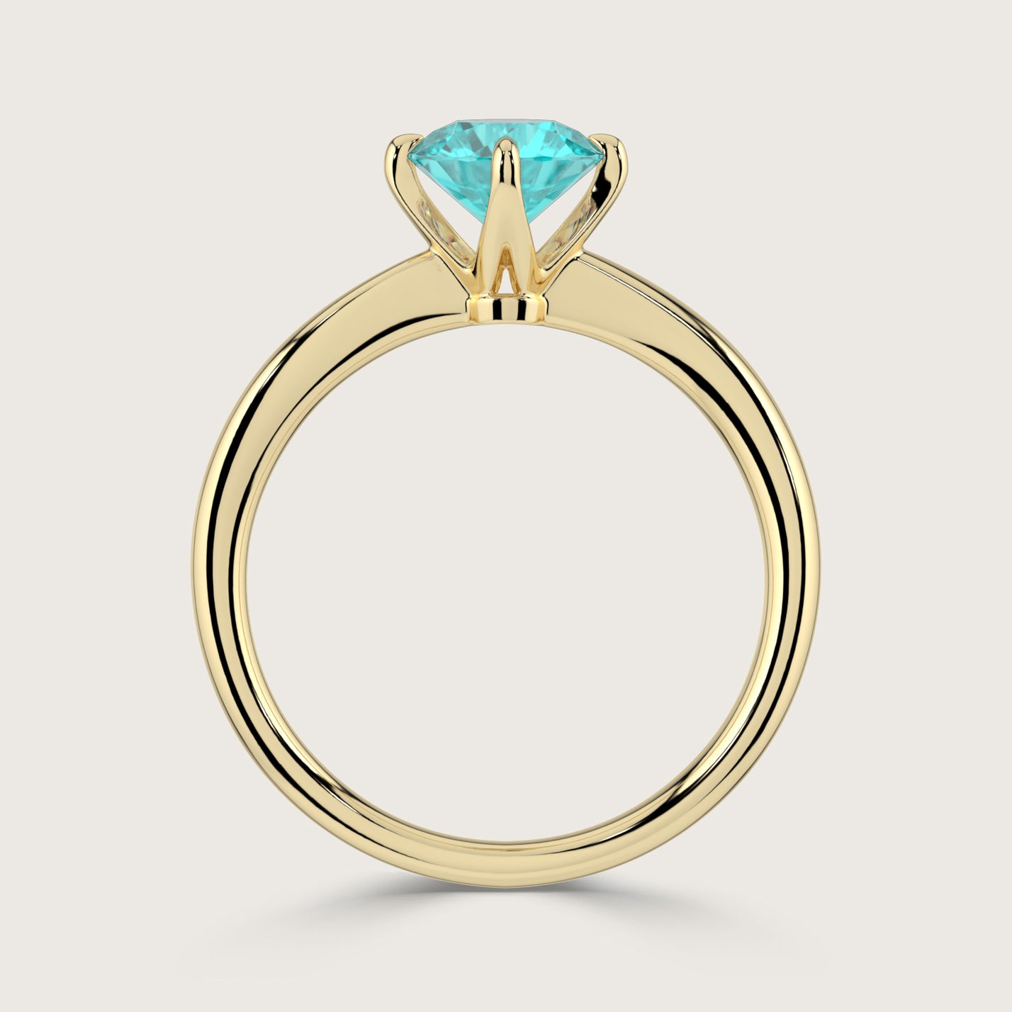 Olive, Round Brilliant Paraiba Curved Solitaire Ring
