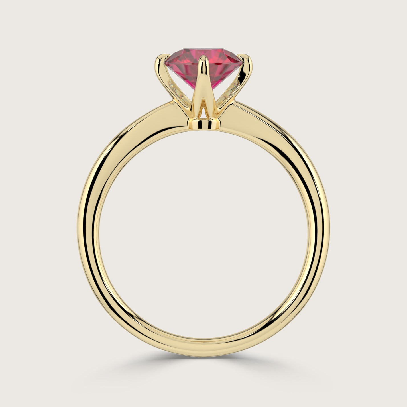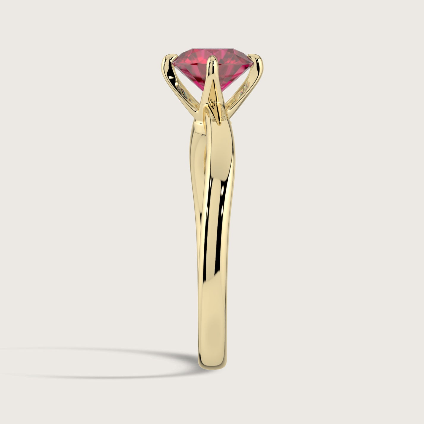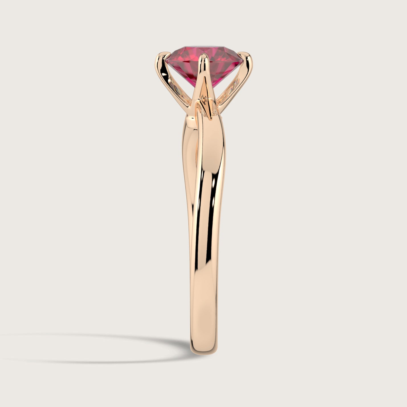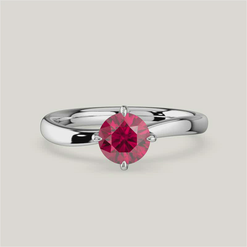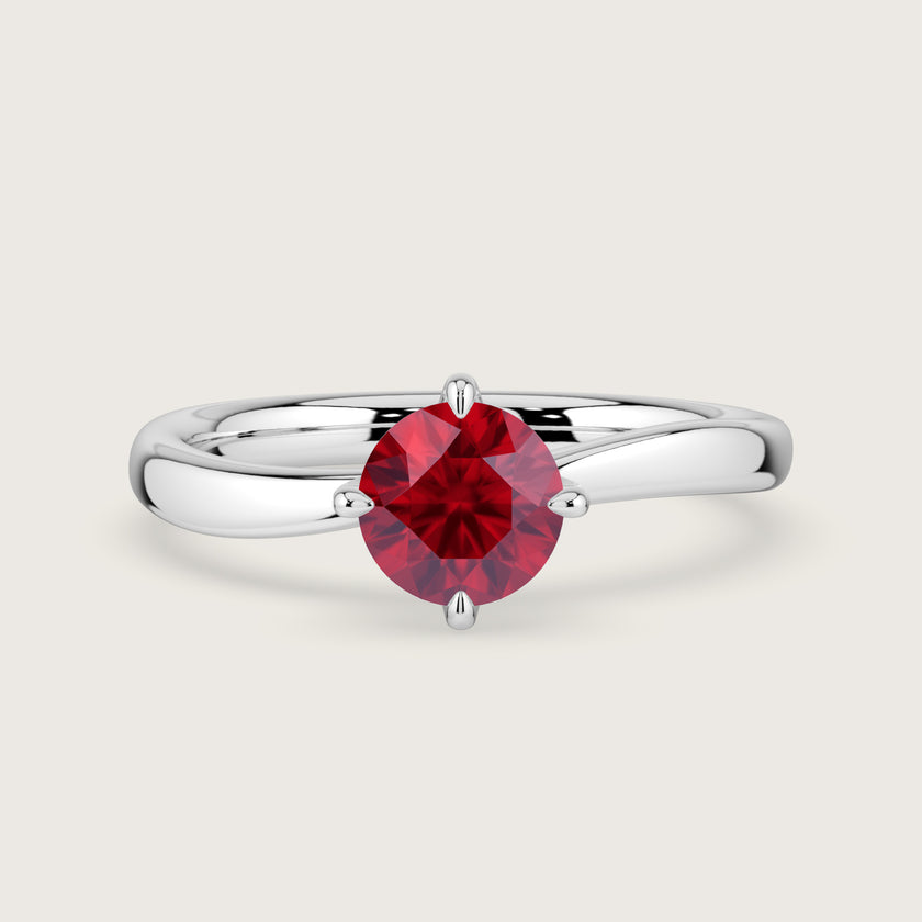 Olive, Round Brilliant Ruby Curved Solitaire Ring