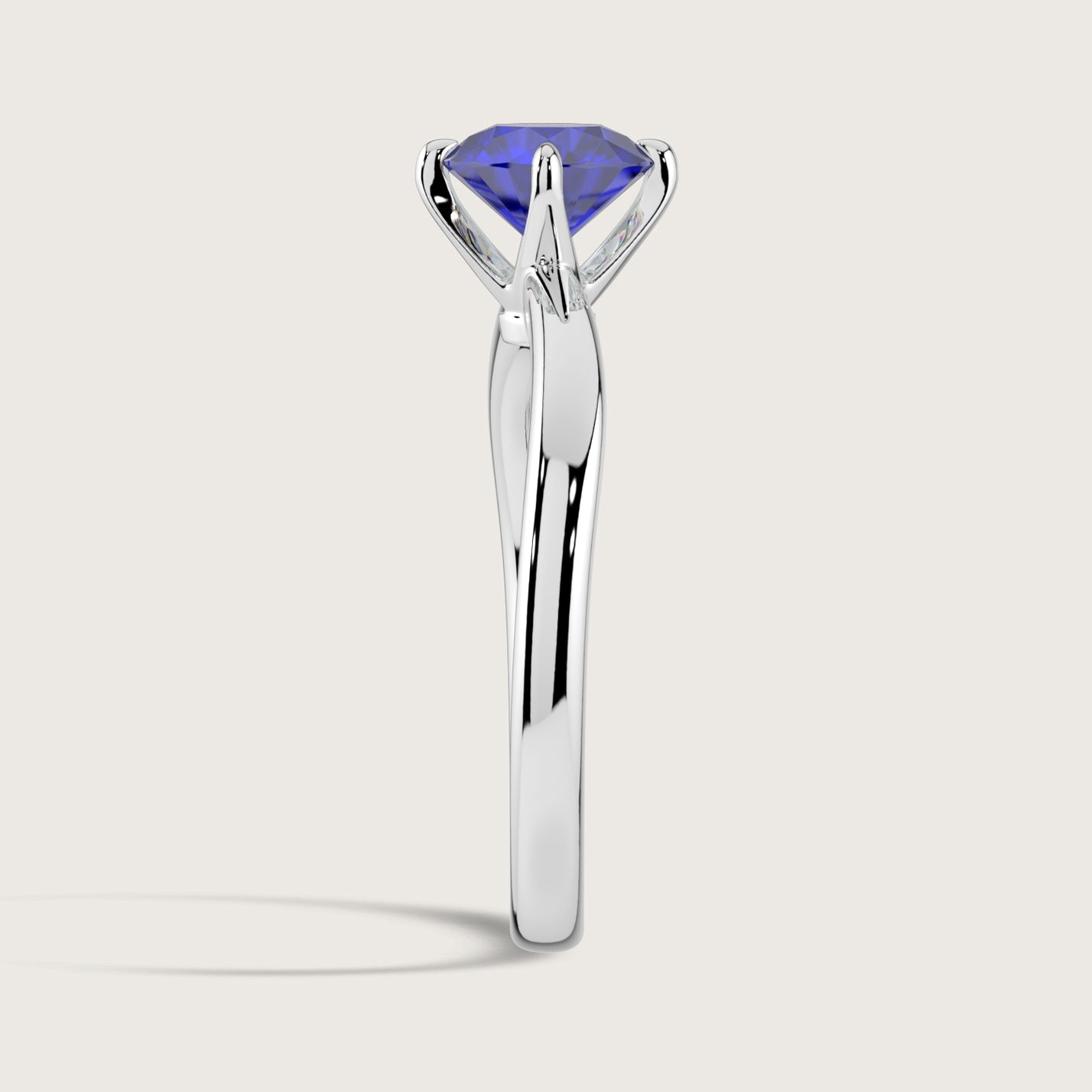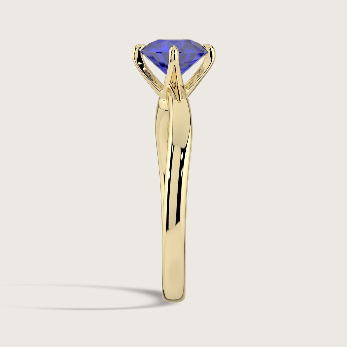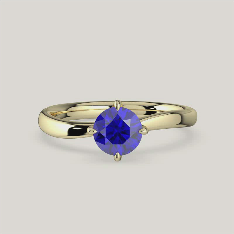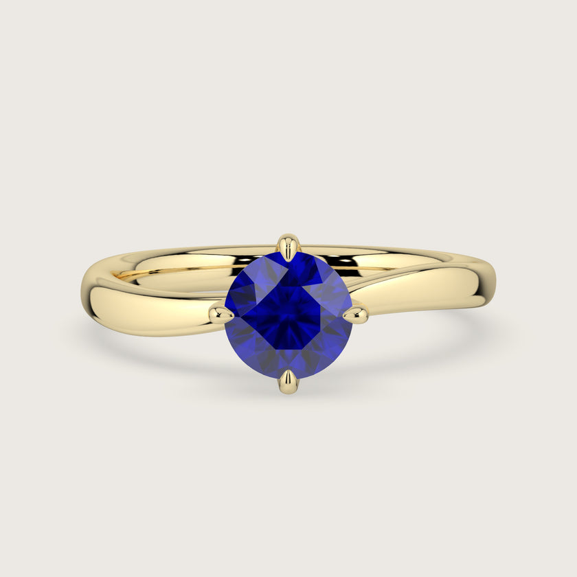 Olive, Round Brilliant Sapphire Curved Solitaire Ring