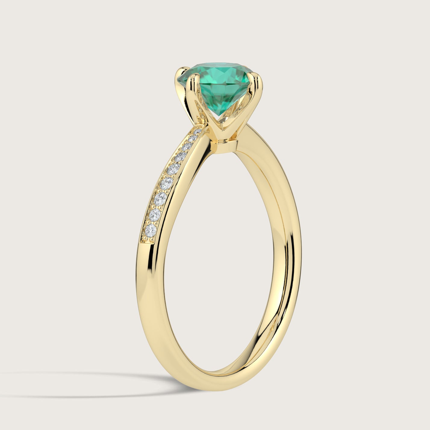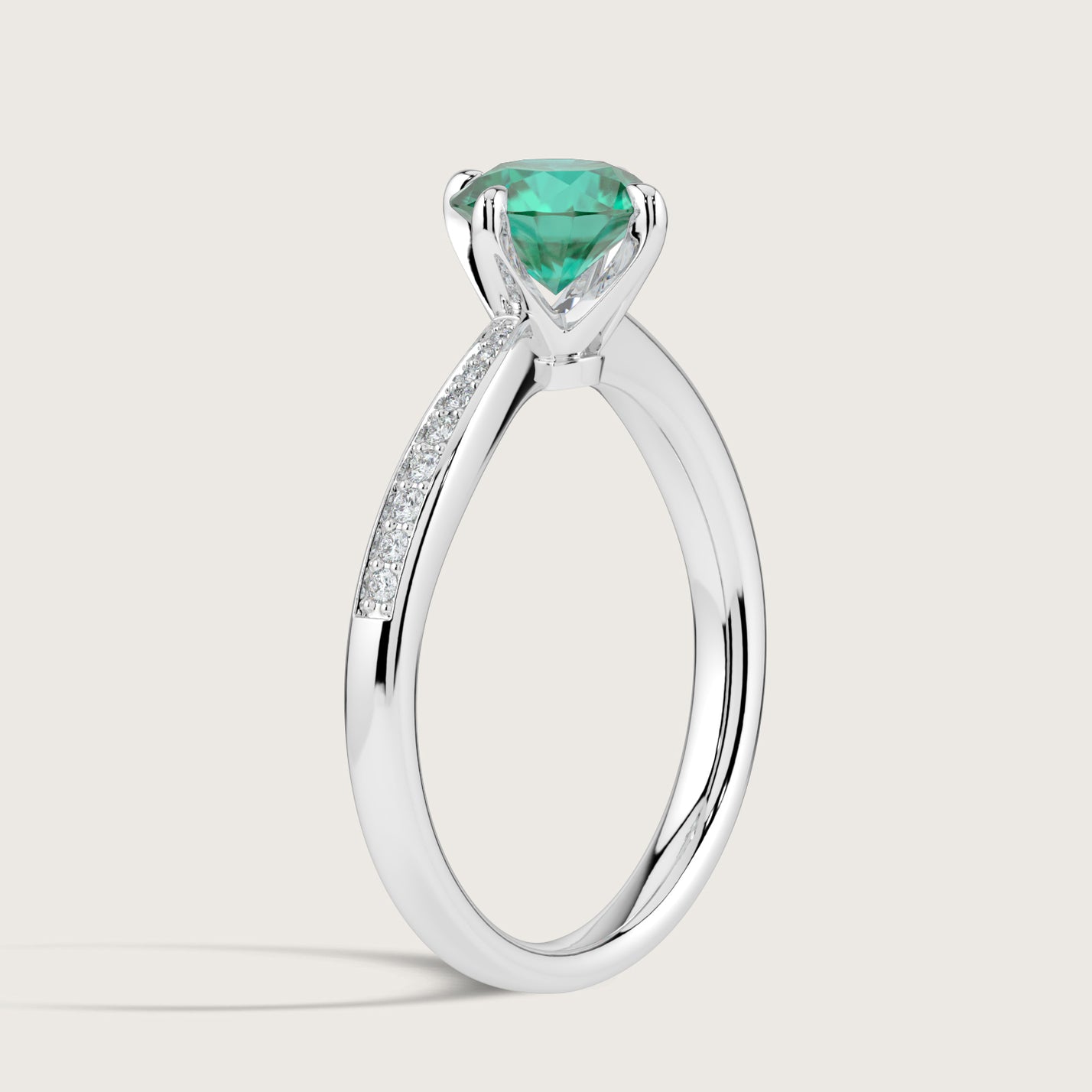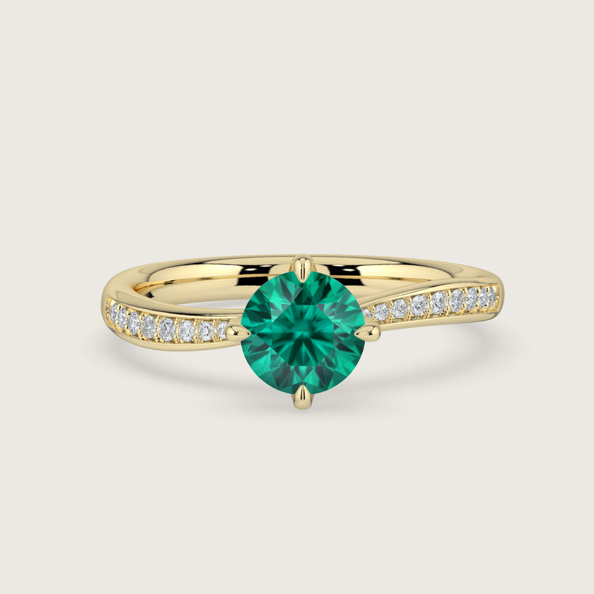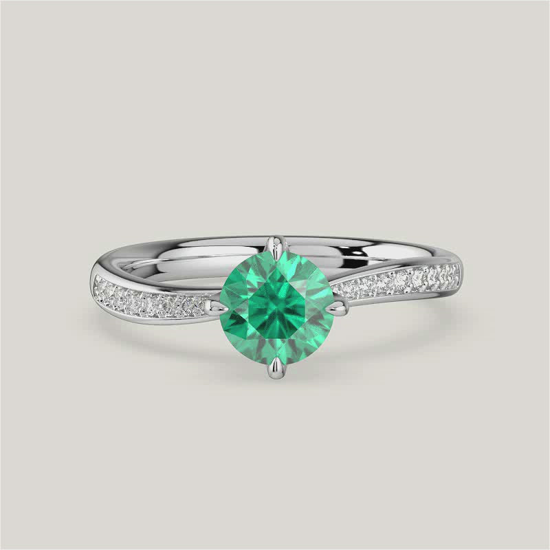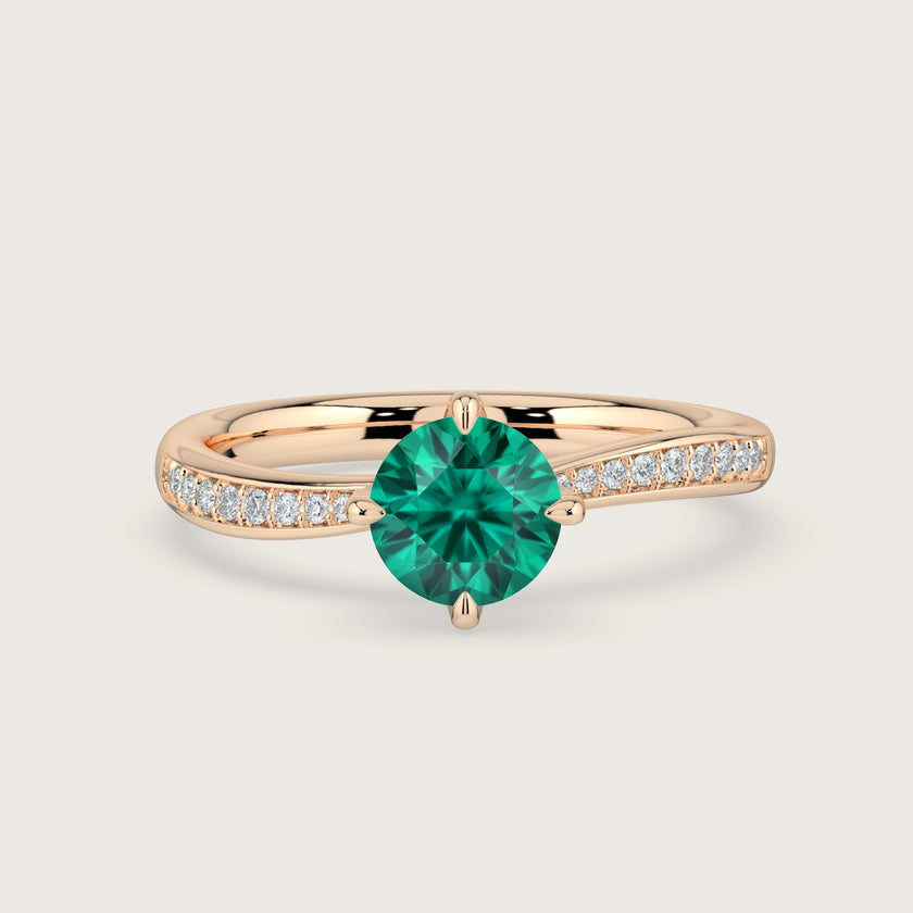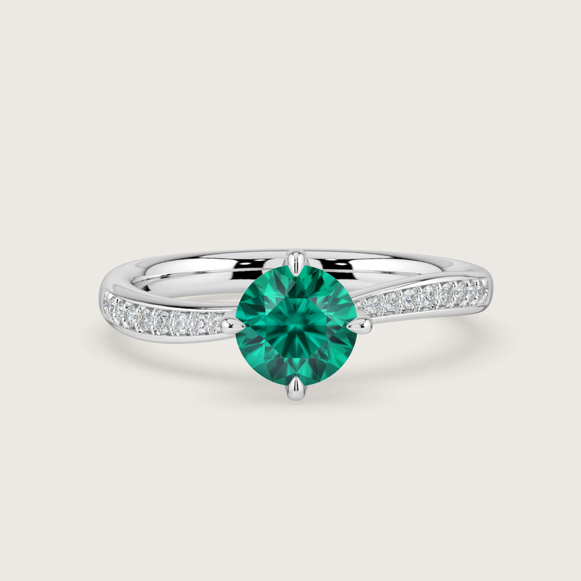 Olivia, Round Brilliant Emerald Curved Pavé Ring