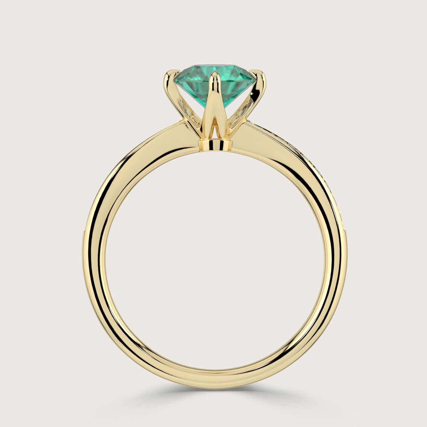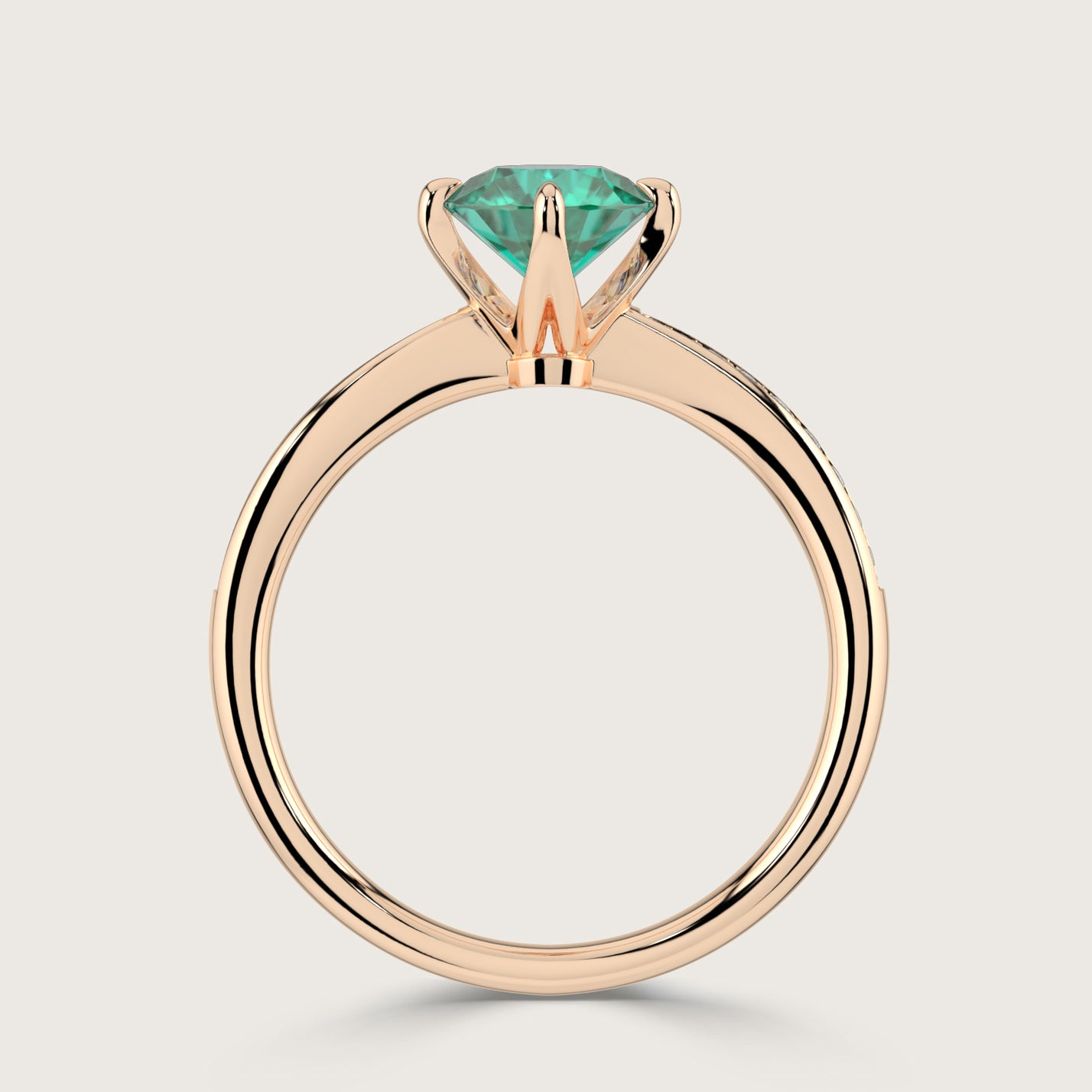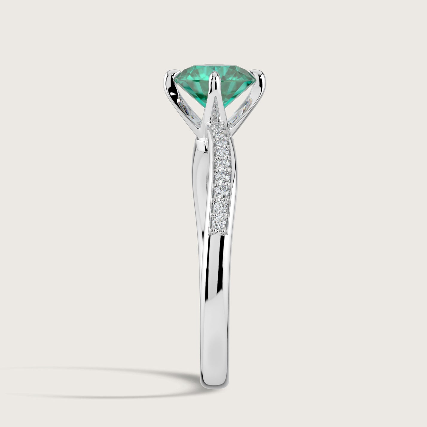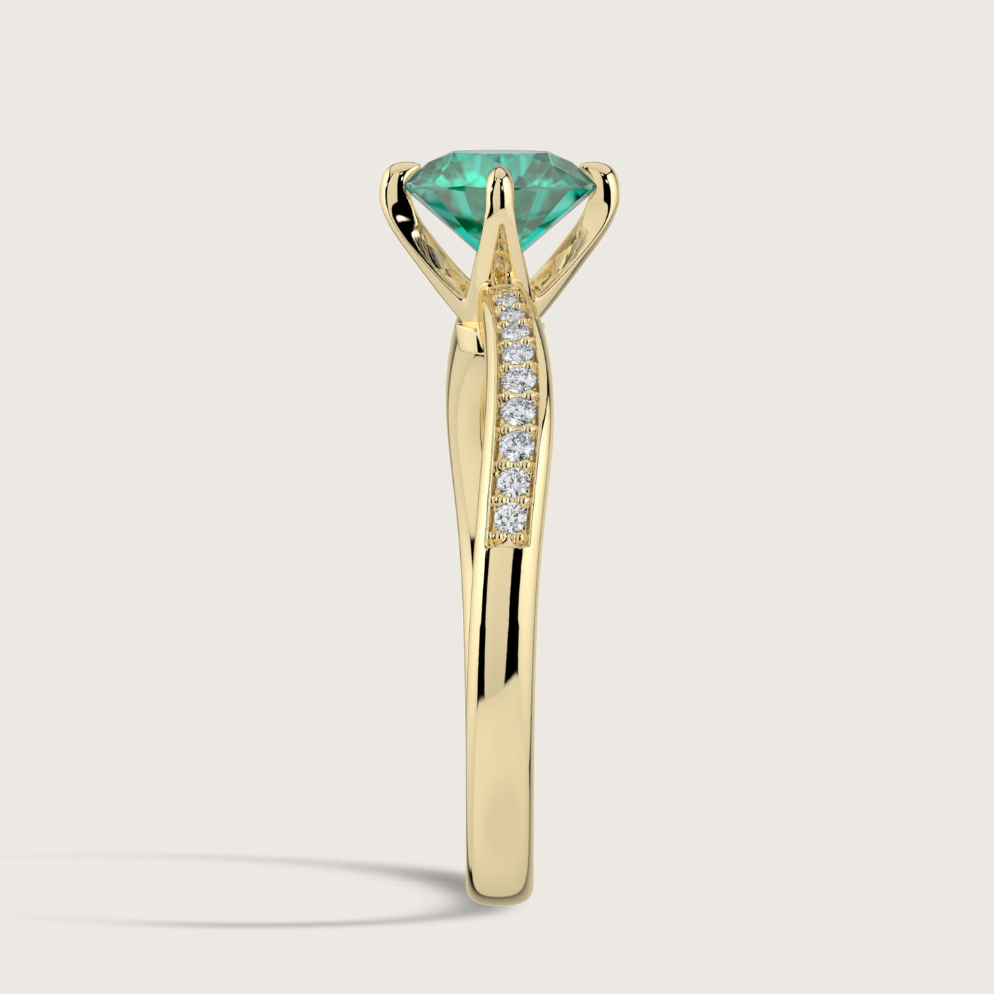 Olivia, Round Brilliant Emerald Curved Pavé Ring