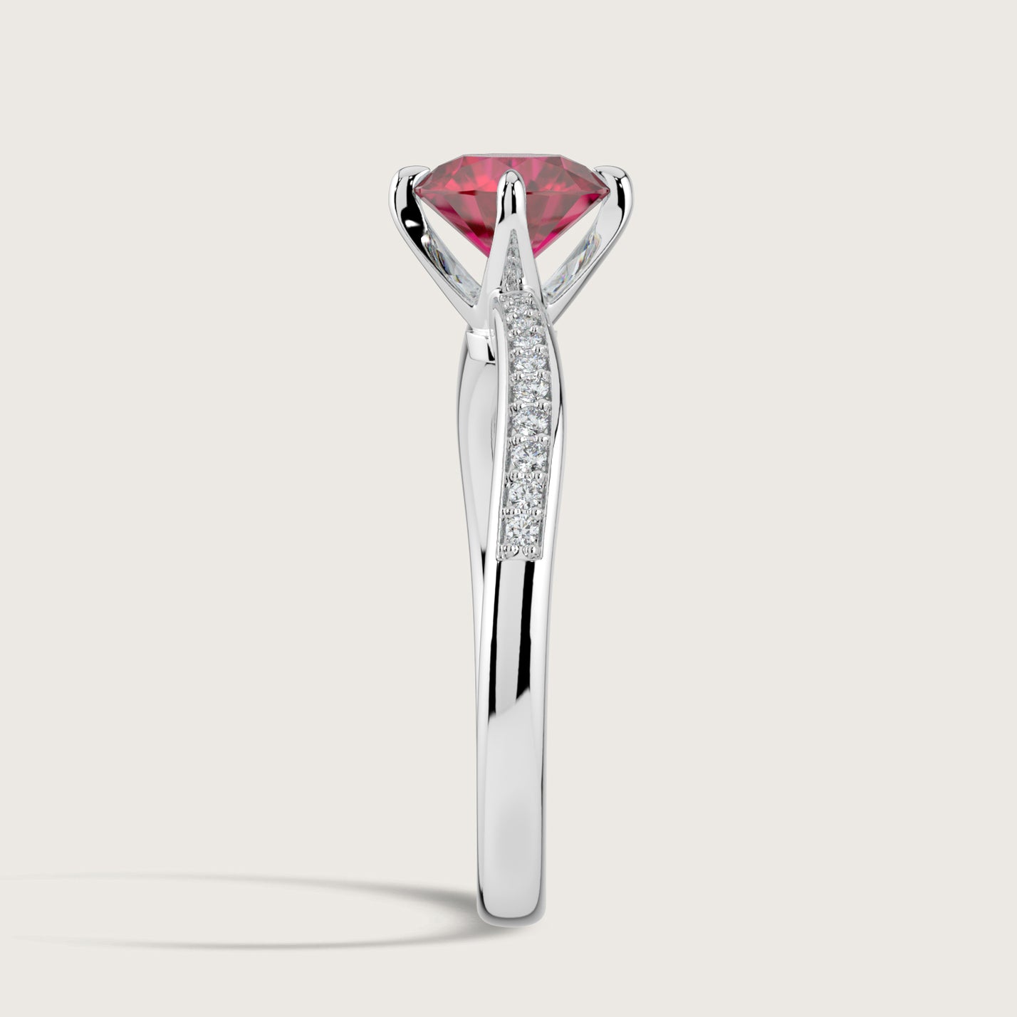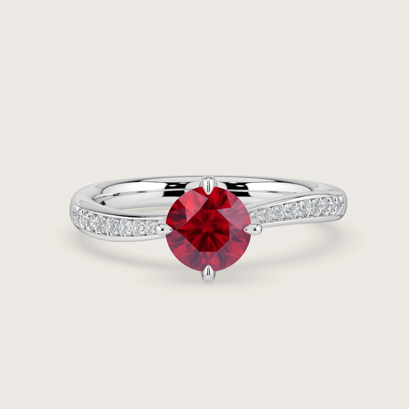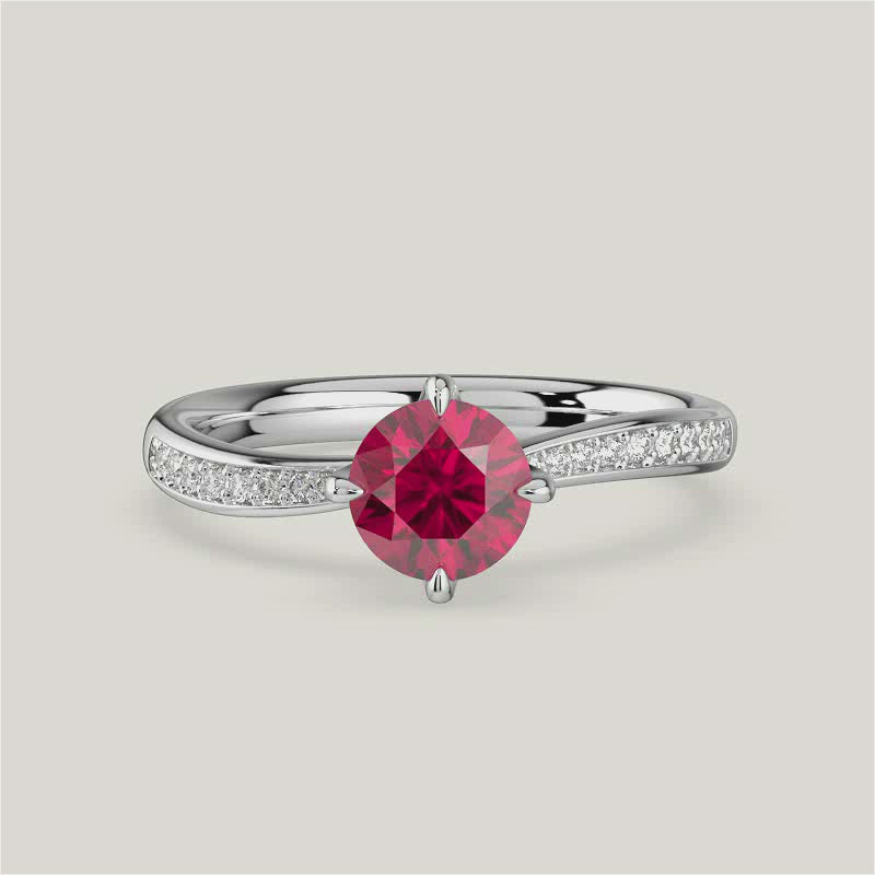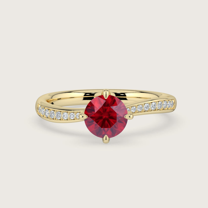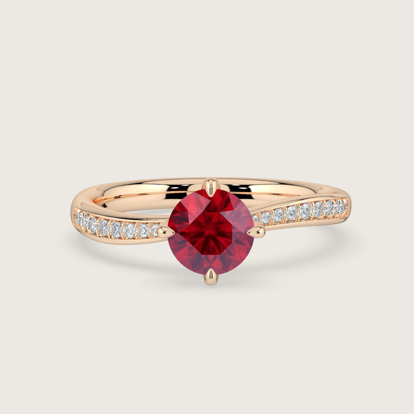 Olivia, Round Brilliant Ruby Curved Pavé Ring