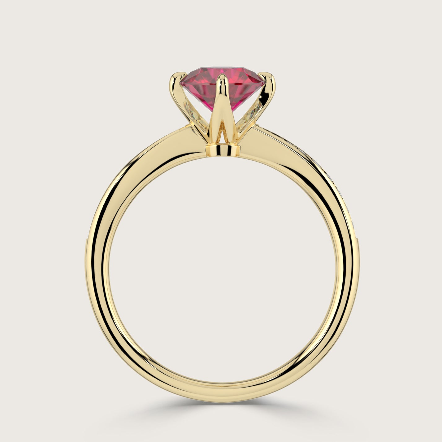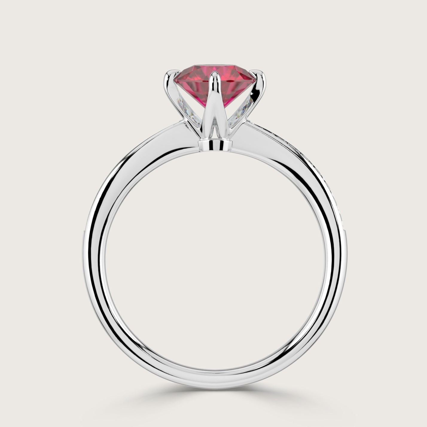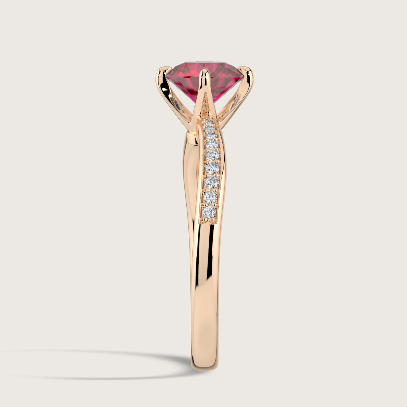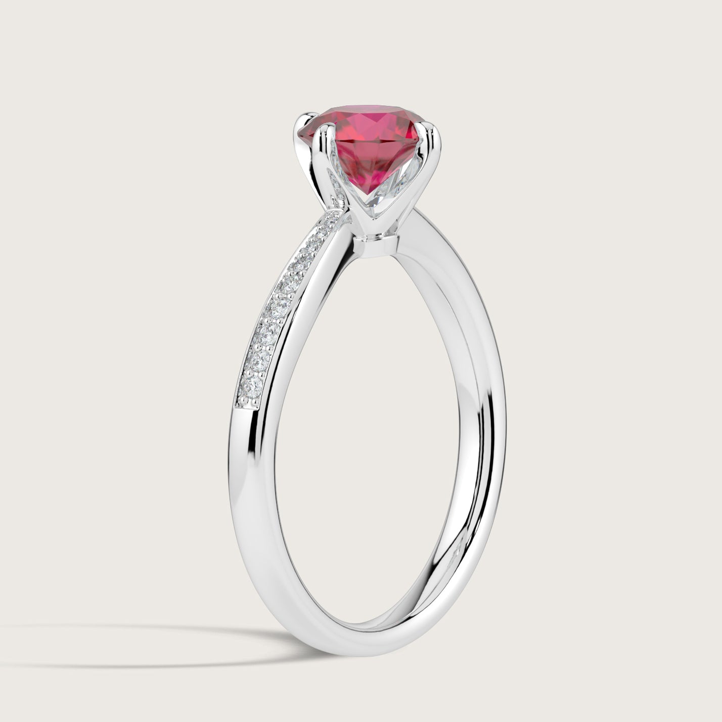 Olivia, Round Brilliant Ruby Curved Pavé Ring