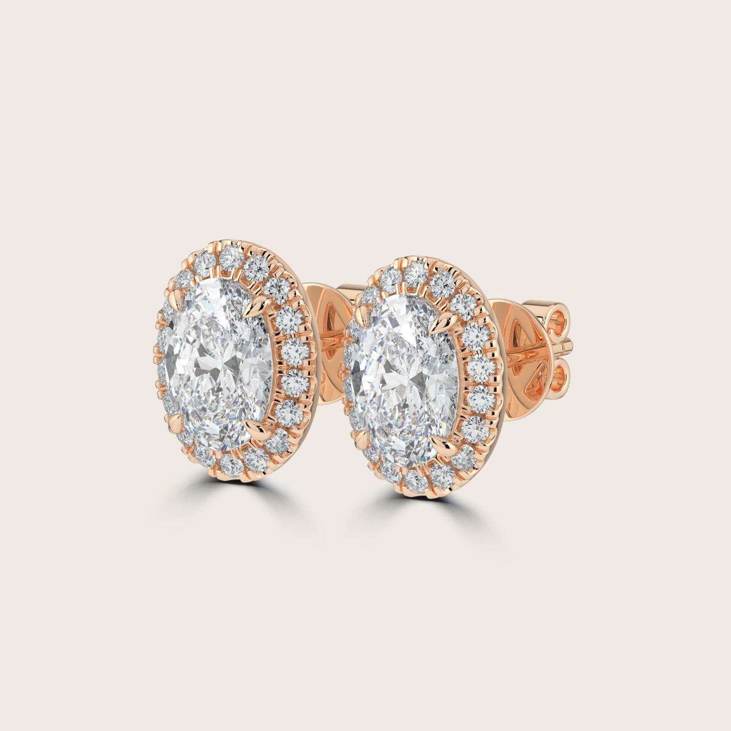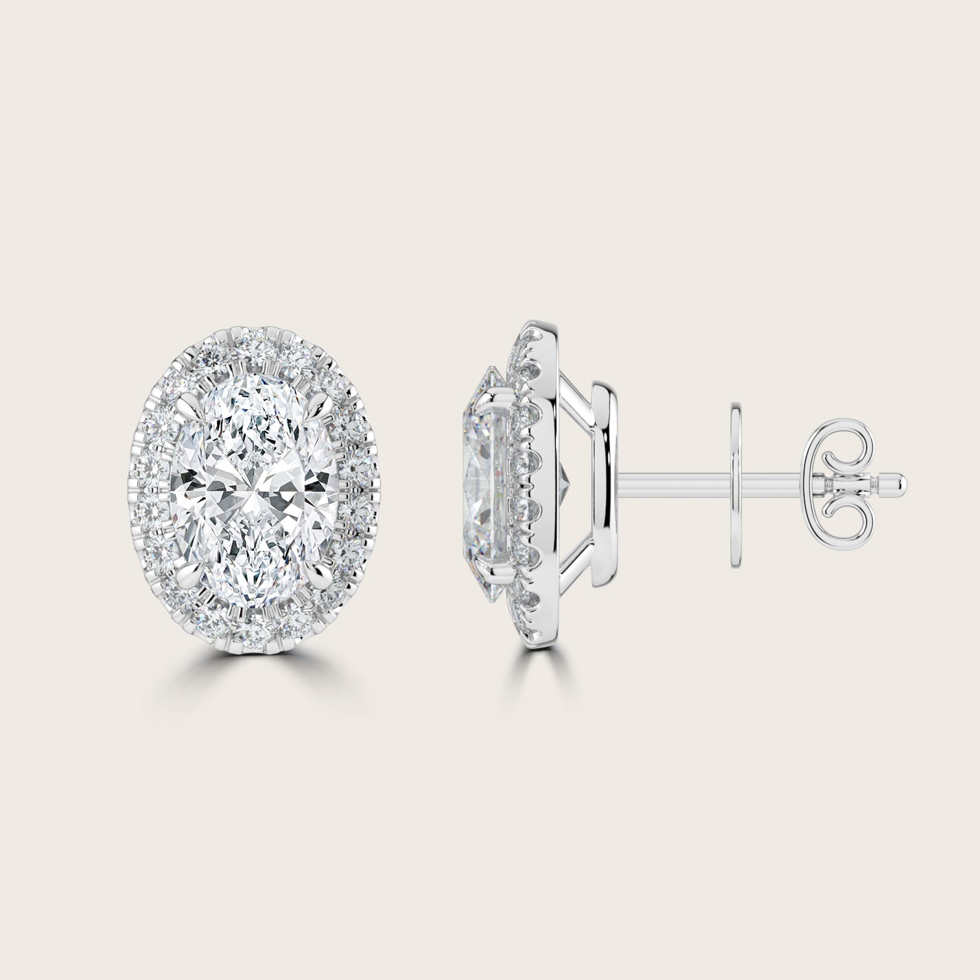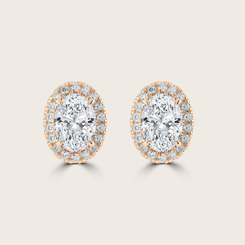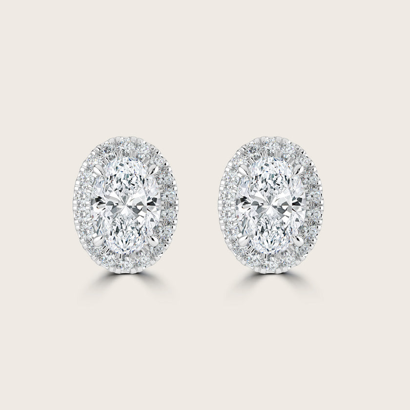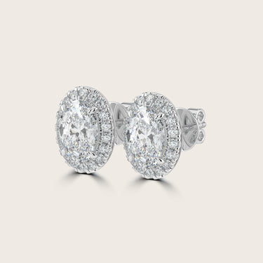 Oval Cut Diamond Halo Stud Earrings