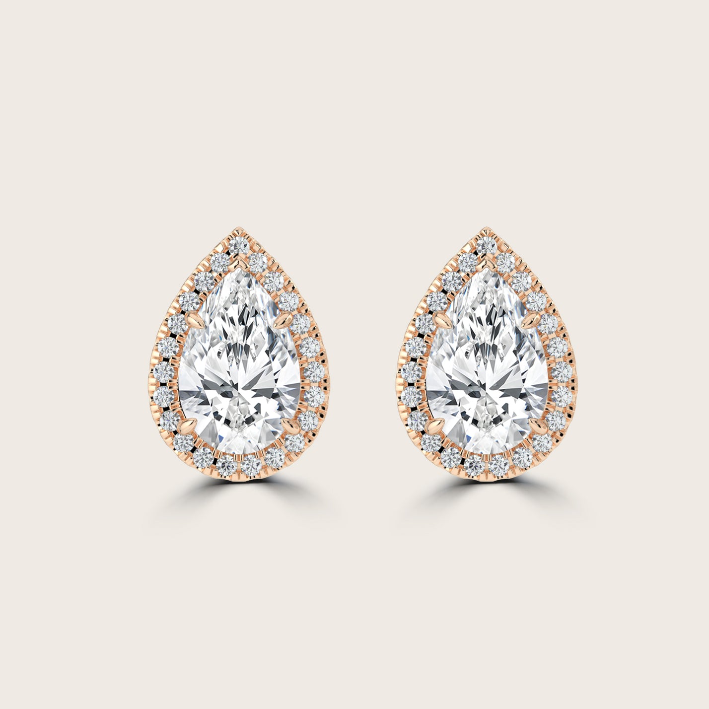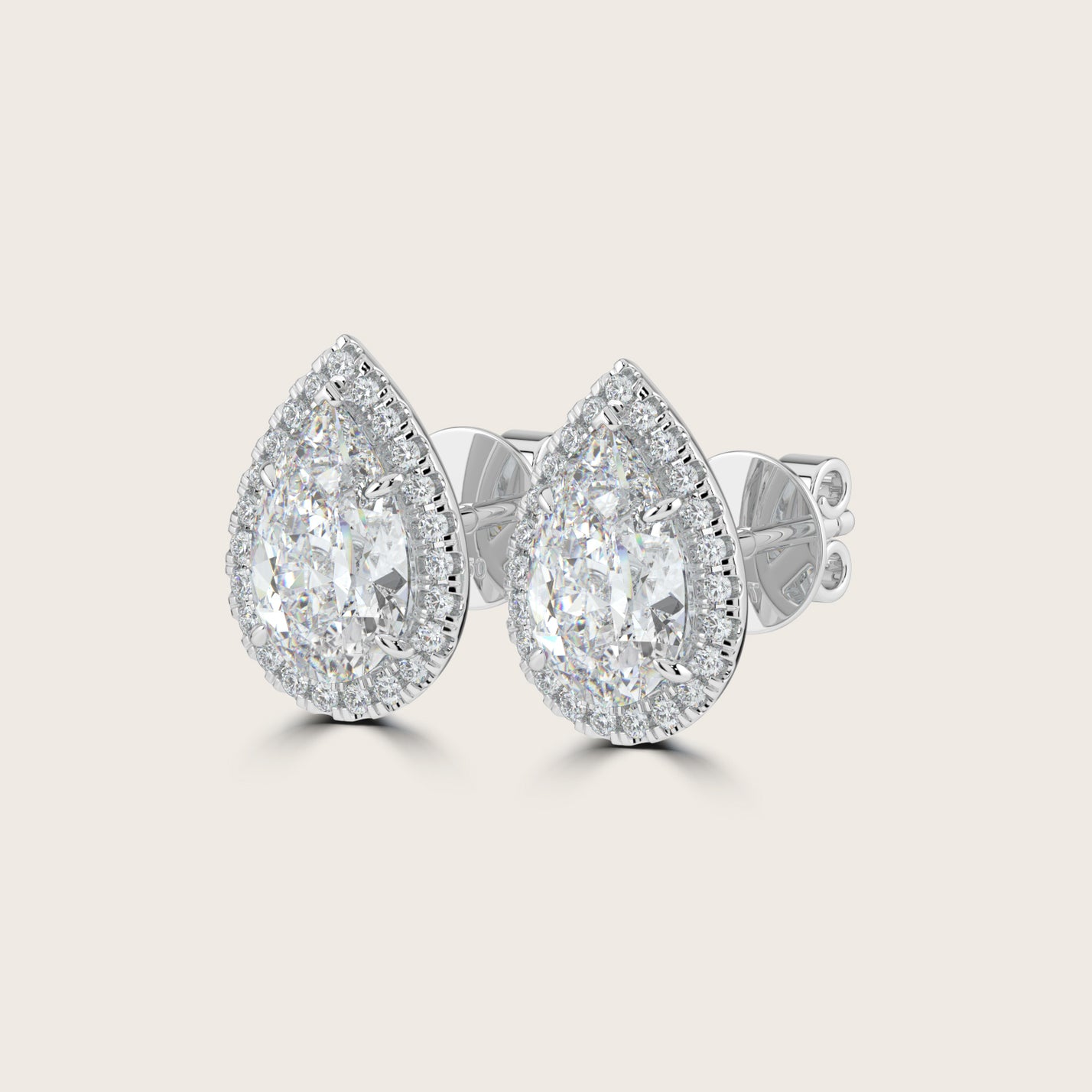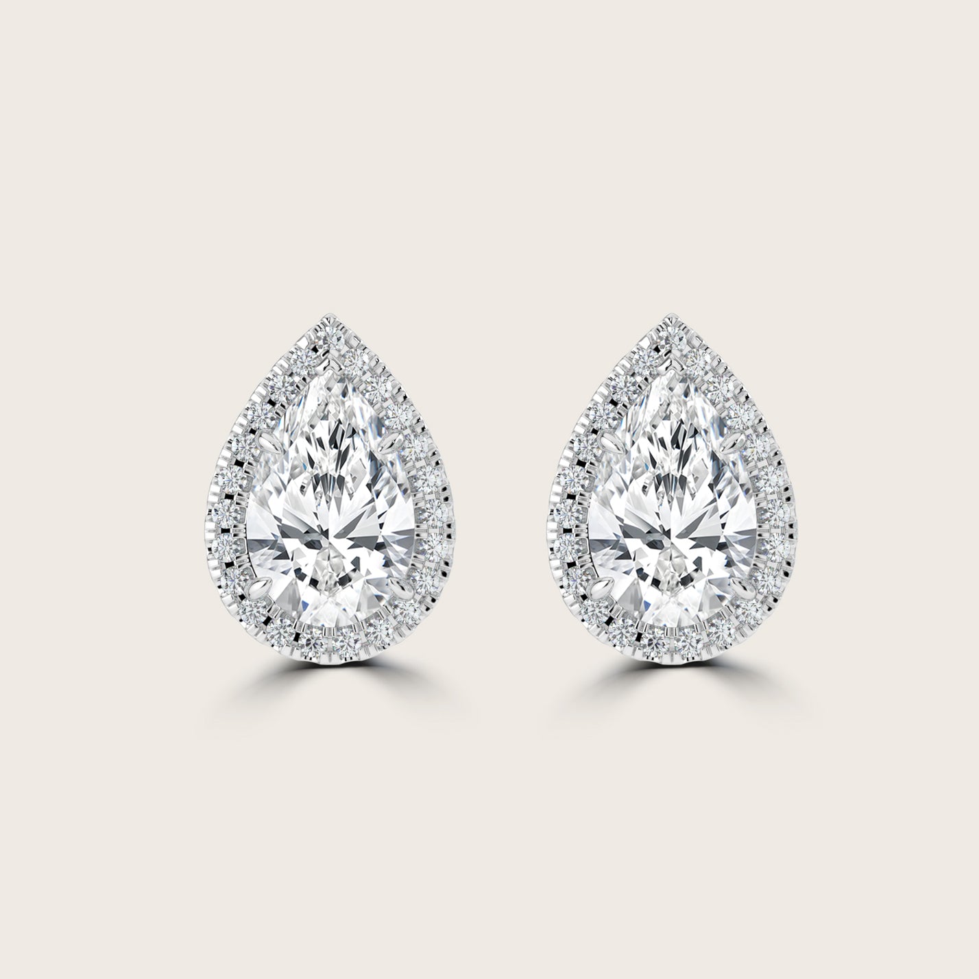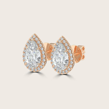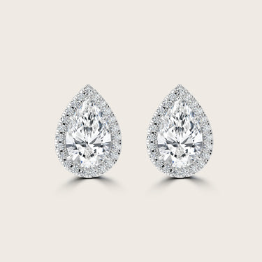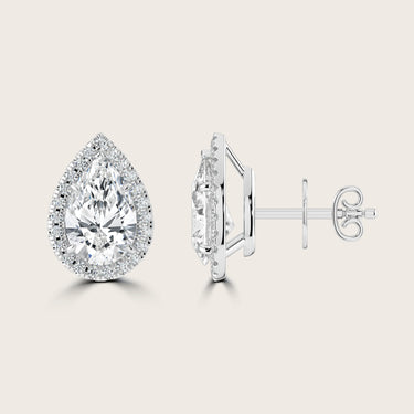 Pear Cut Diamond Halo Stud Earrings