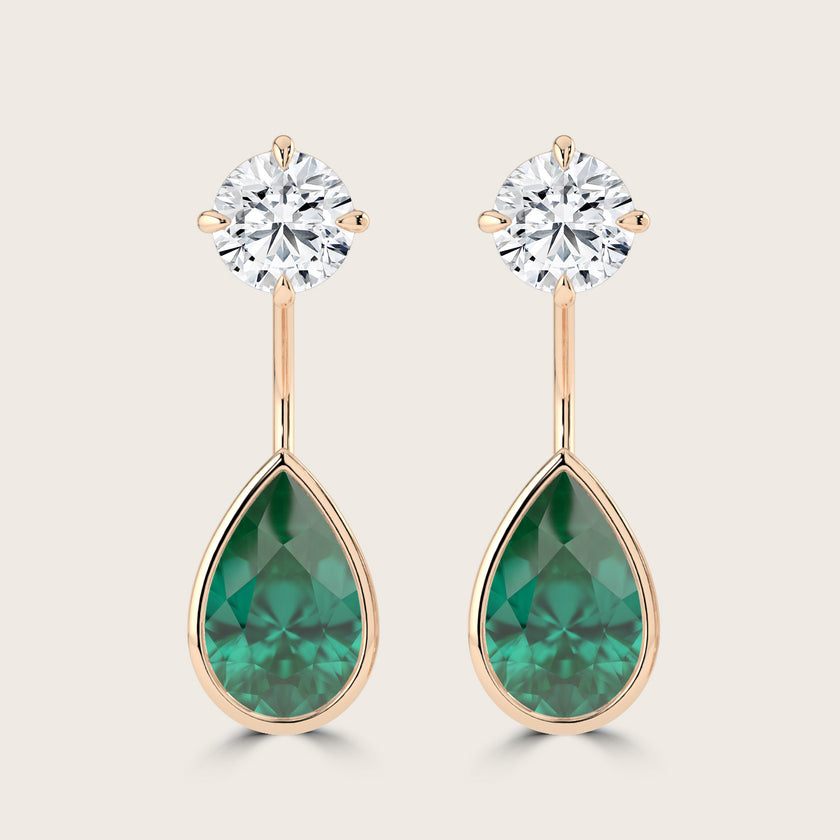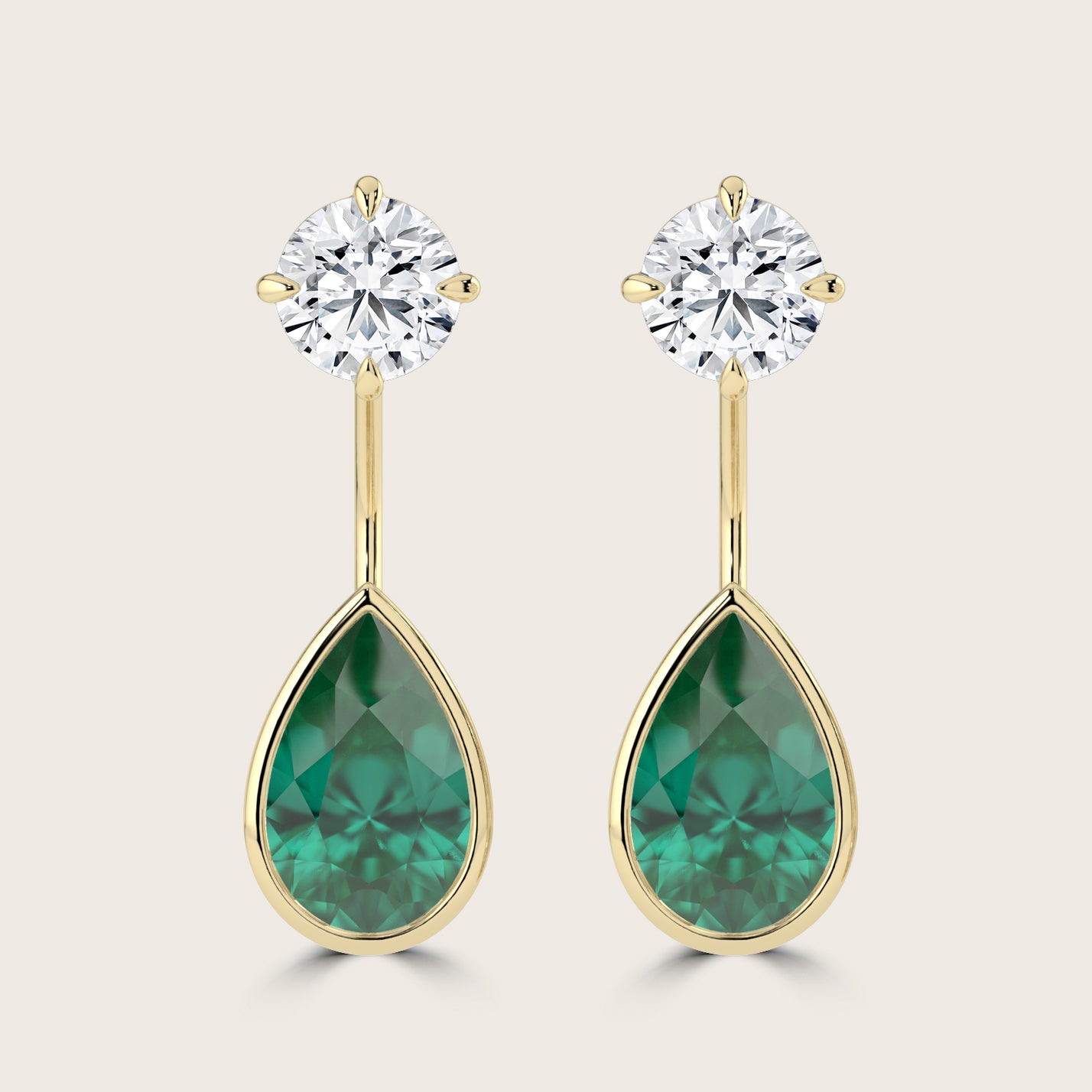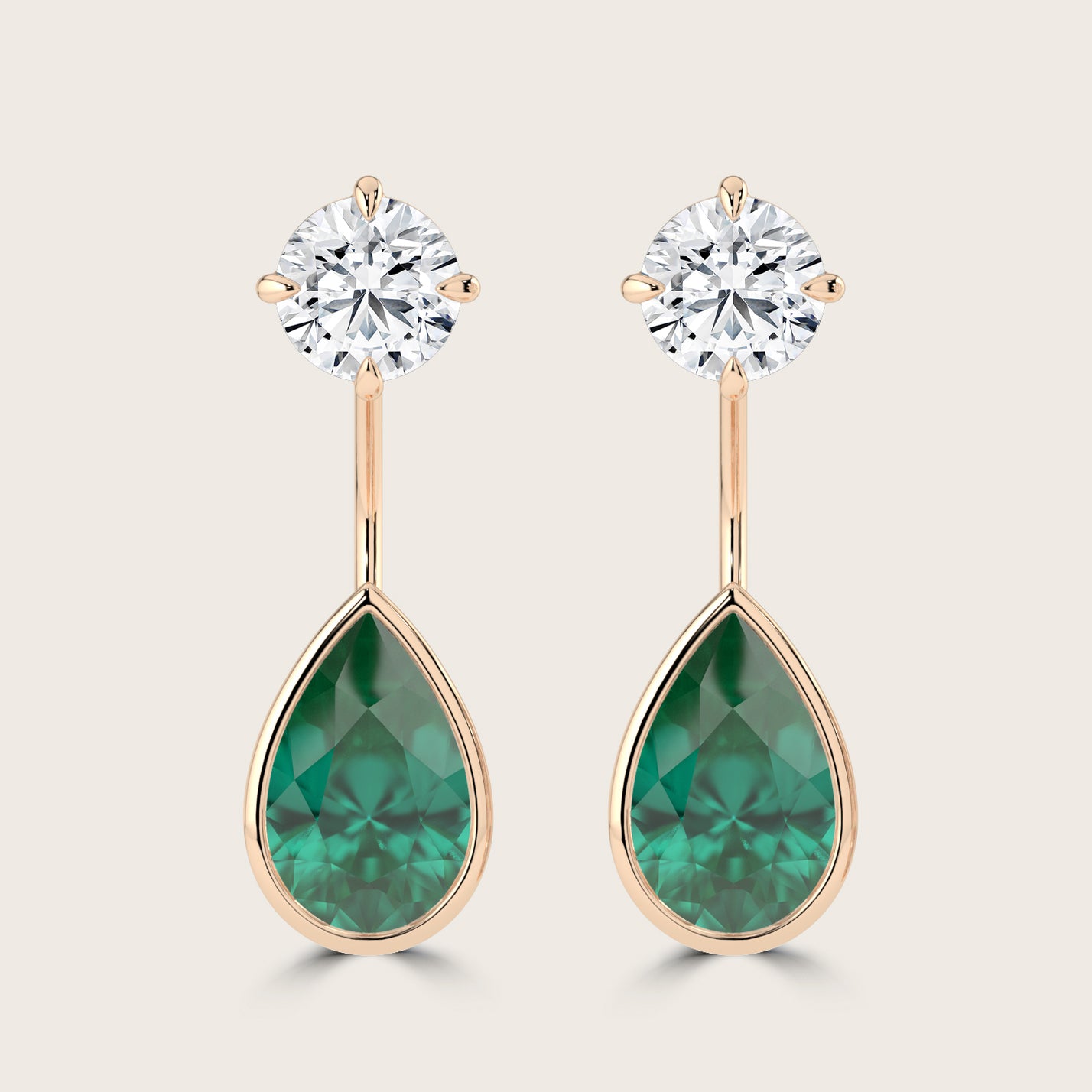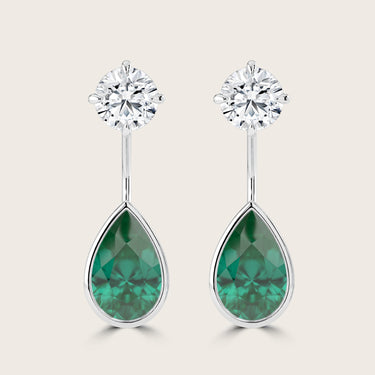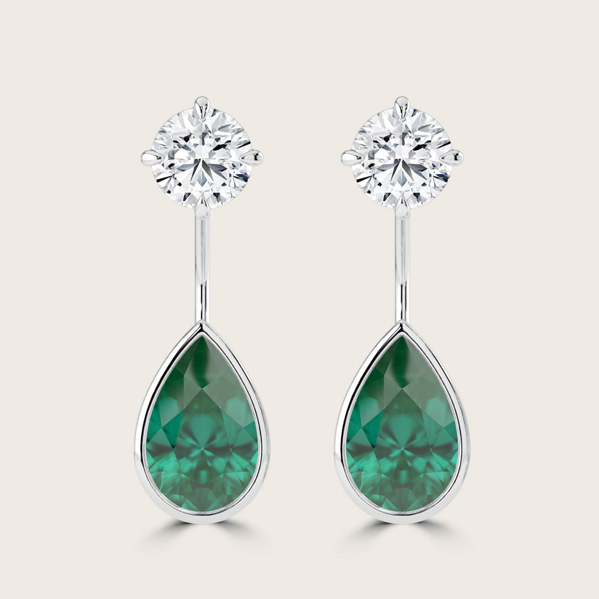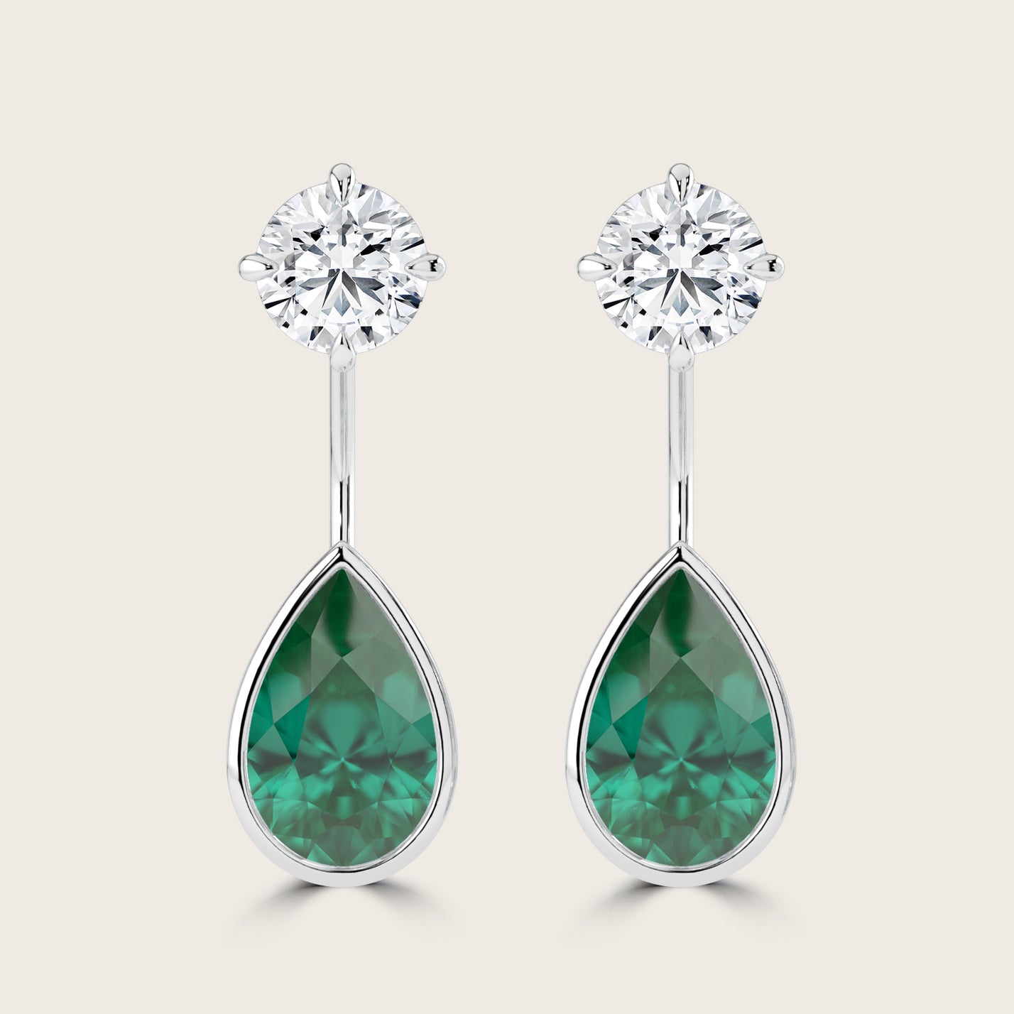Round Brilliant Diamond & Pear-Cut Emerald Drop Earrings
