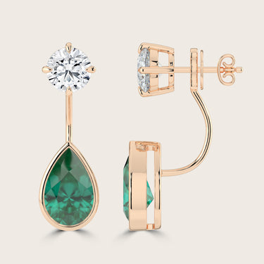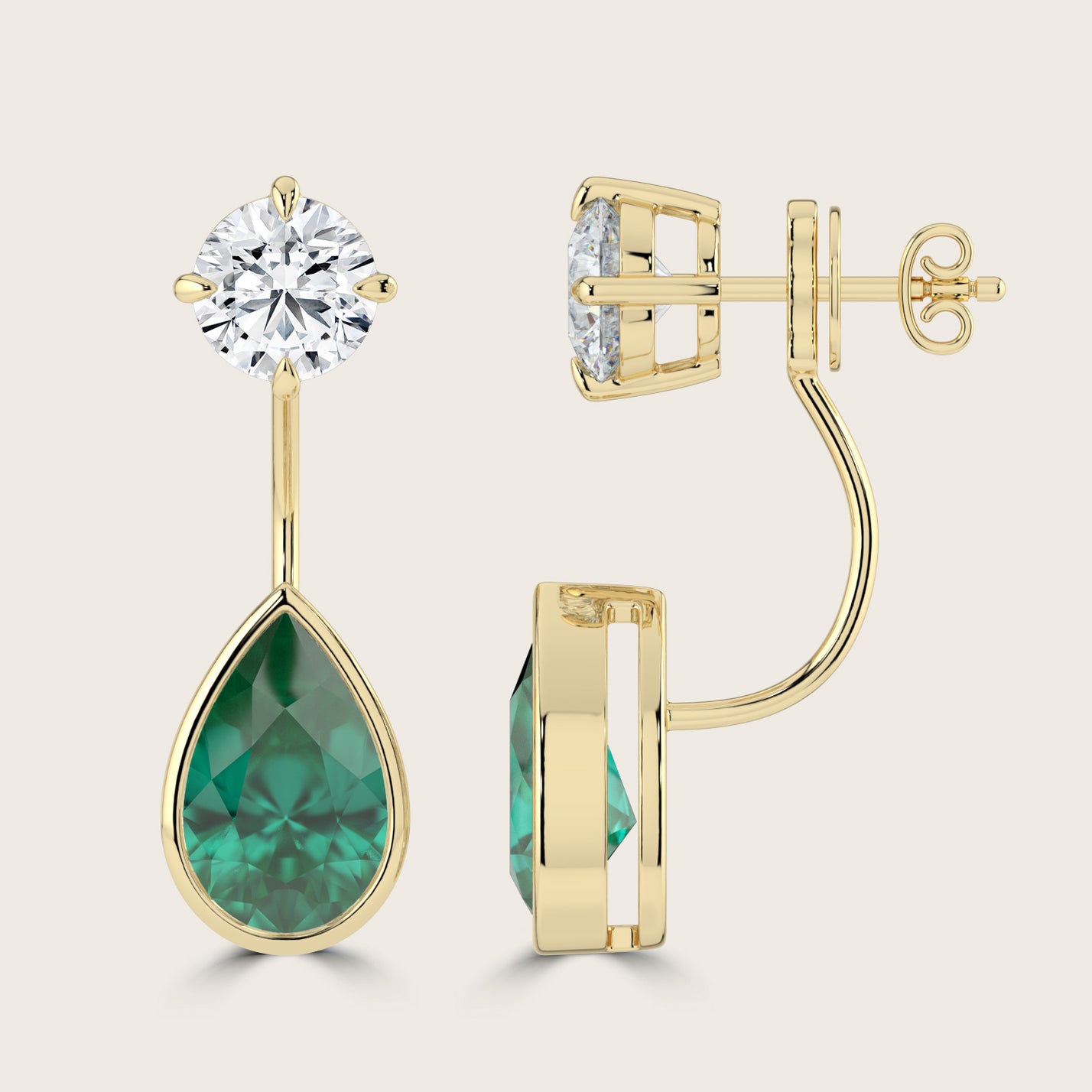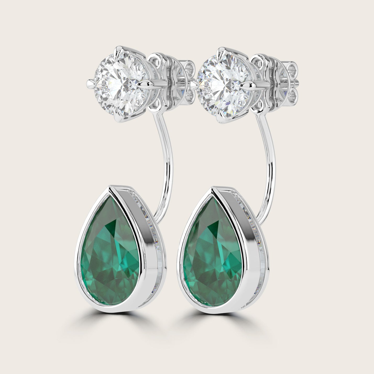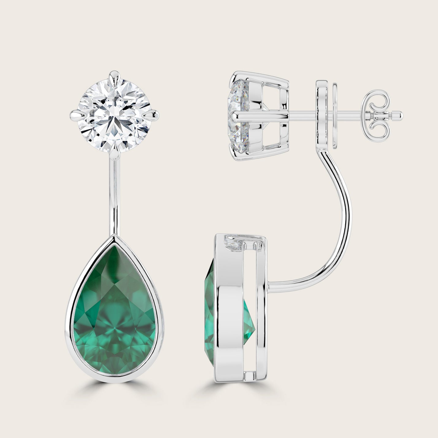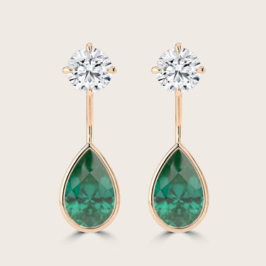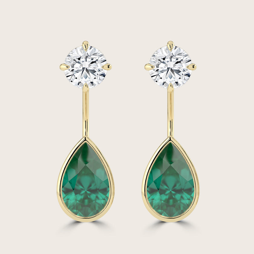 Round Brilliant Diamond & Pear-Cut Emerald Drop Earrings