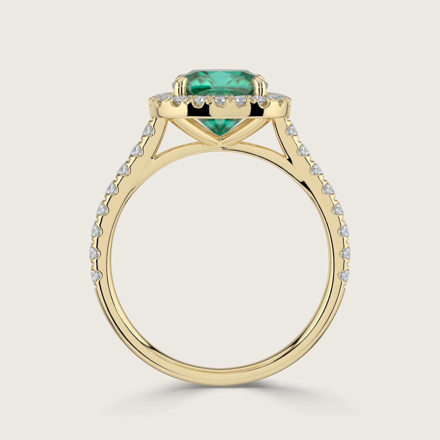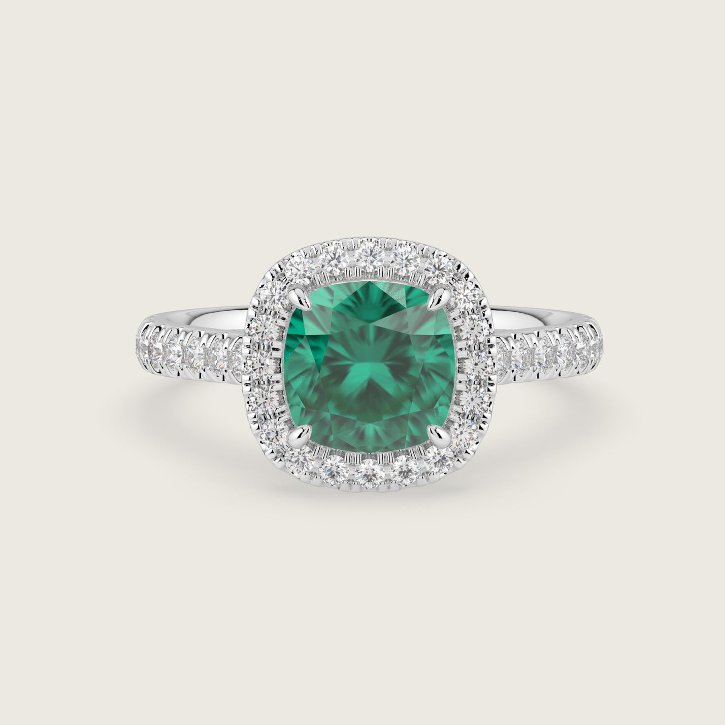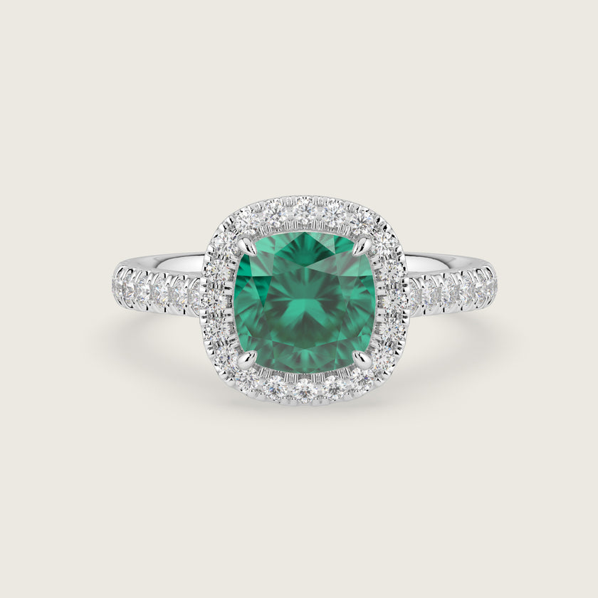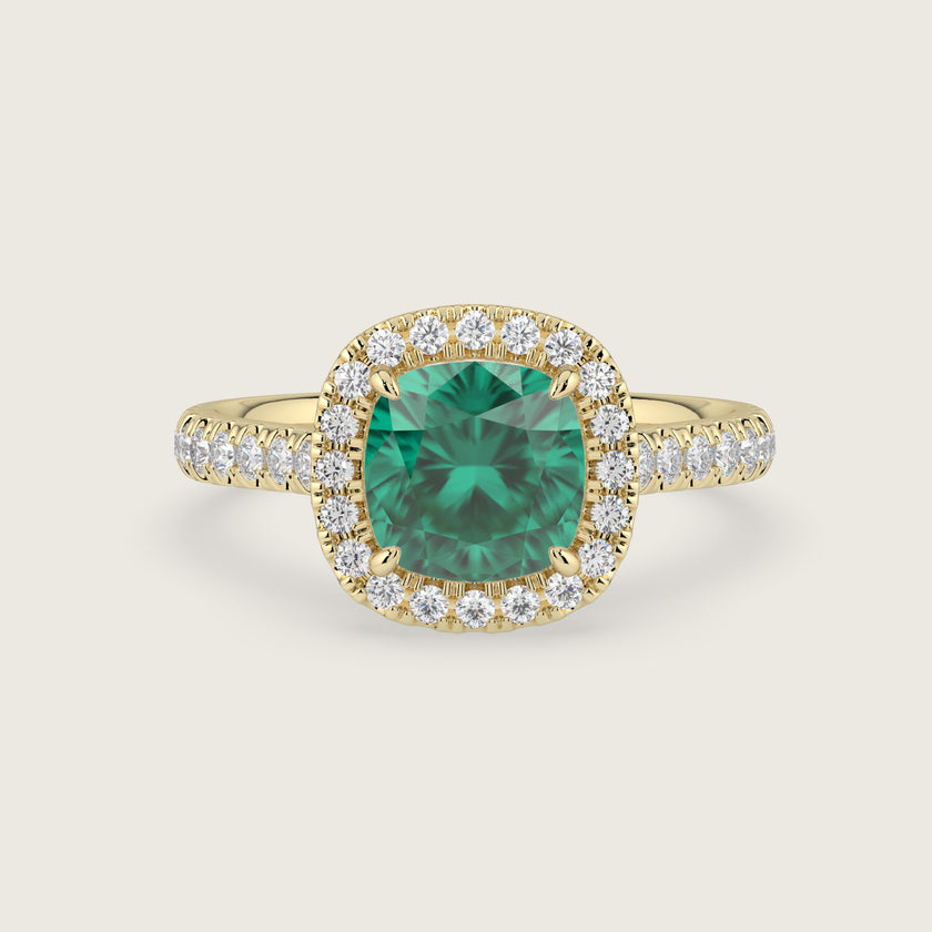 Stella, Cushion Cut Emerald Halo Pavé Ring