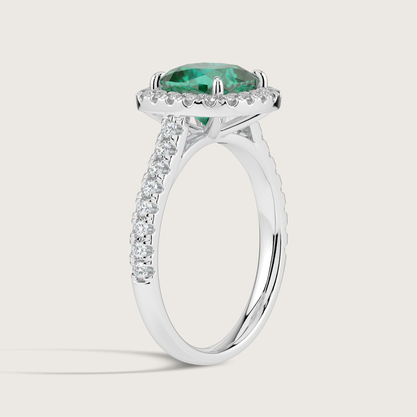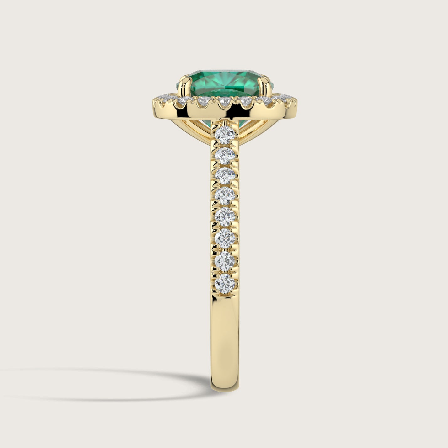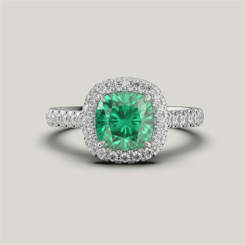 Stella, Cushion Cut Emerald Halo Pavé Ring