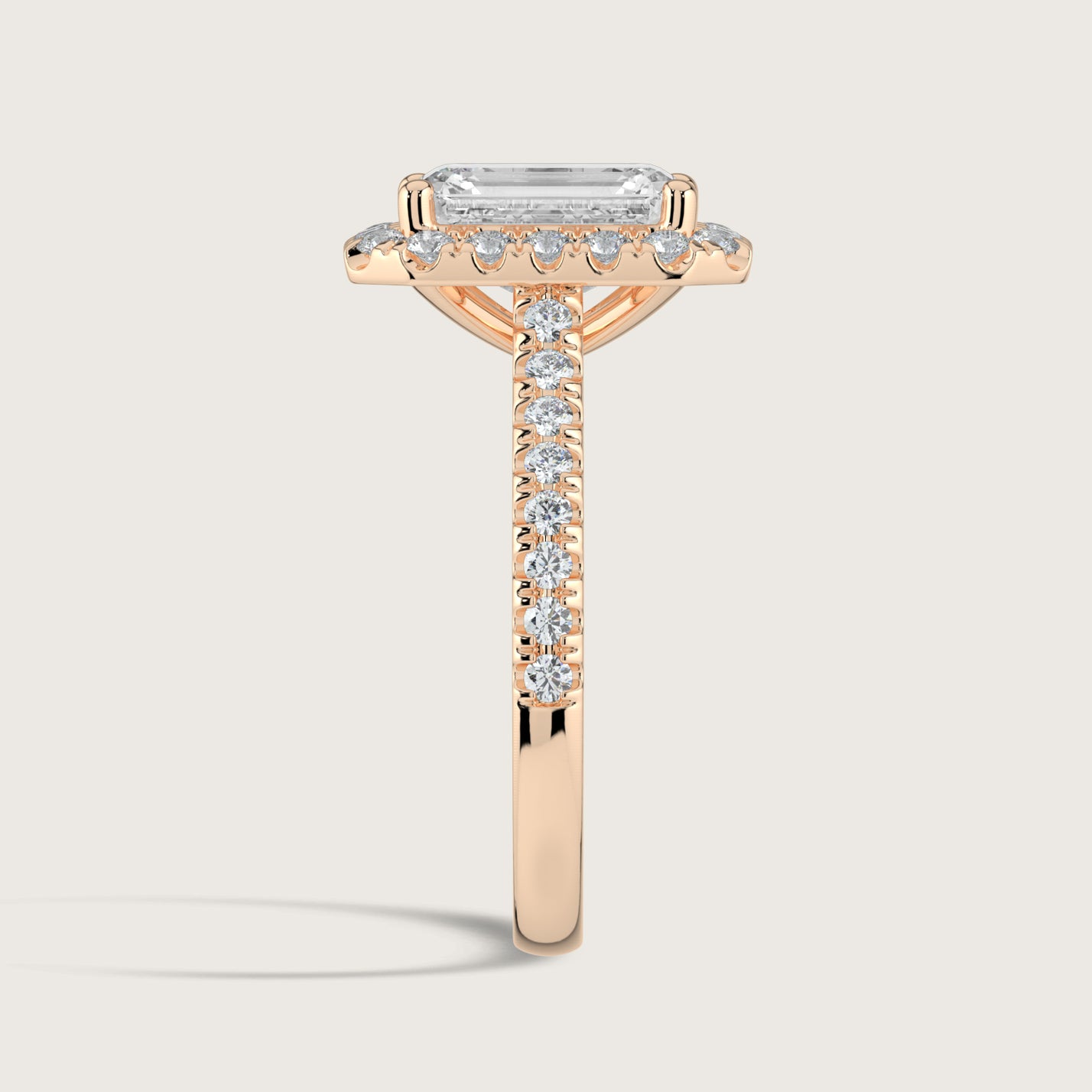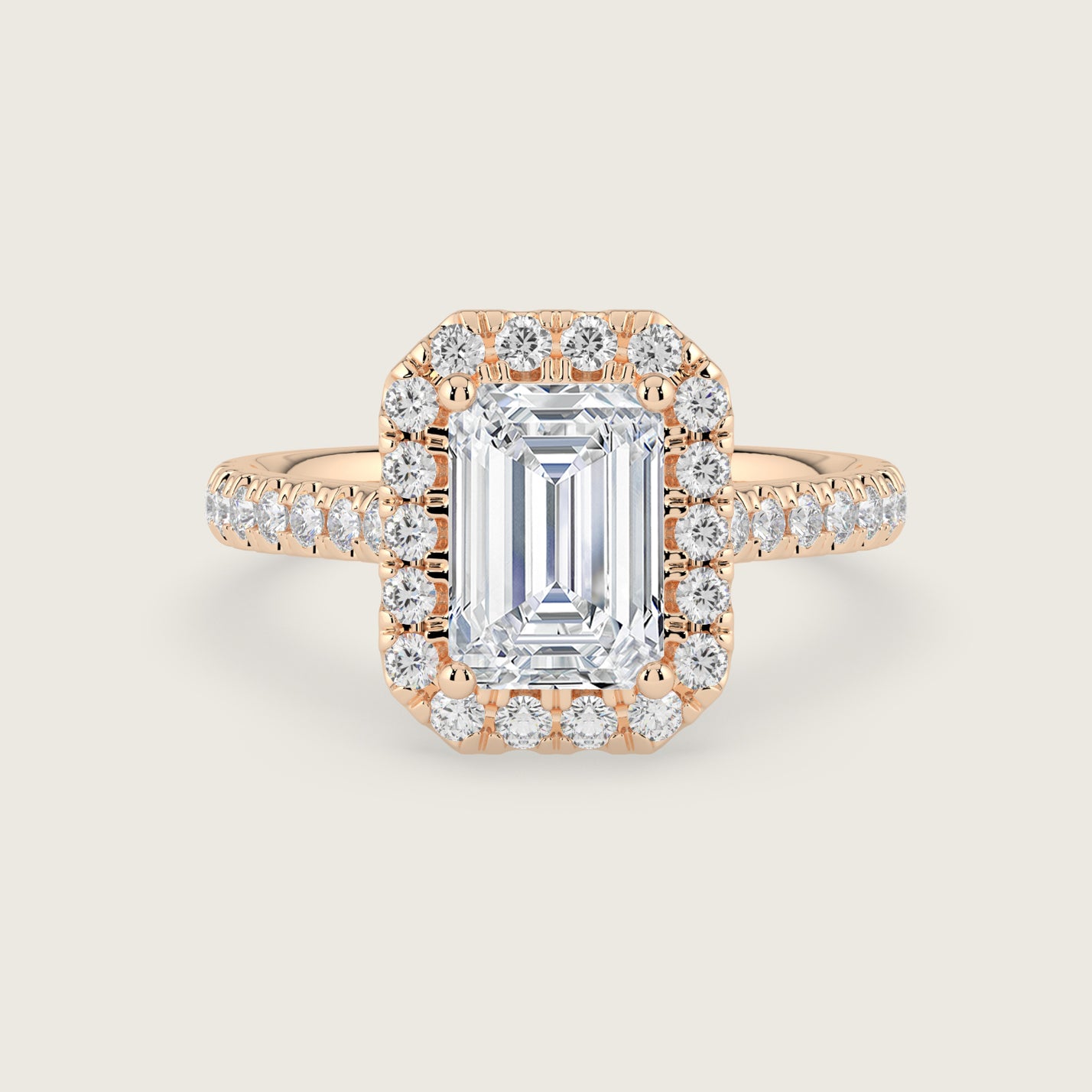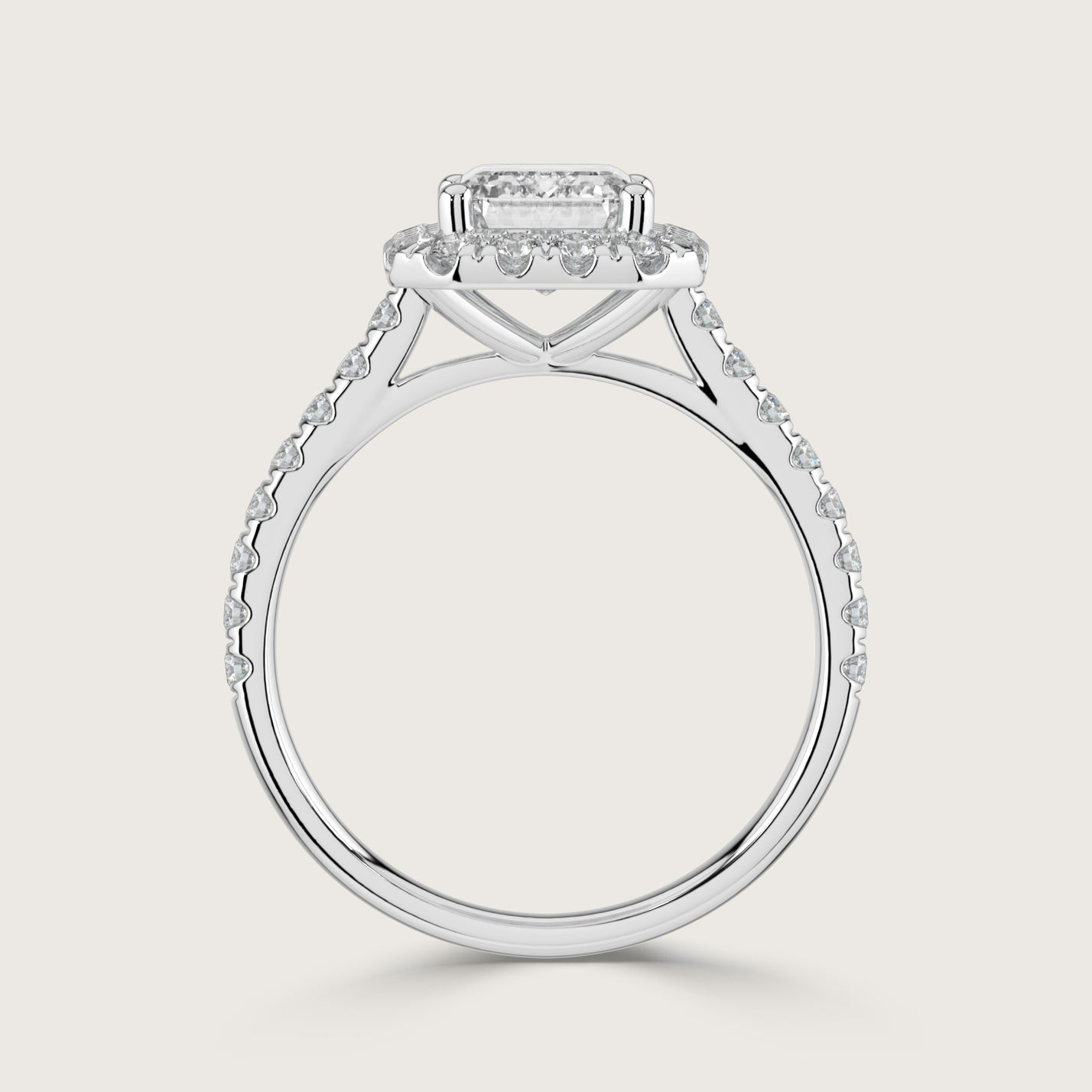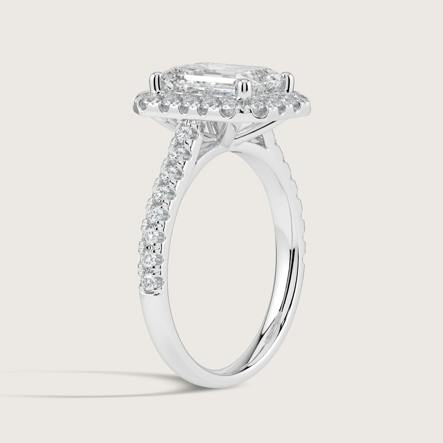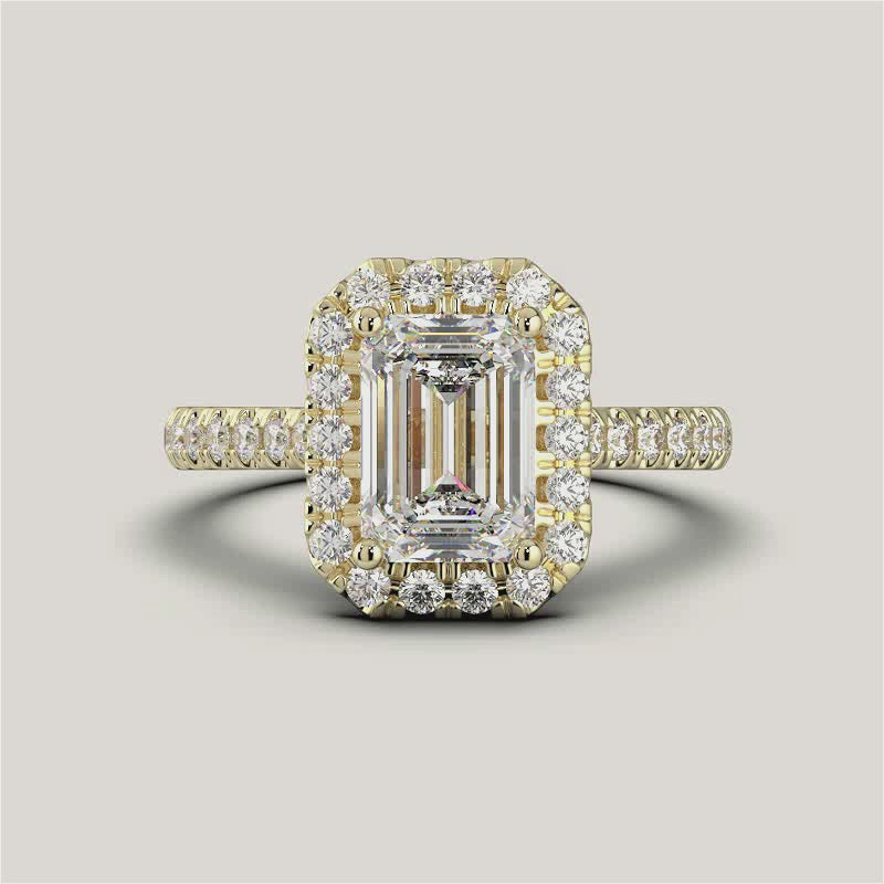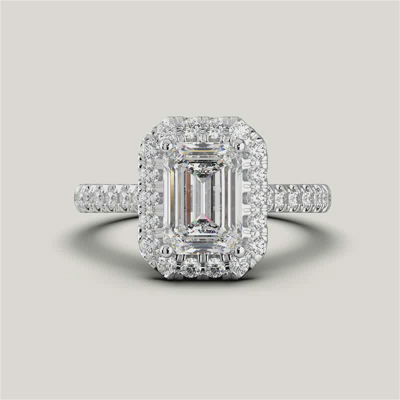 Stella, Emerald Cut Diamond Halo Pavé Ring
