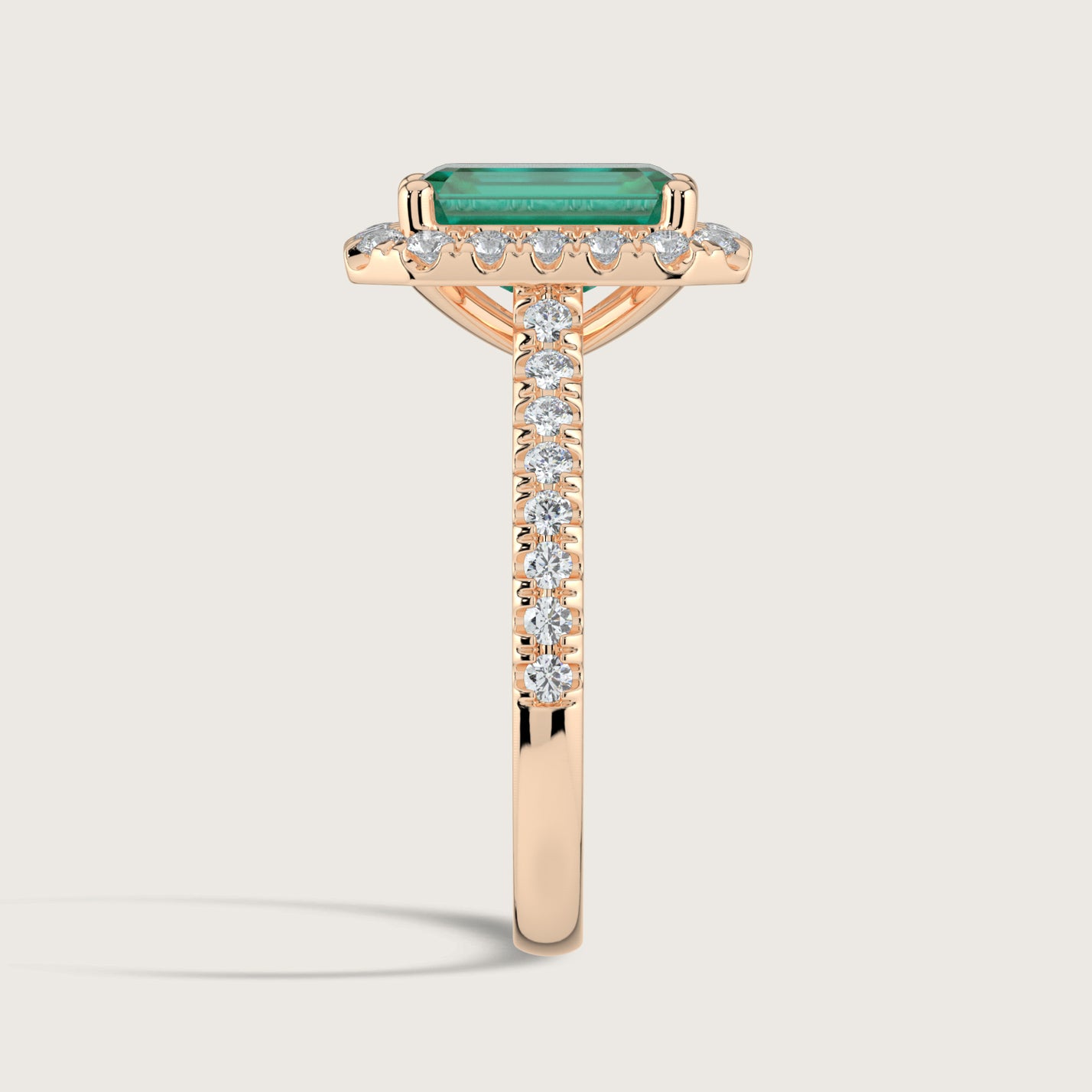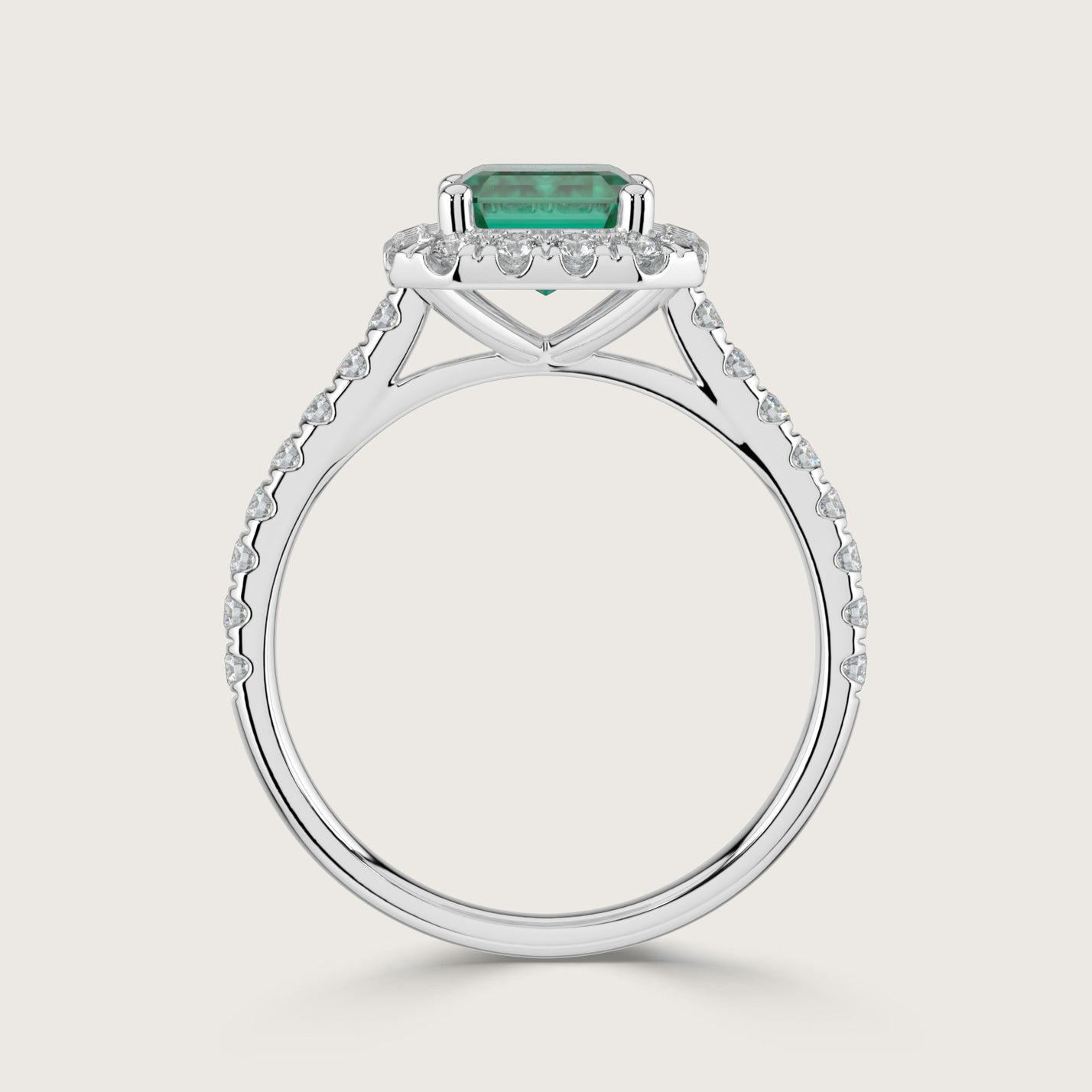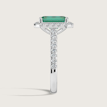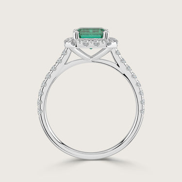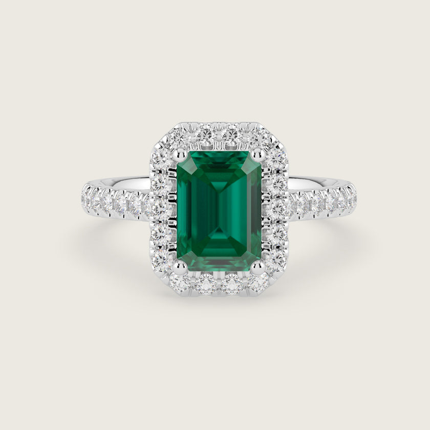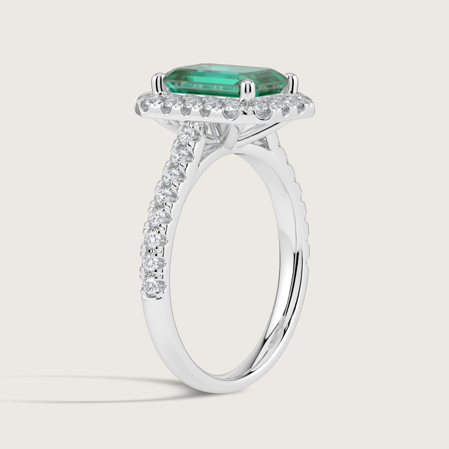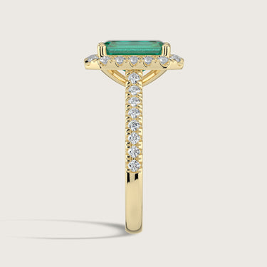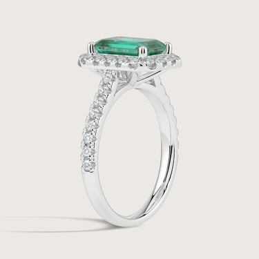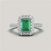Stella, Emerald Cut Emerald Halo Pavé Ring