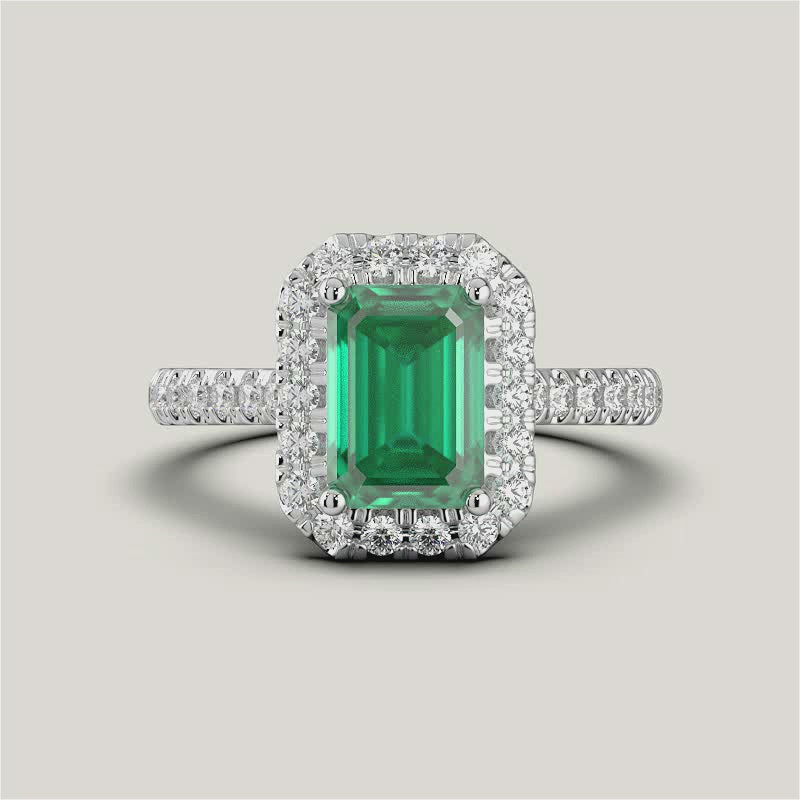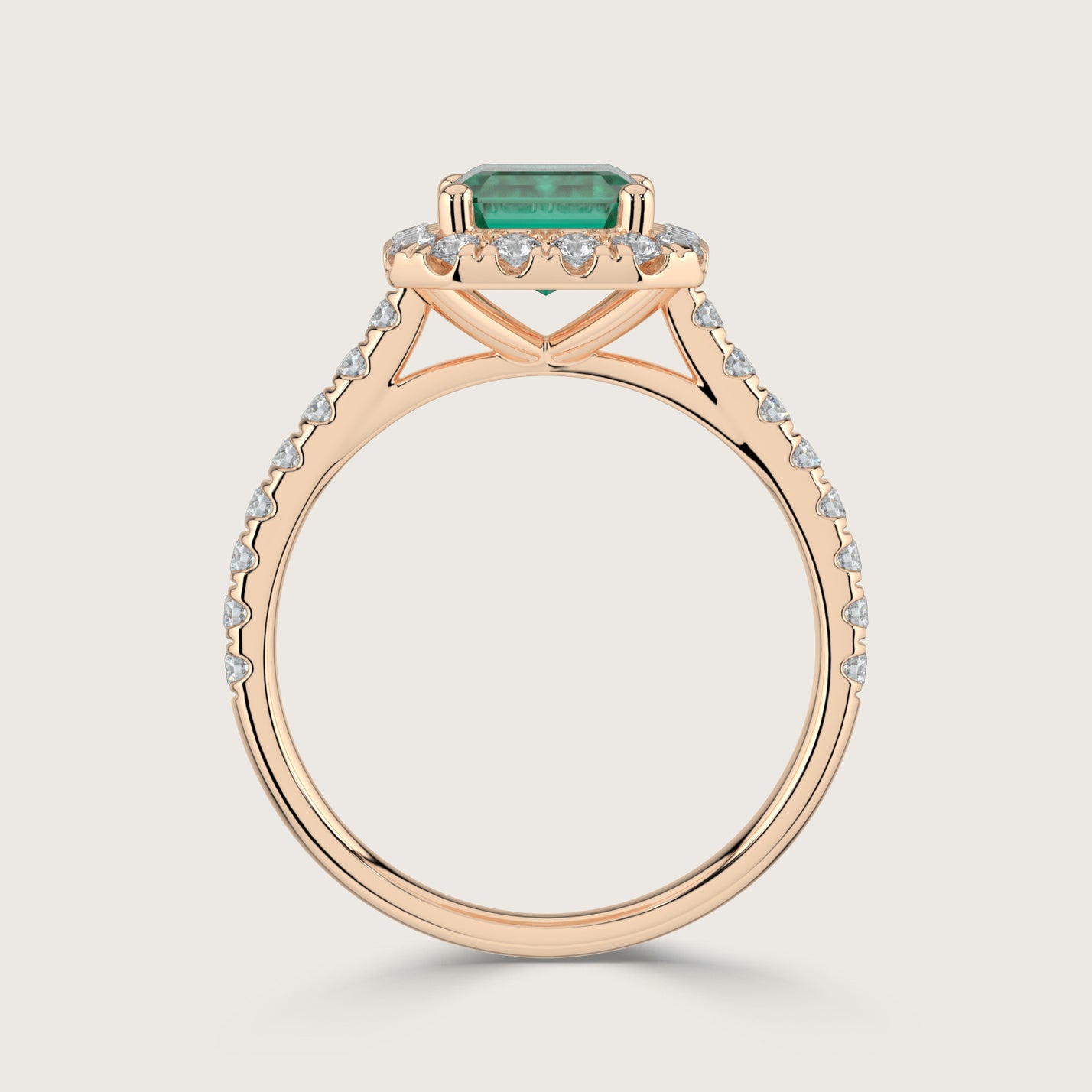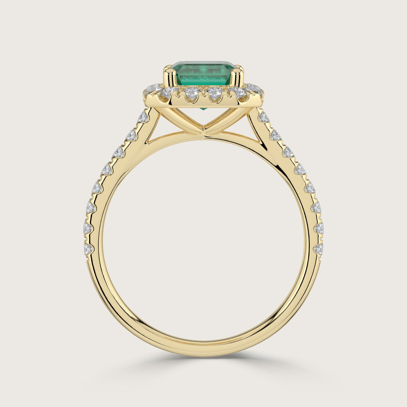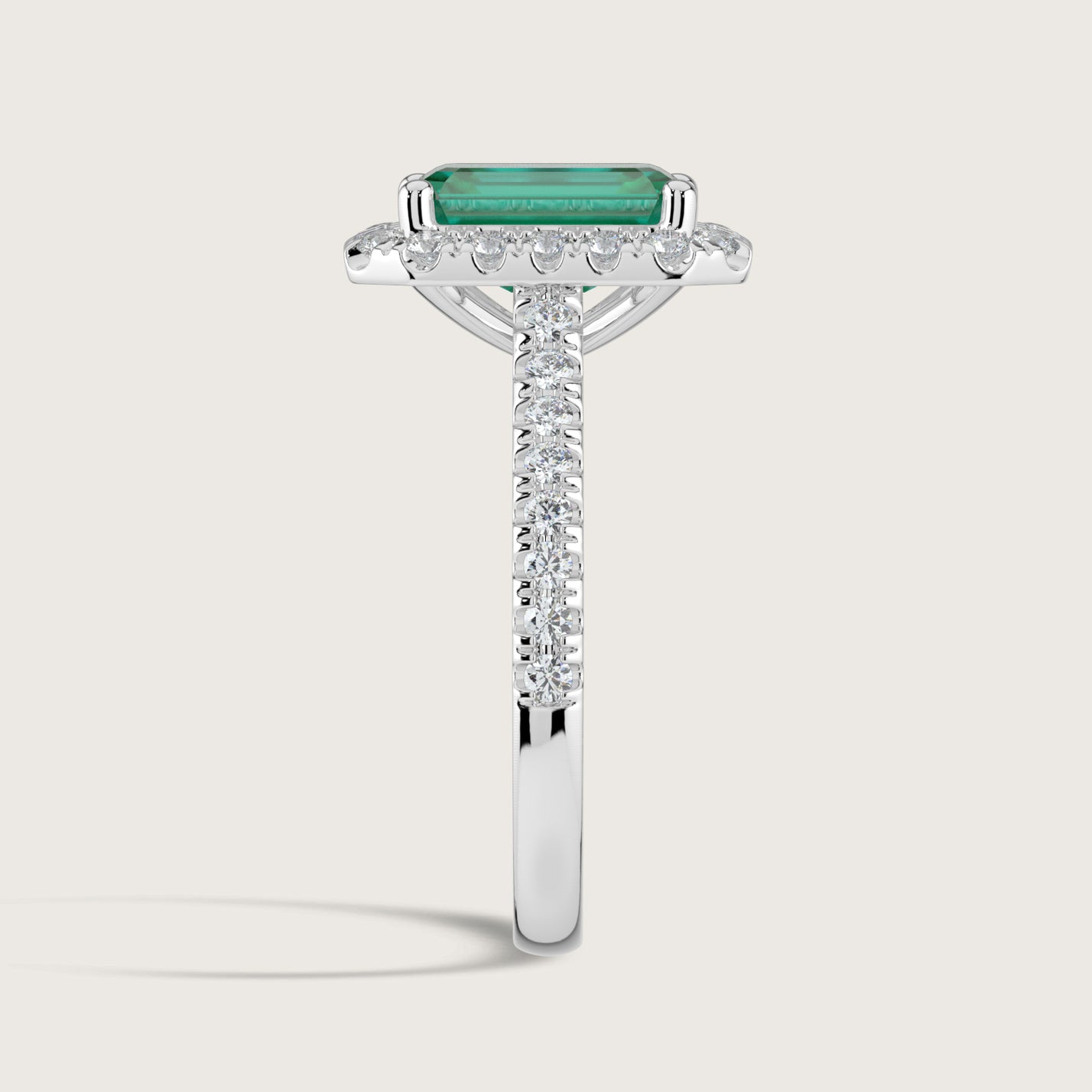 Stella, Emerald Cut Emerald Halo Pavé Ring