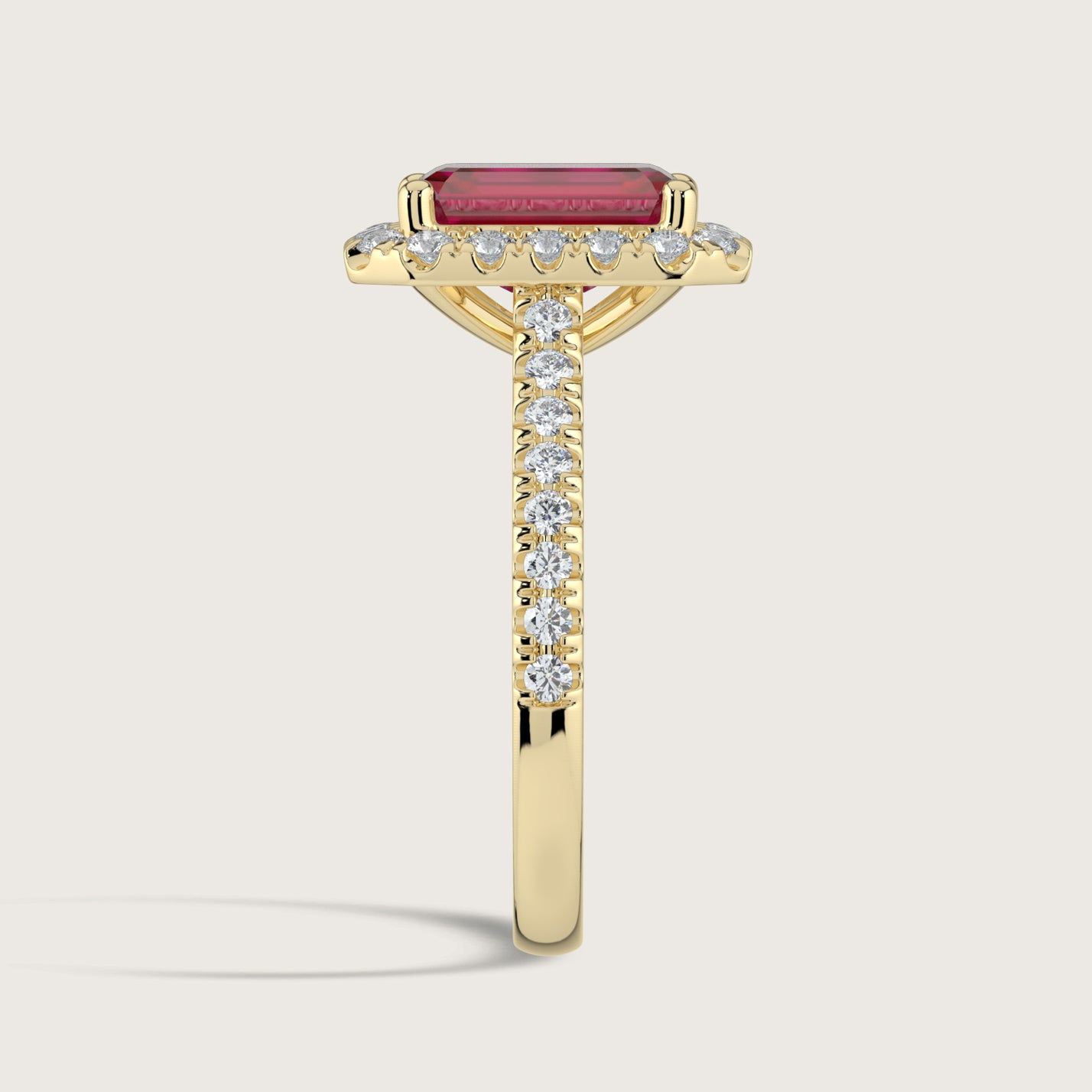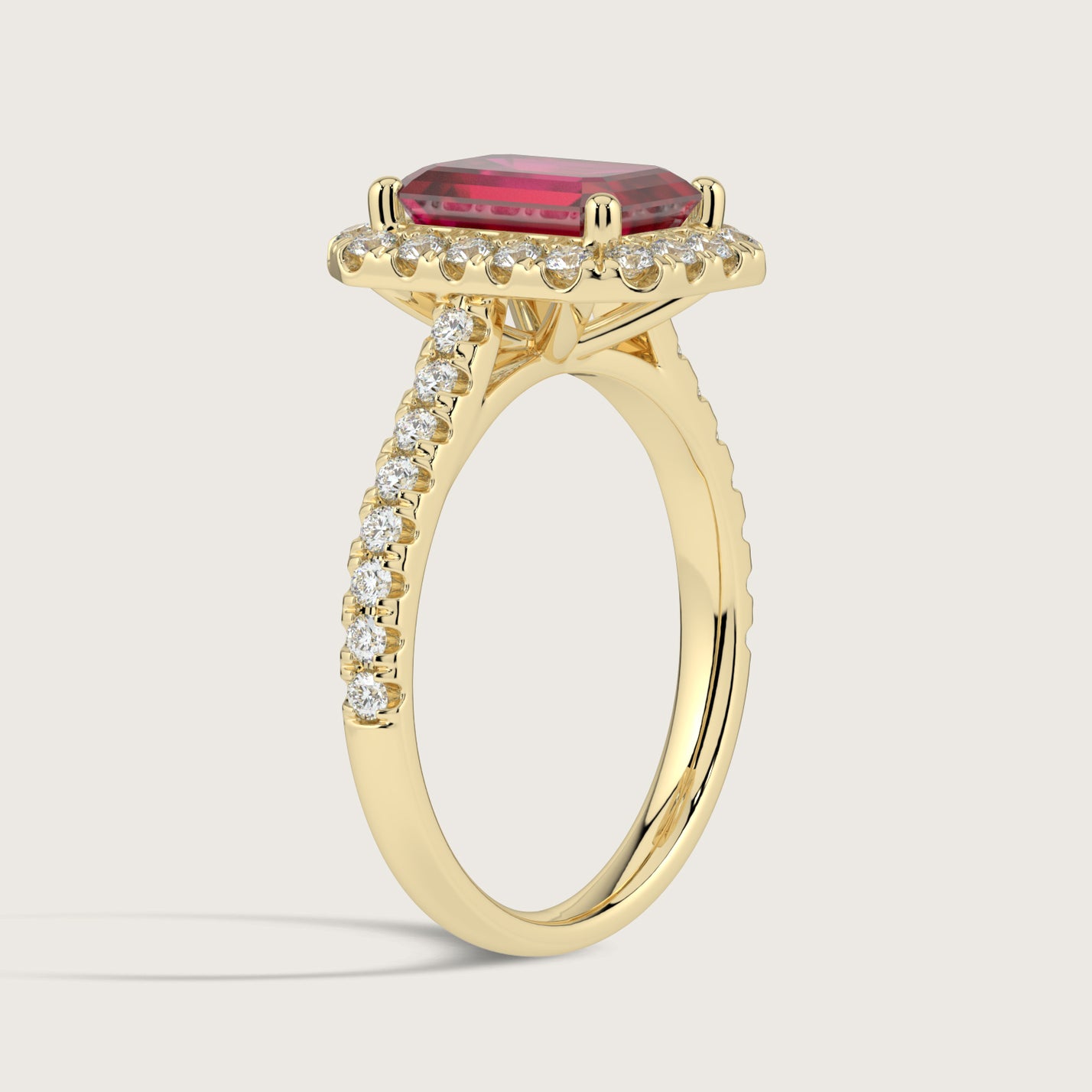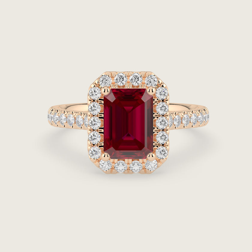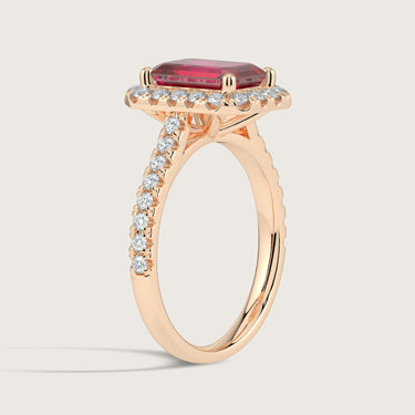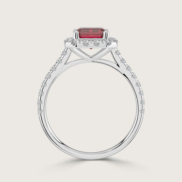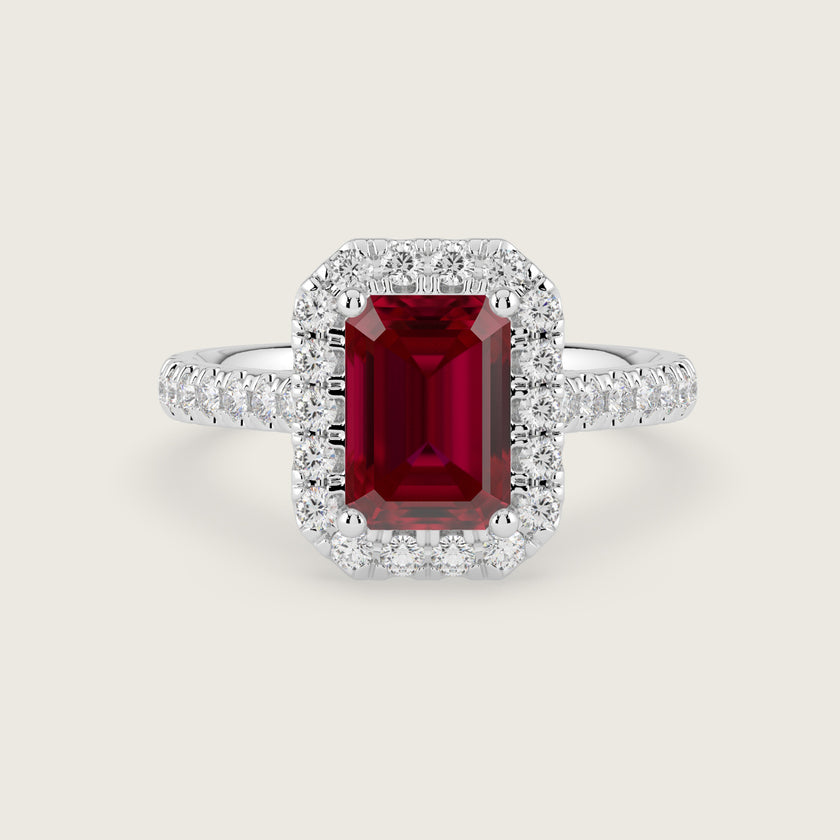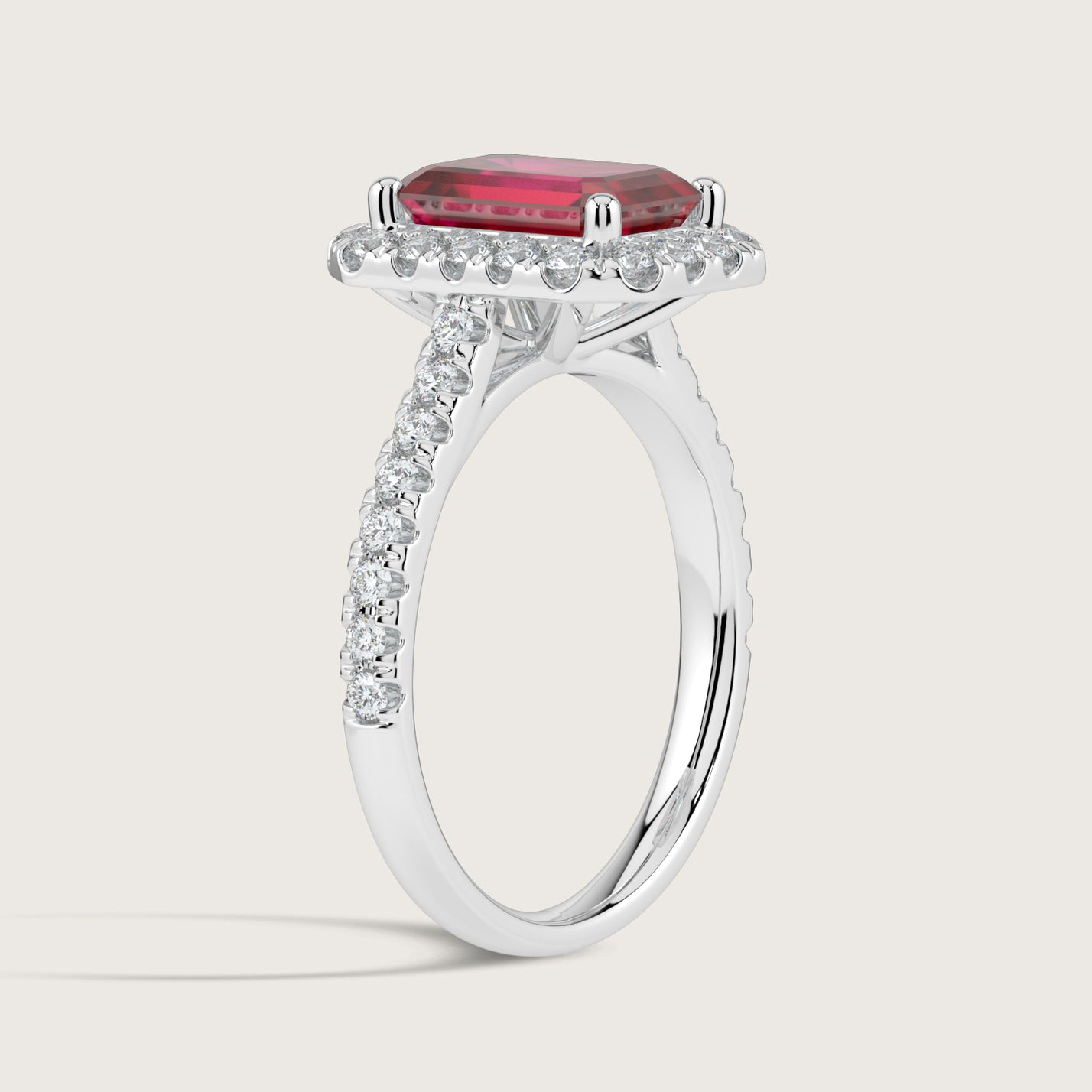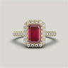 Stella, Emerald Cut Ruby Halo Pavé Ring
