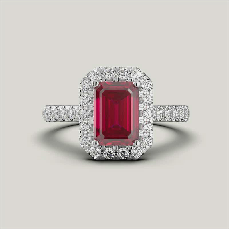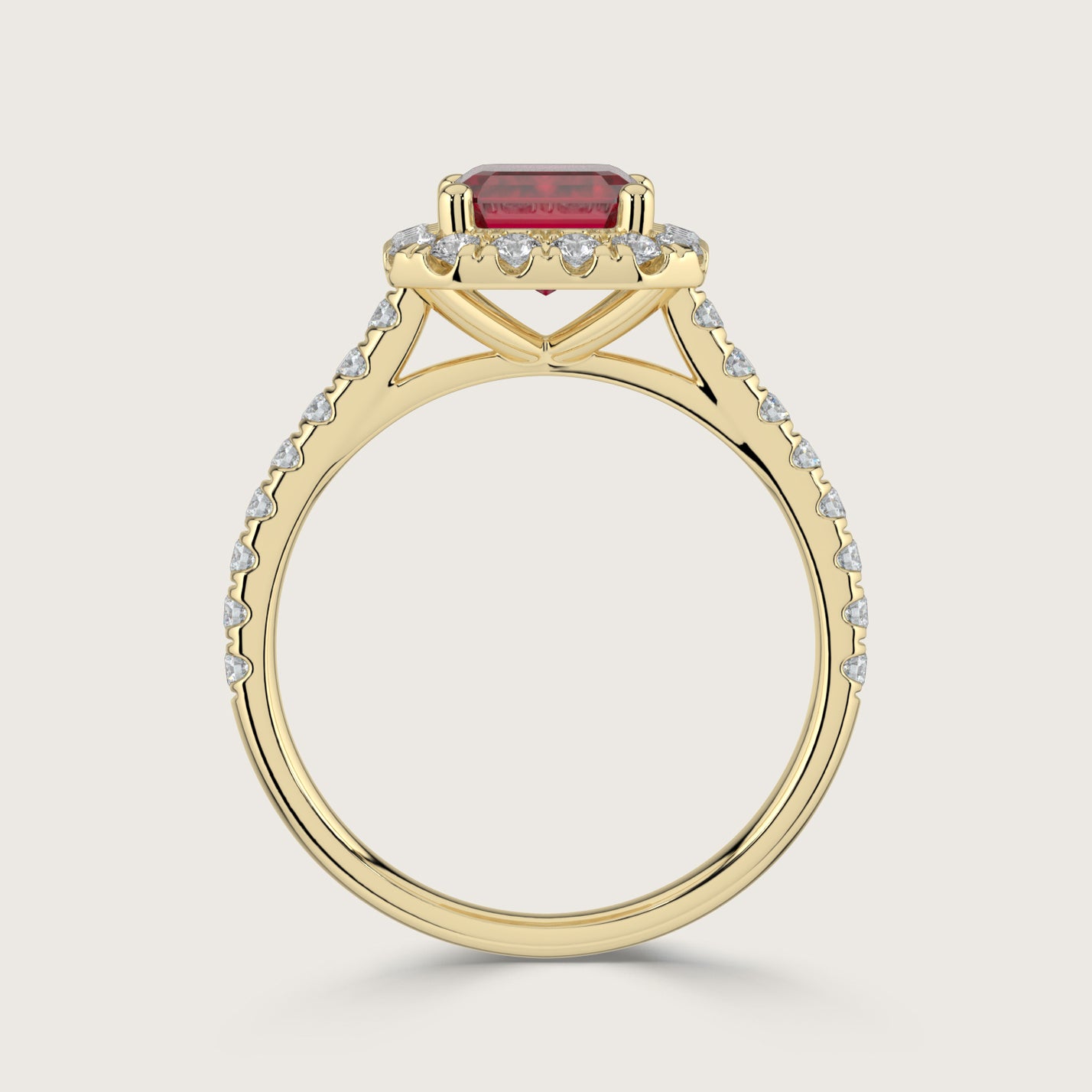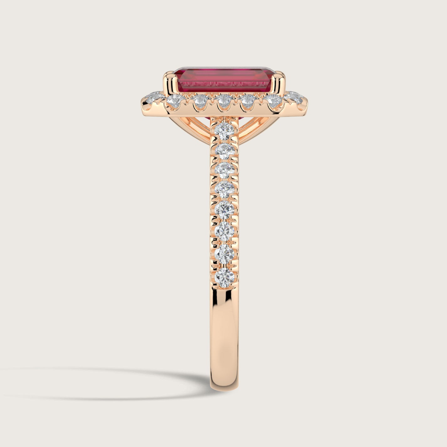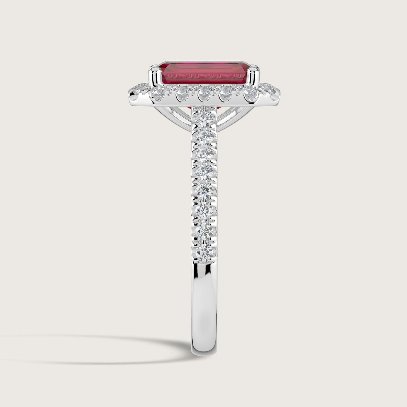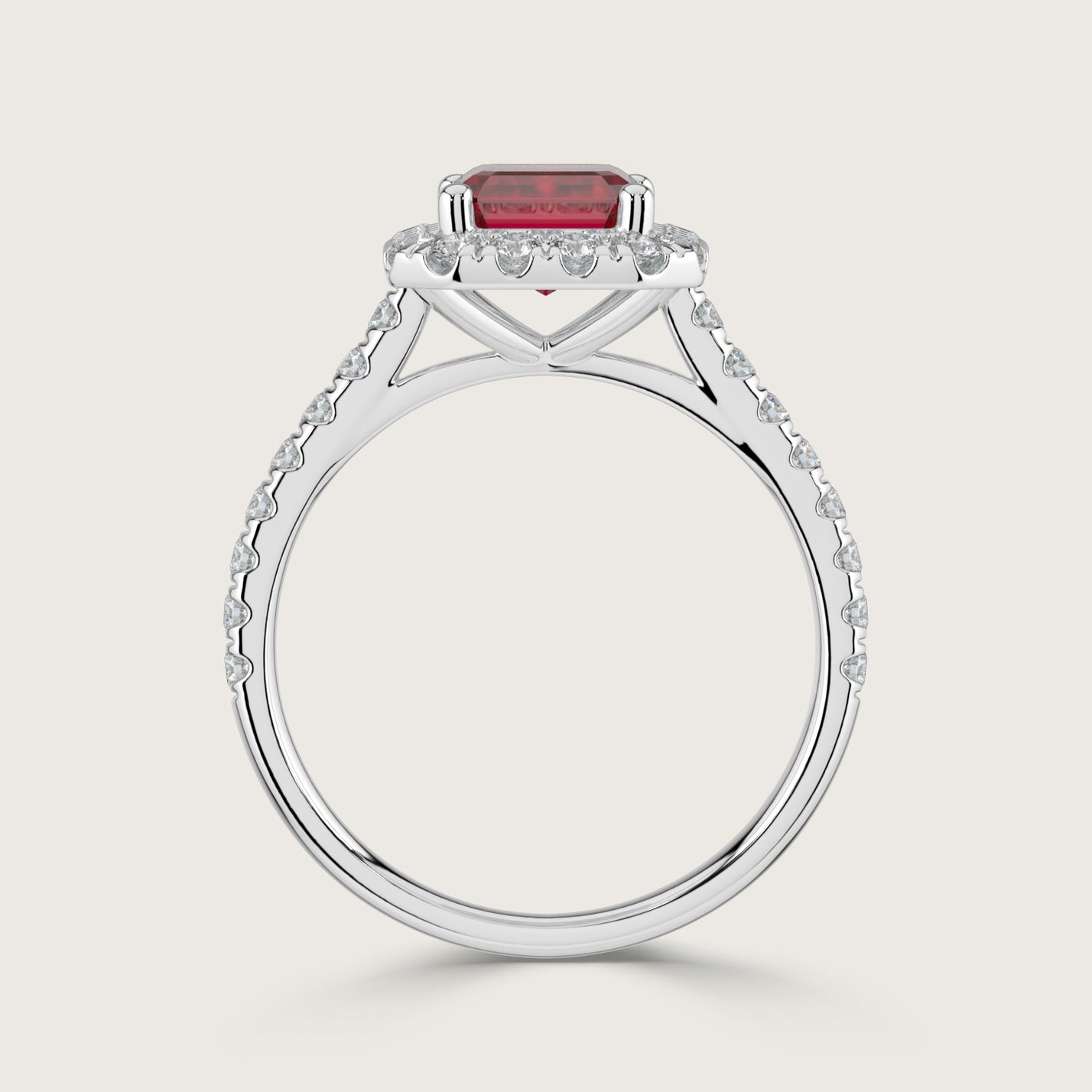 Stella, Emerald Cut Ruby Halo Pavé Ring