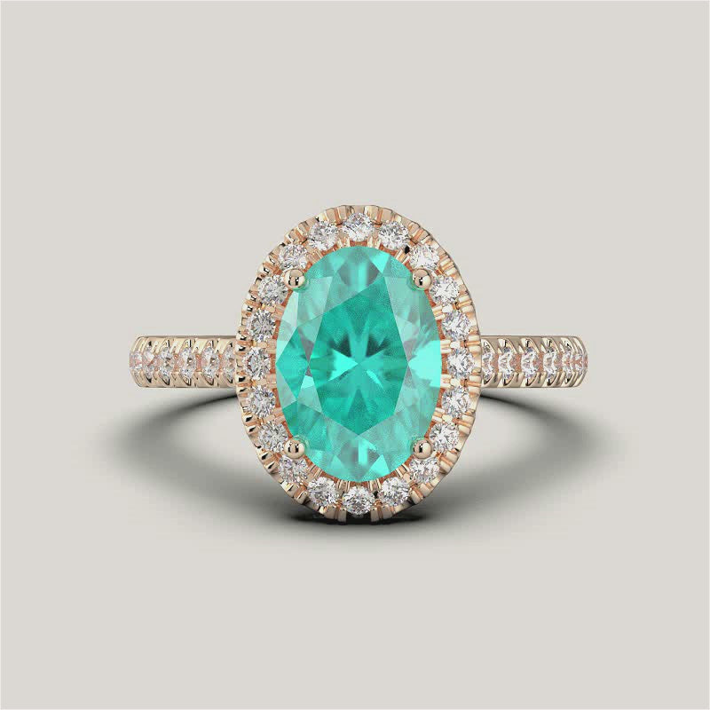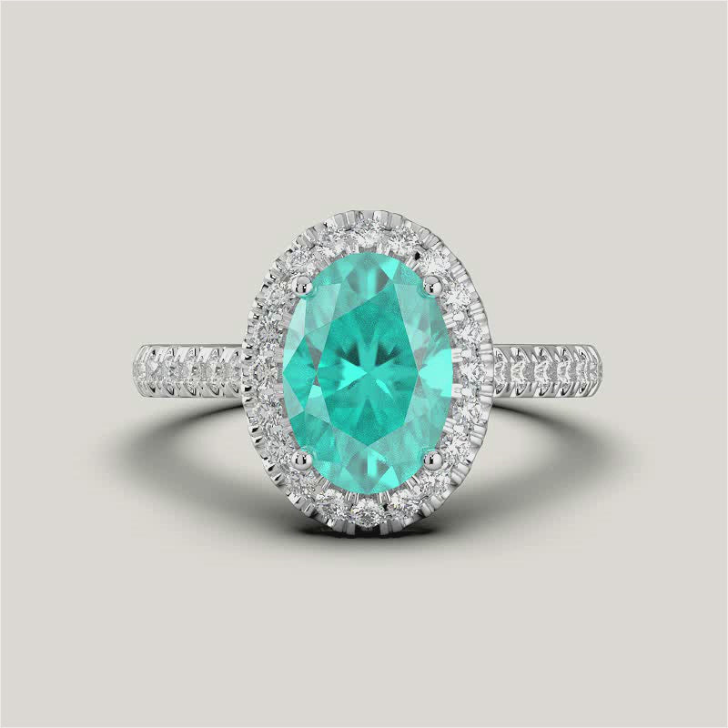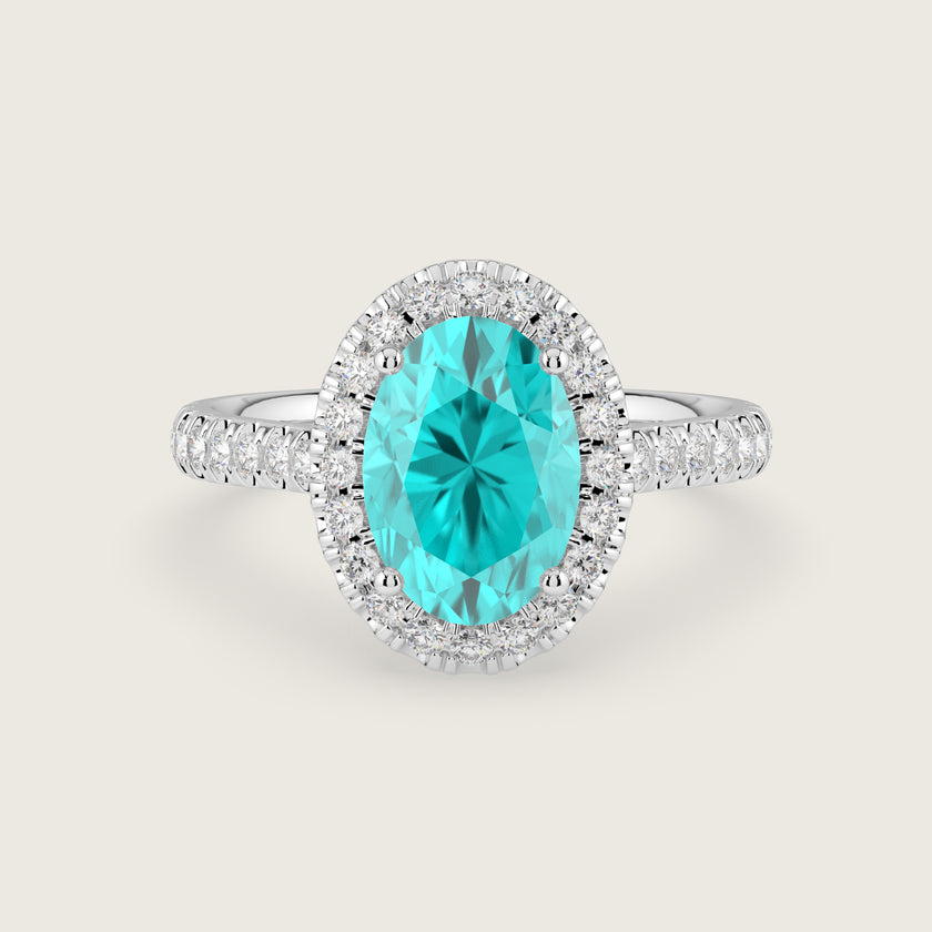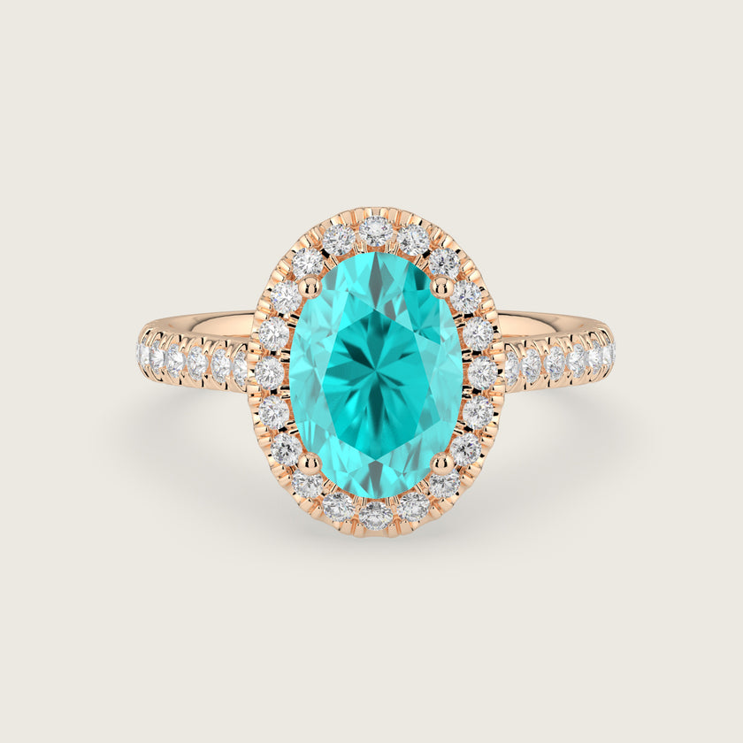 Stella, Oval Cut Paraiba Halo Pavé Ring