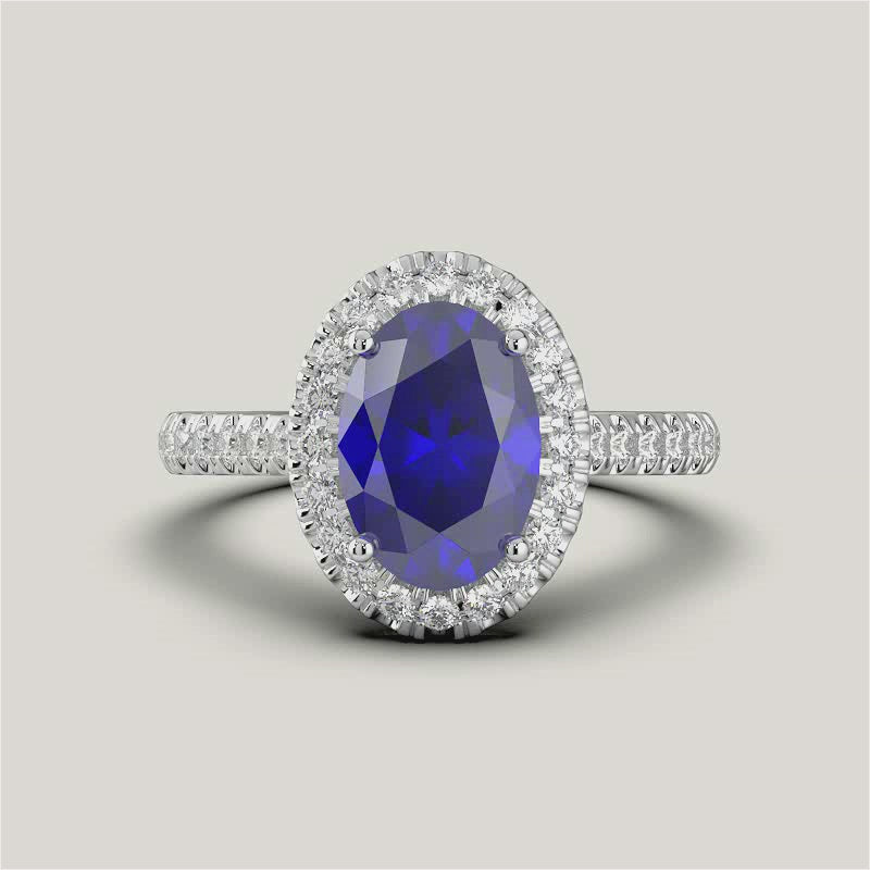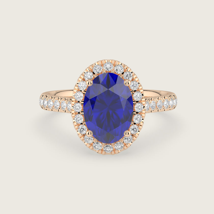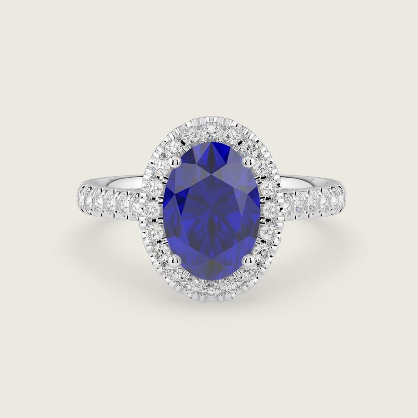 Stella, Oval Cut Sapphire Halo Pavé Ring