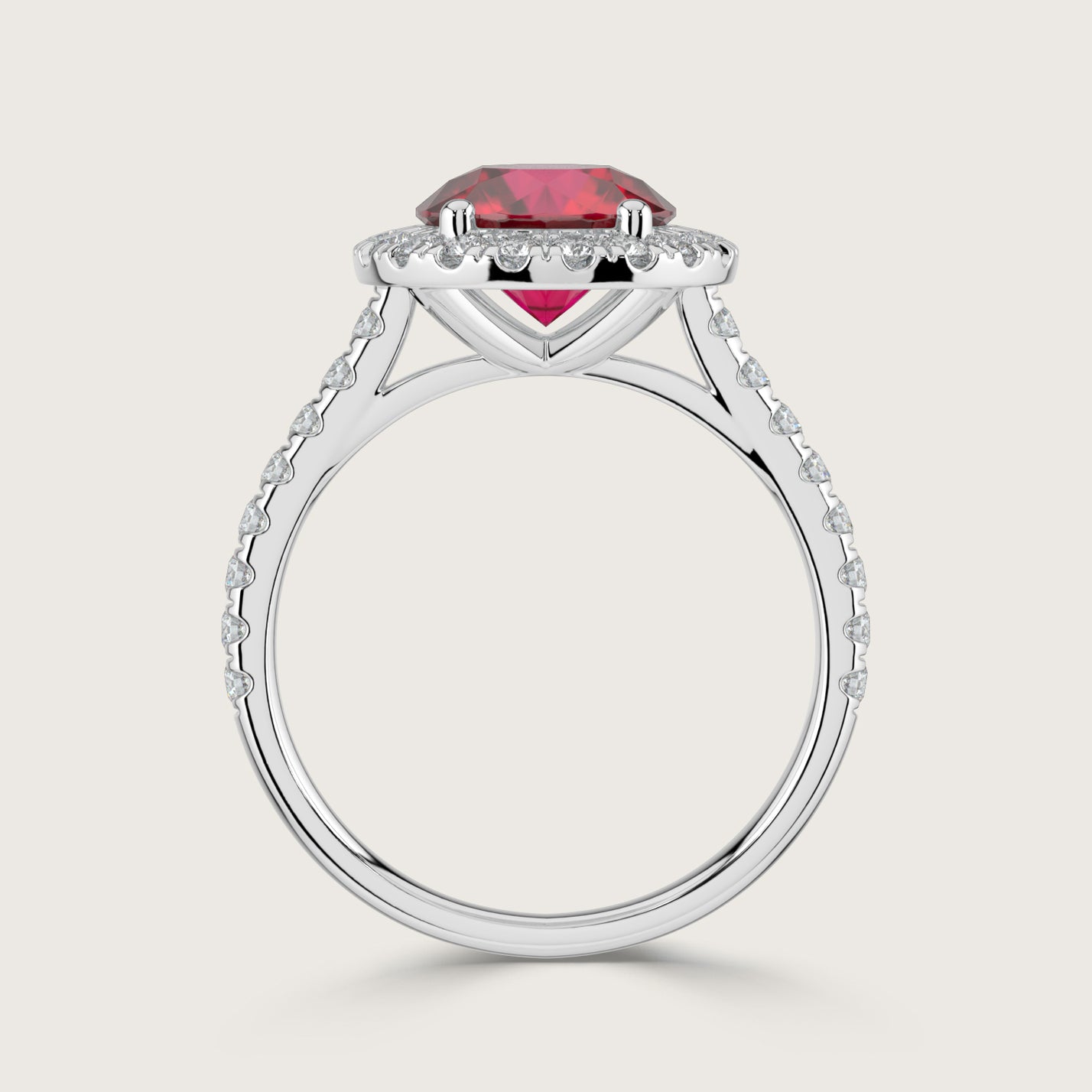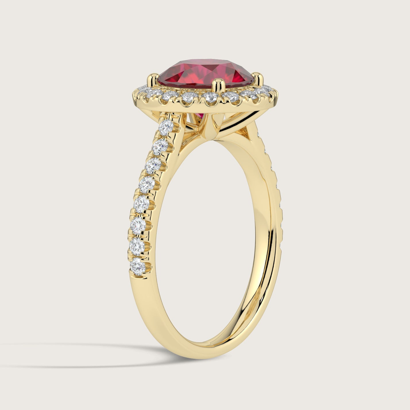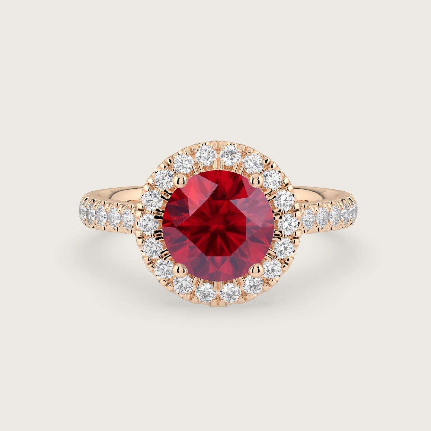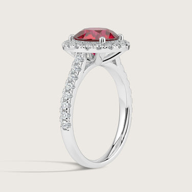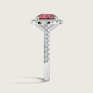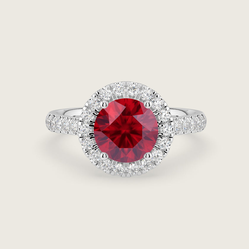 Stella, Round Brilliant Ruby Halo Pavé Ring
