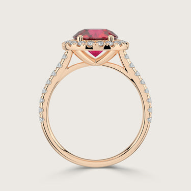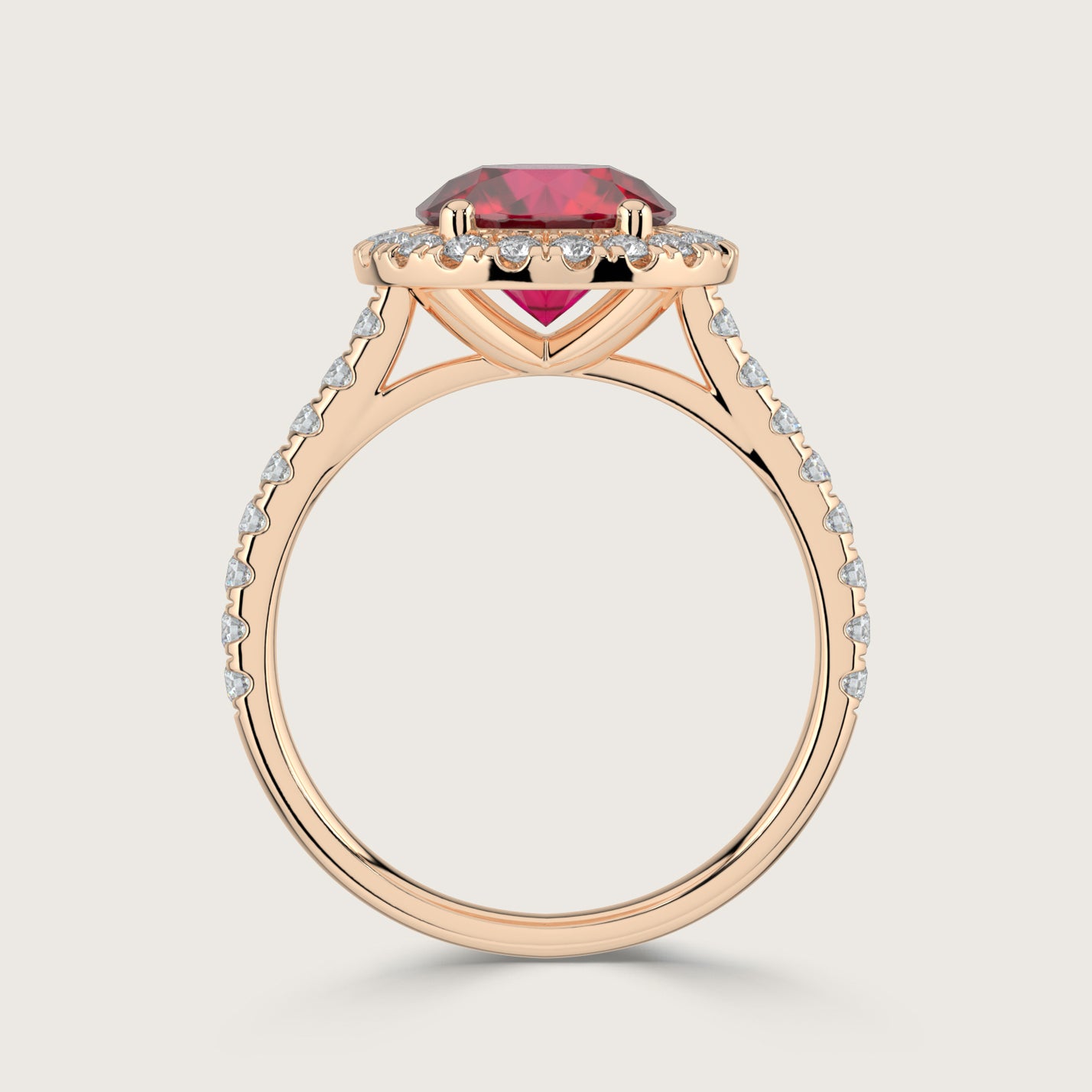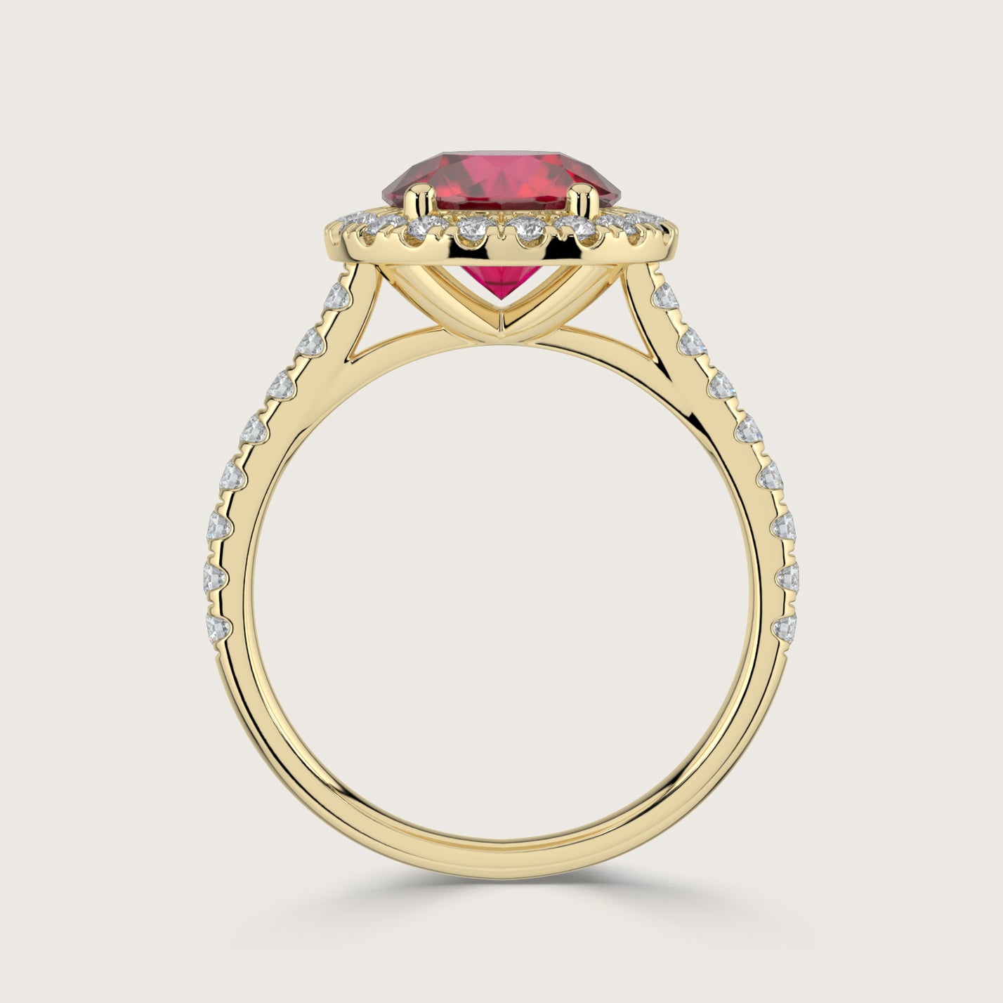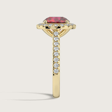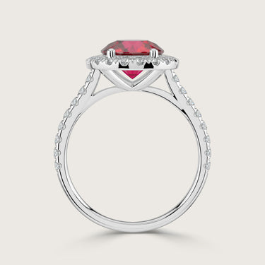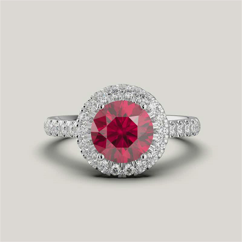 Stella, Round Brilliant Ruby Halo Pavé Ring