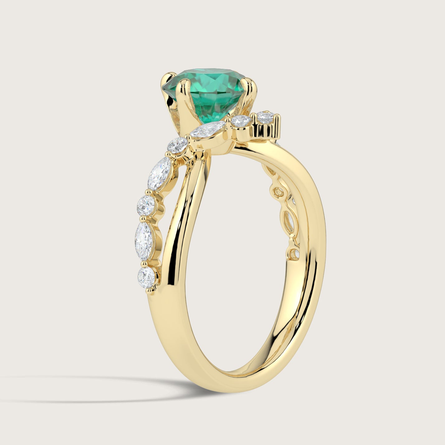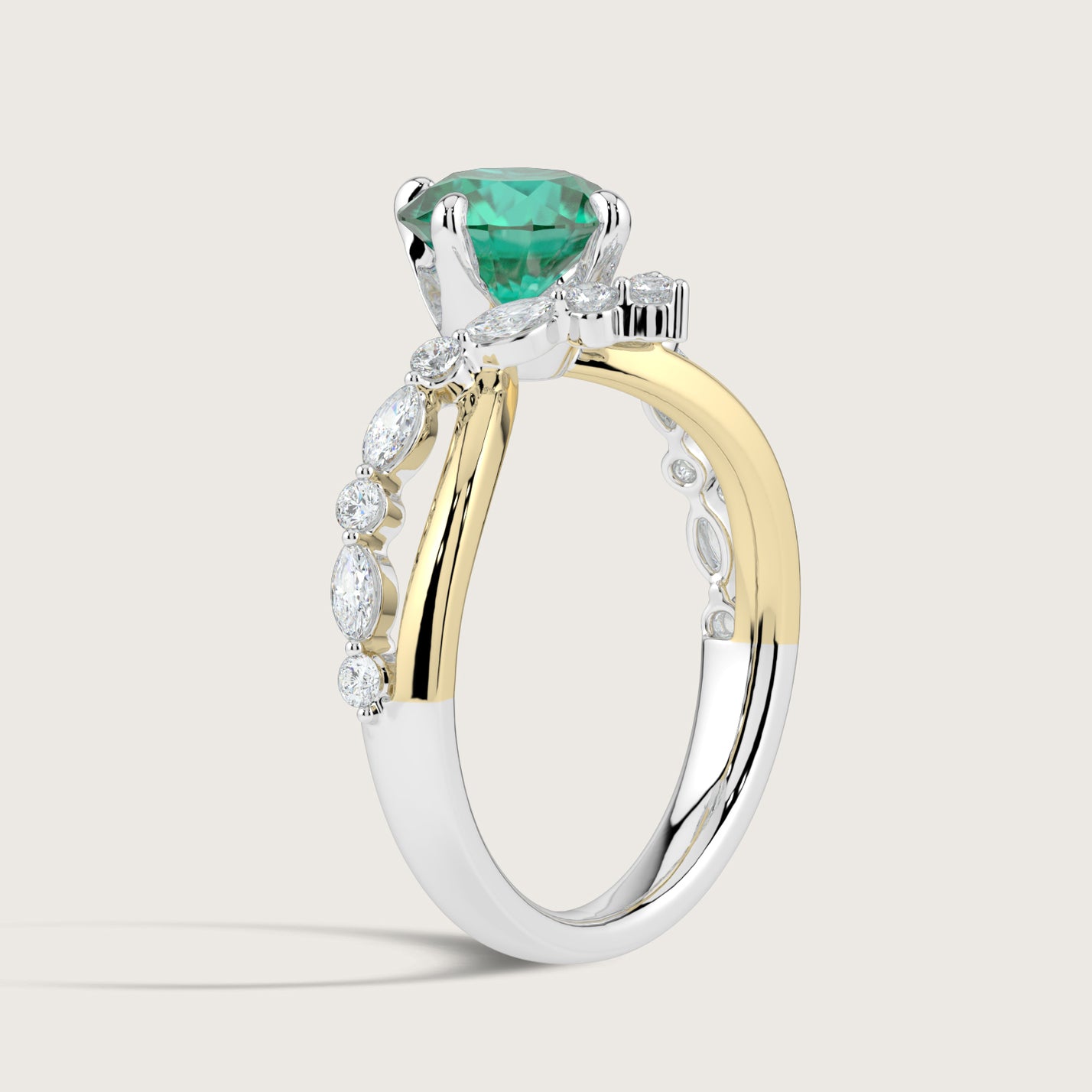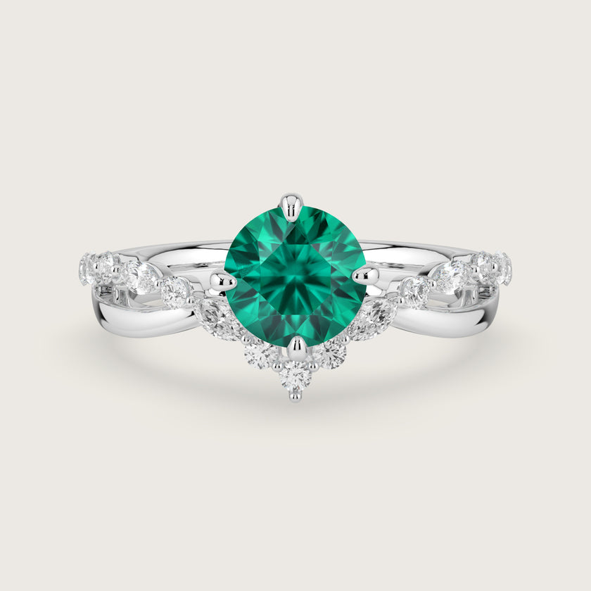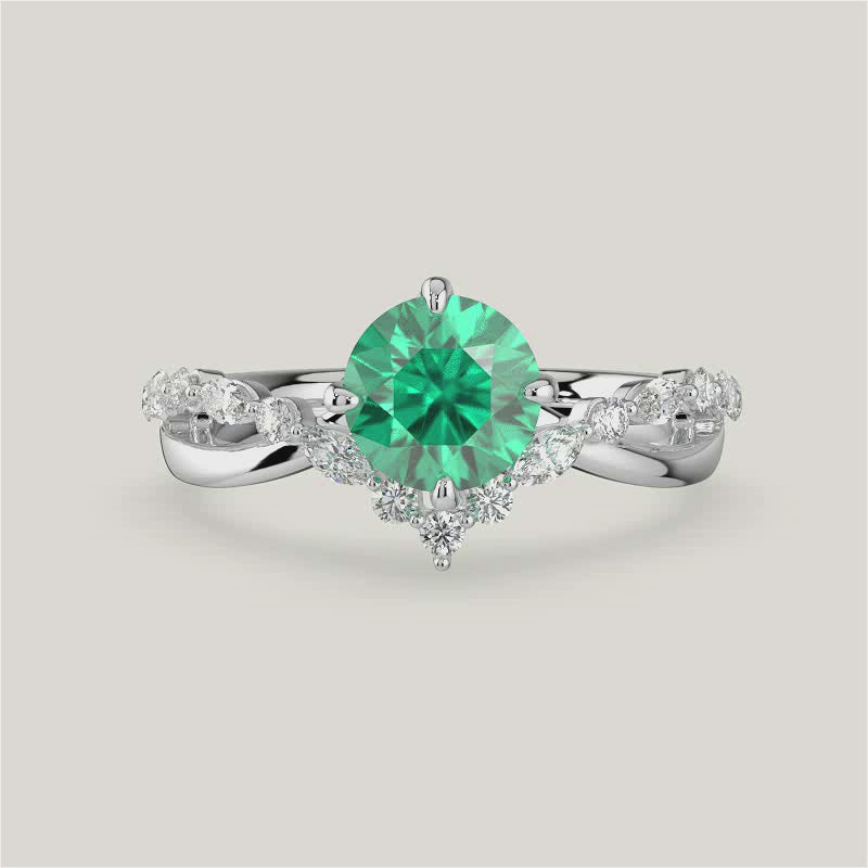 The One, Round Brilliant Emerald Ring with V-shaped Twist Band
