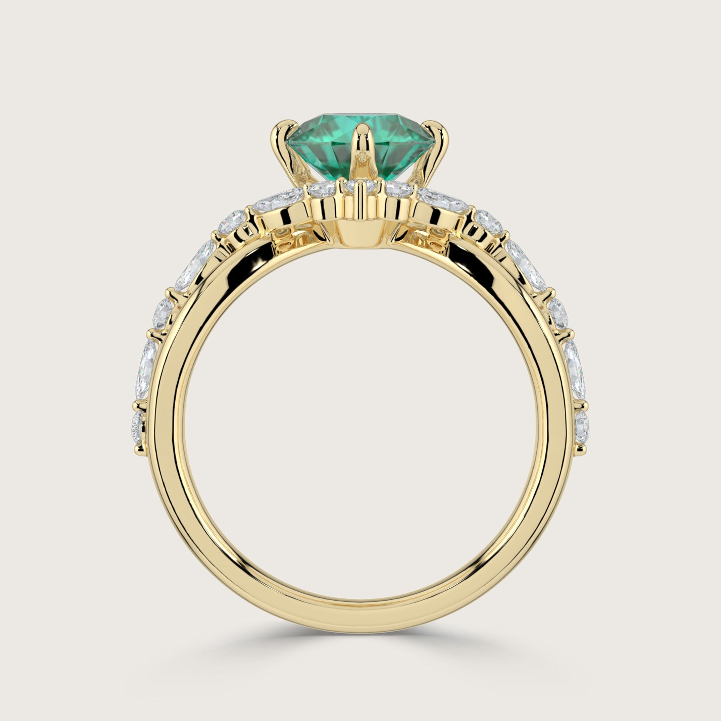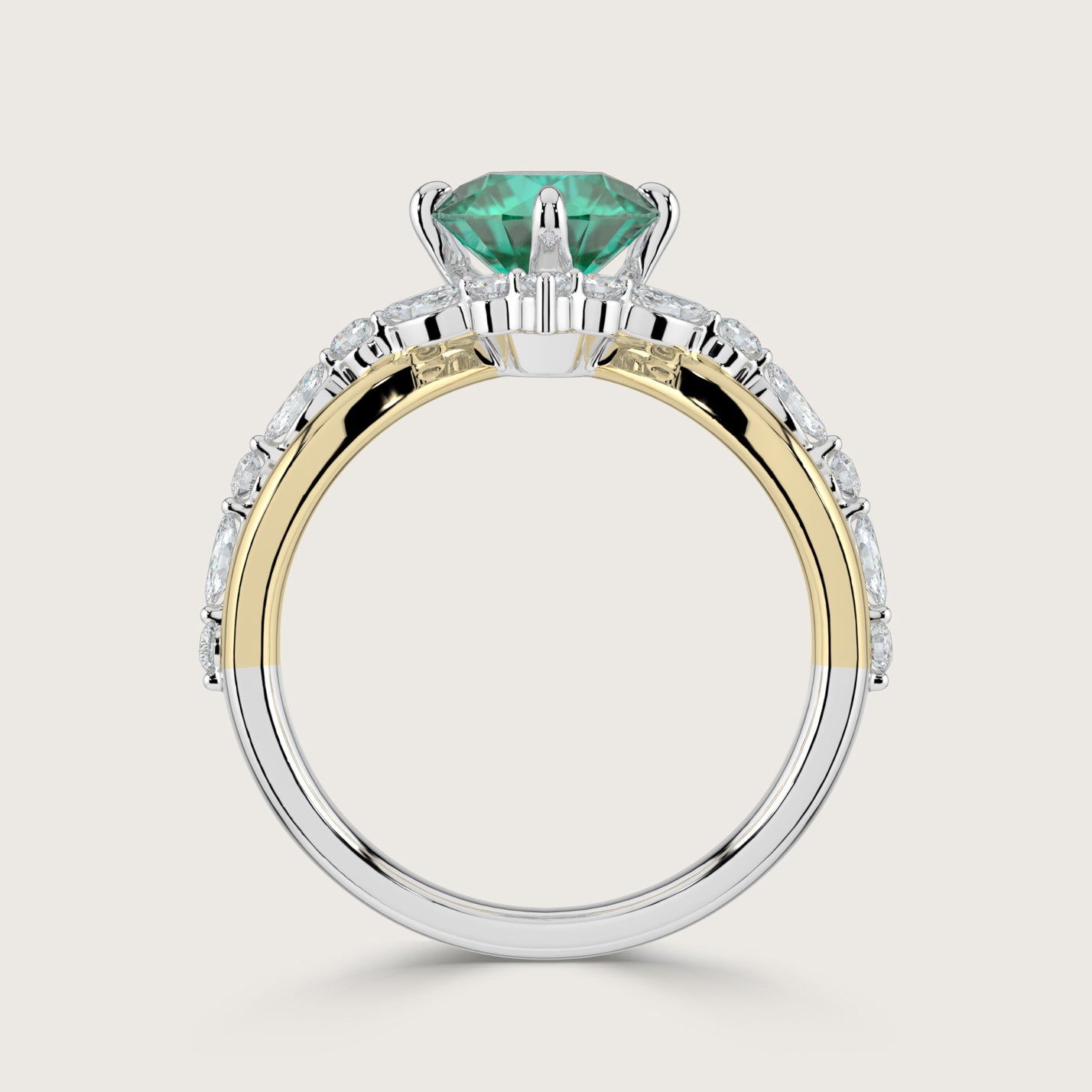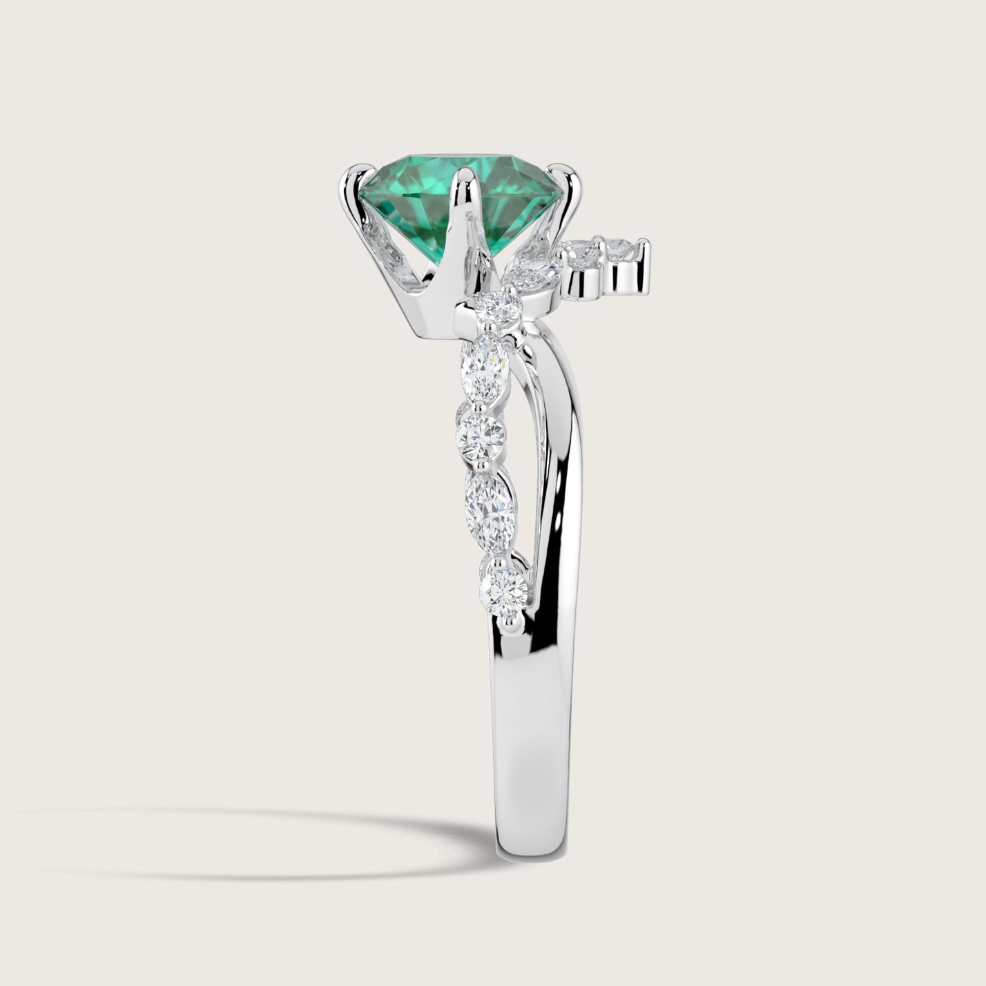 The One, Round Brilliant Emerald Ring with V-shaped Twist Band