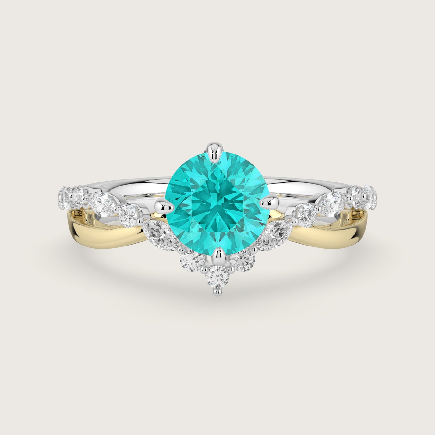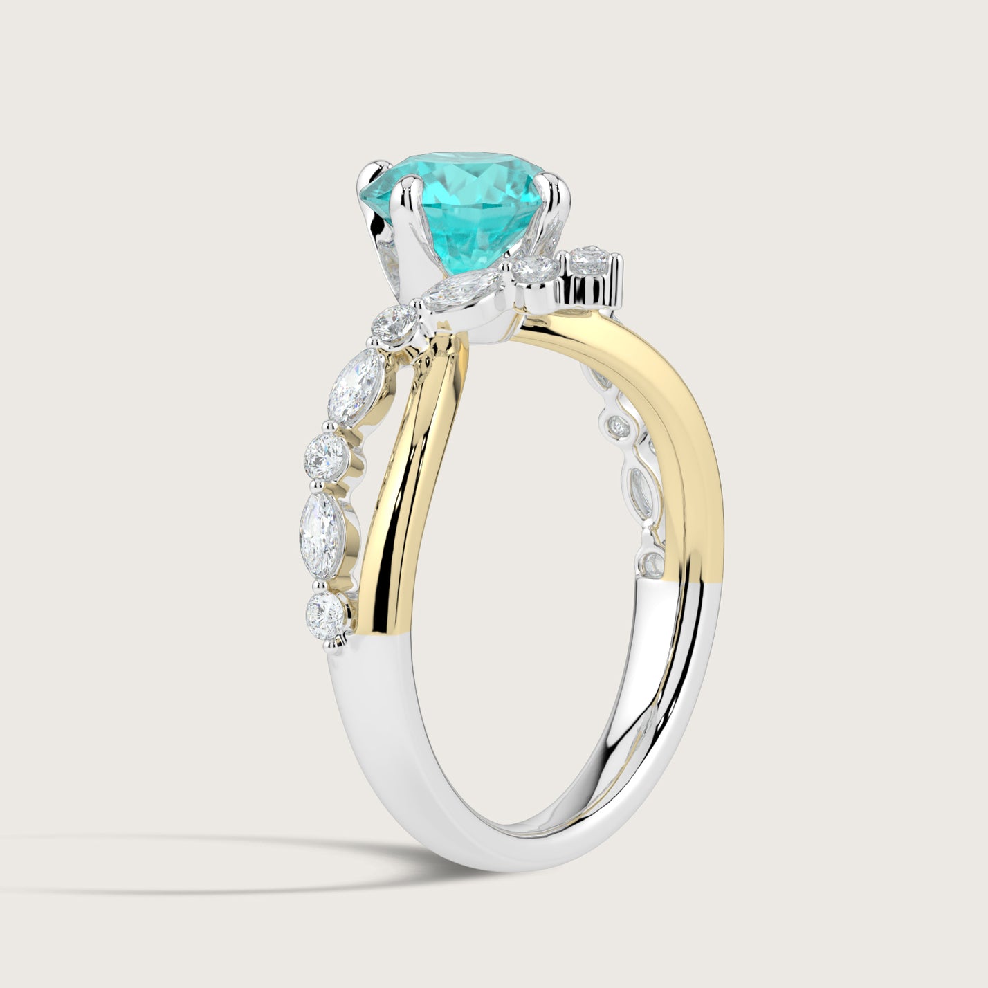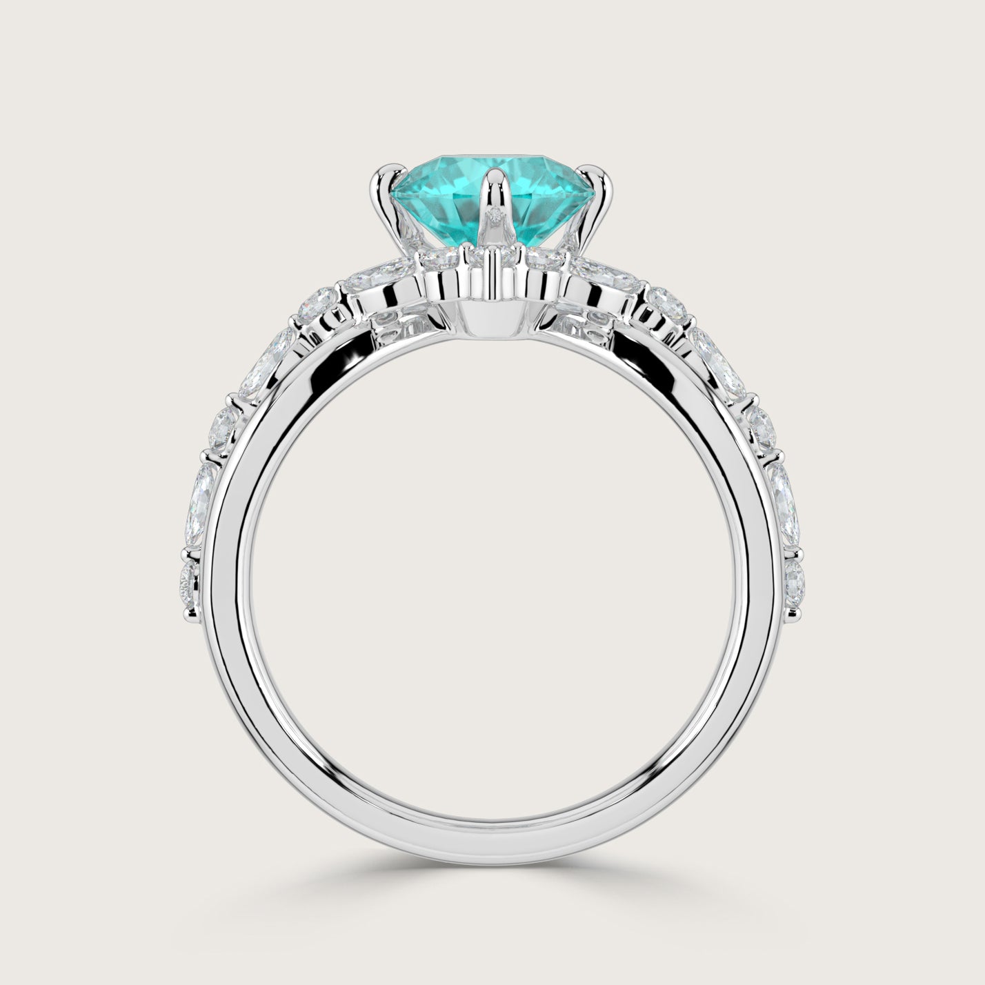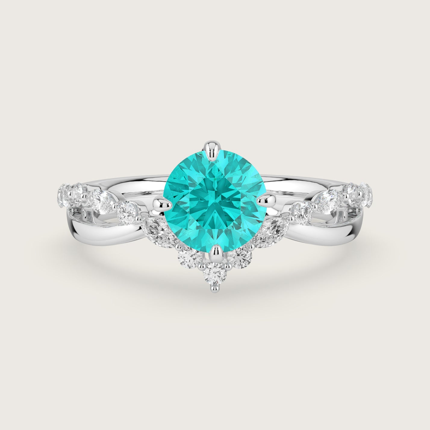 The One, Round Brilliant Paraiba Ring with V-shaped Twist Band