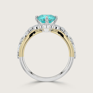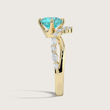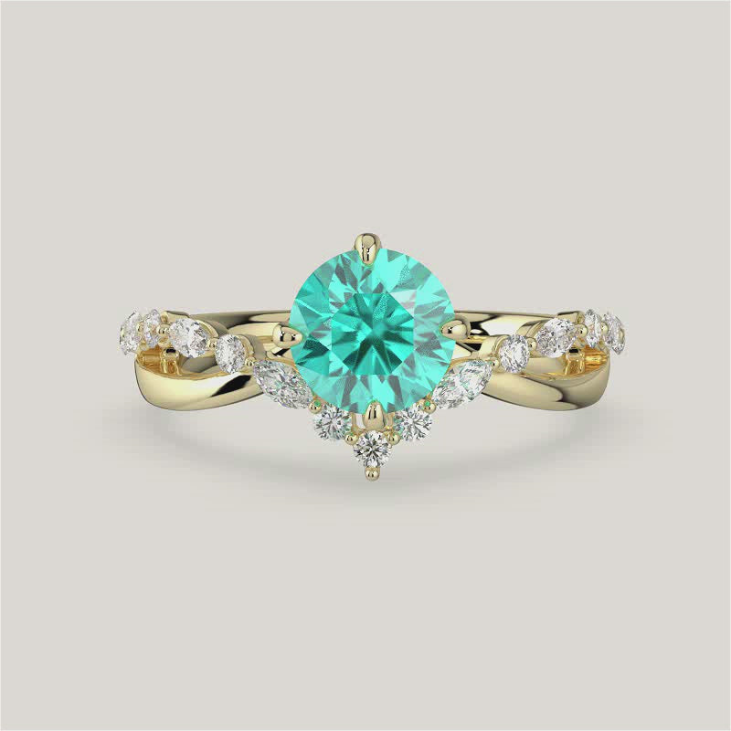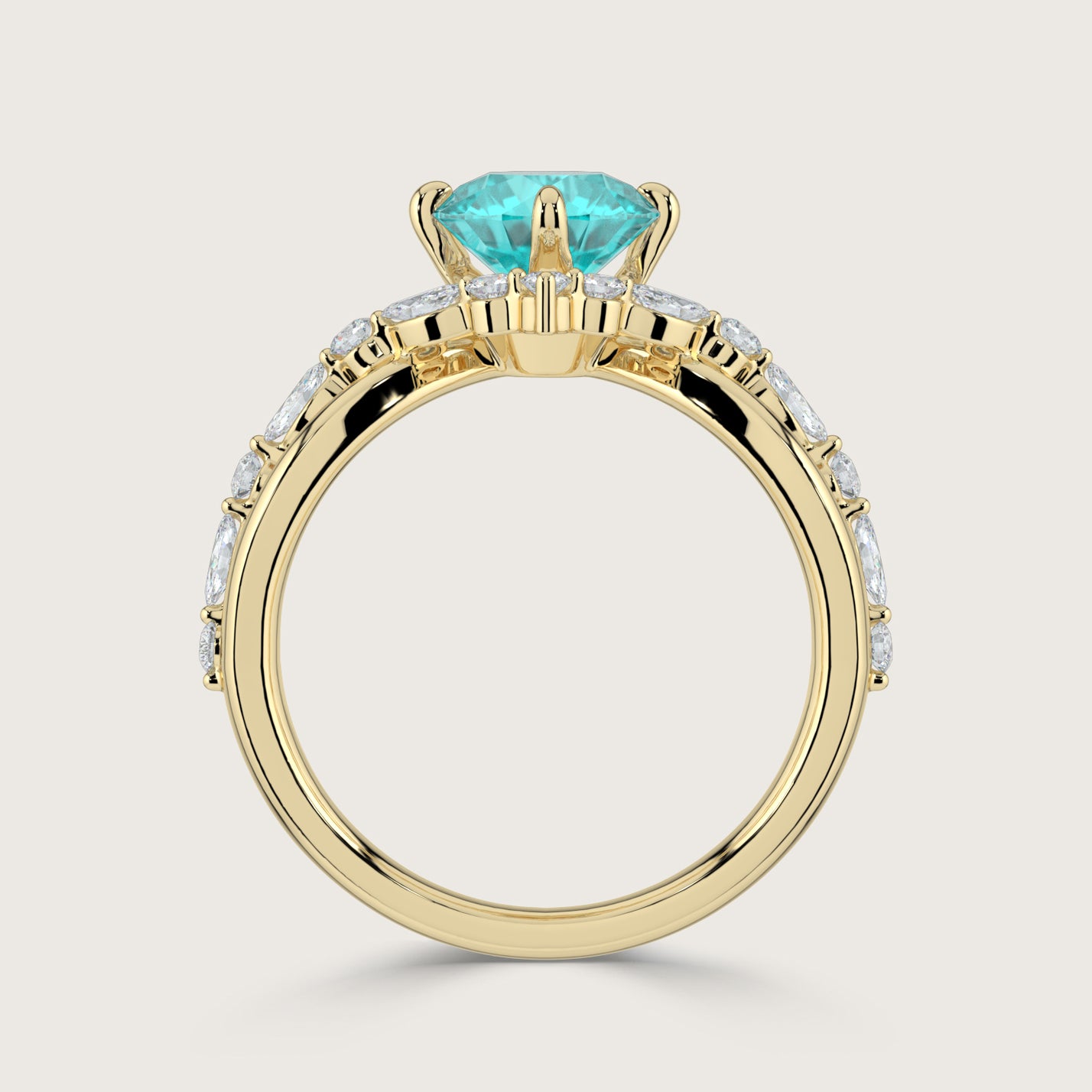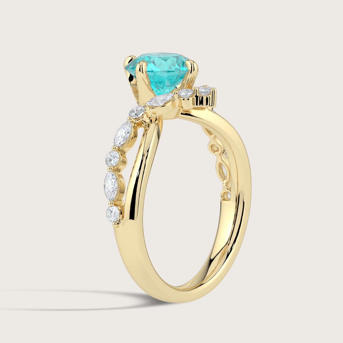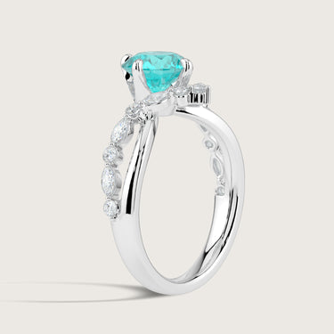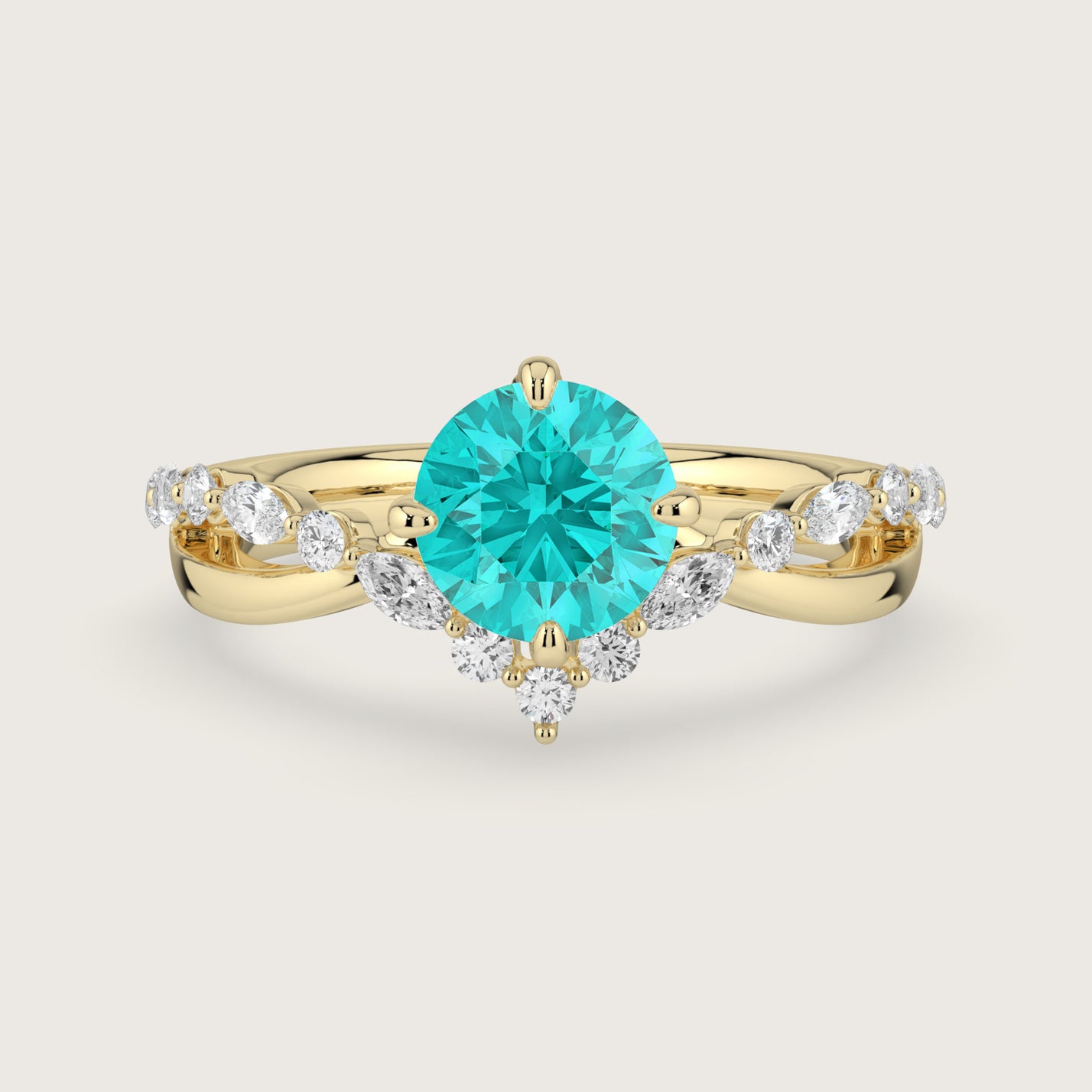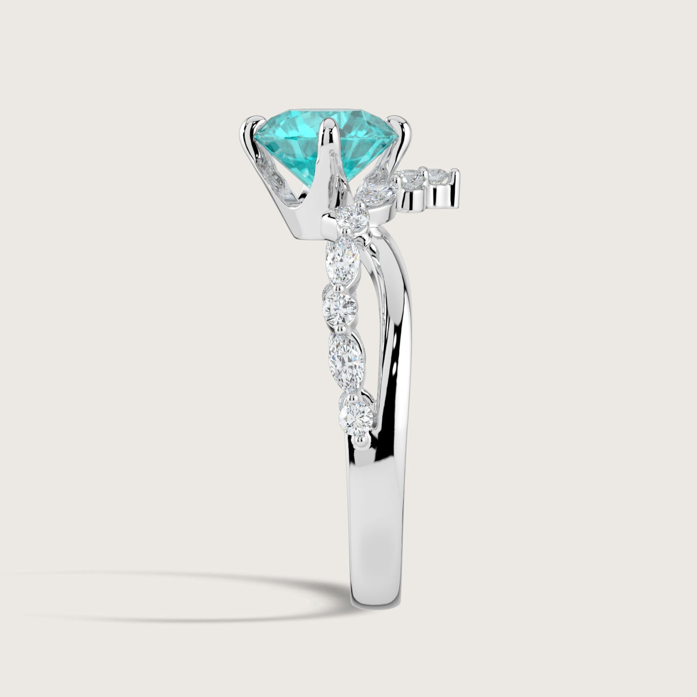 The One, Round Brilliant Paraiba Ring with V-shaped Twist Band