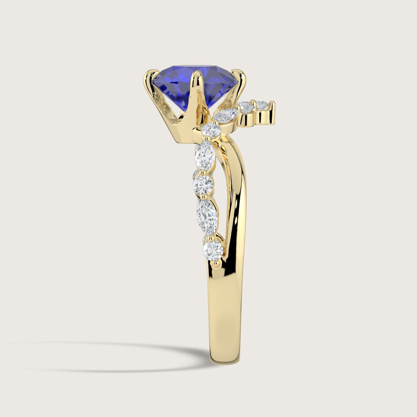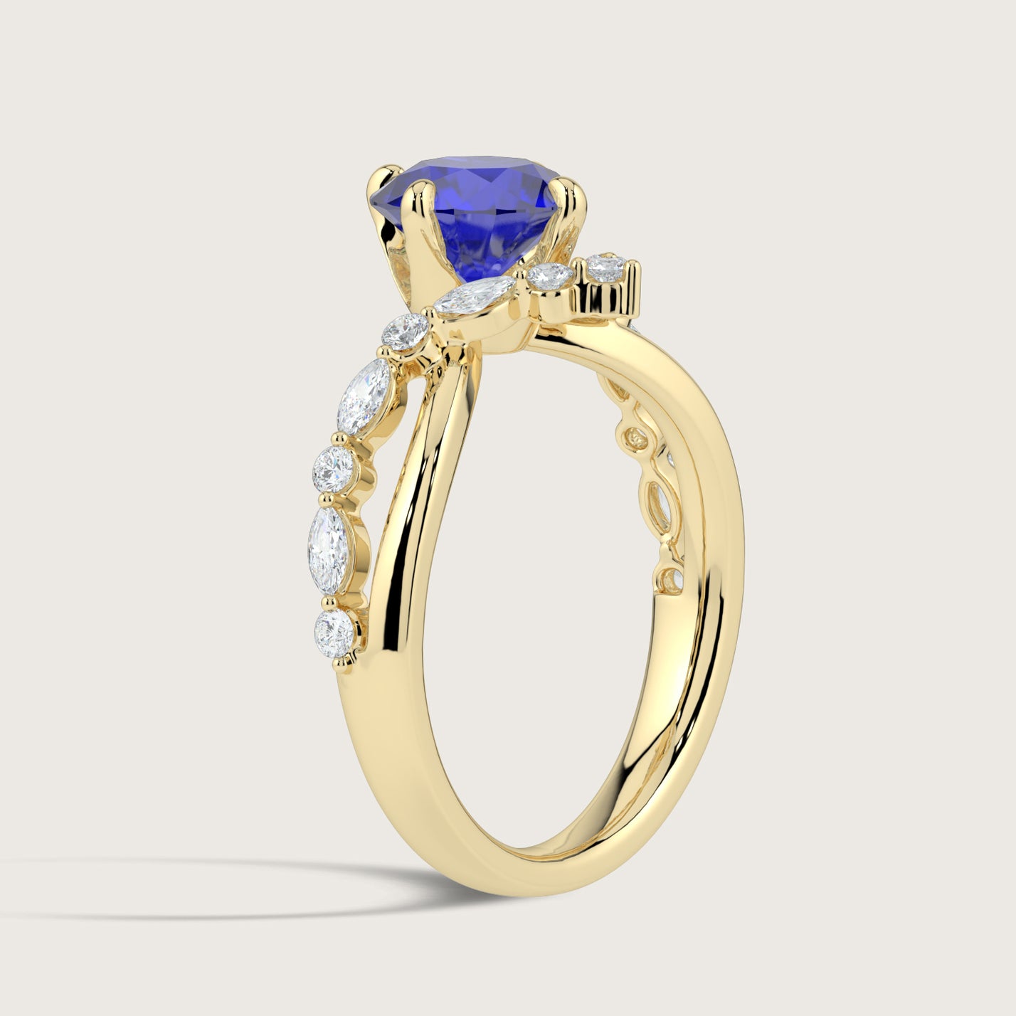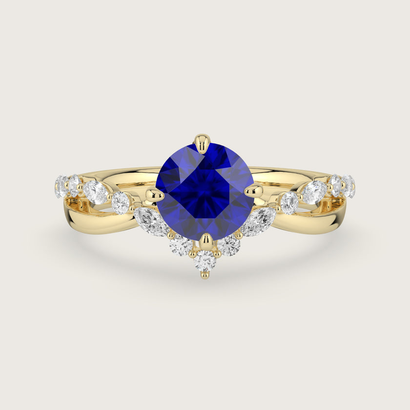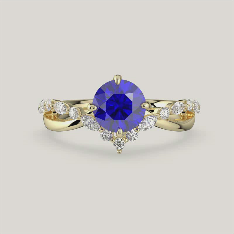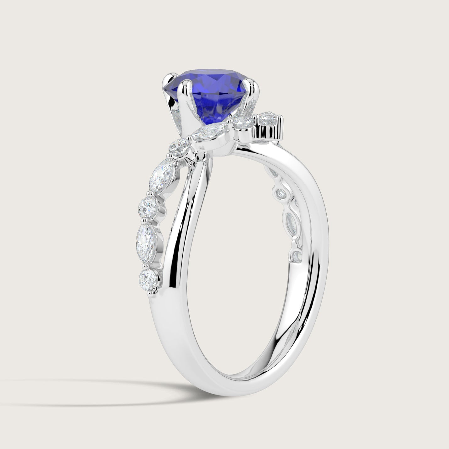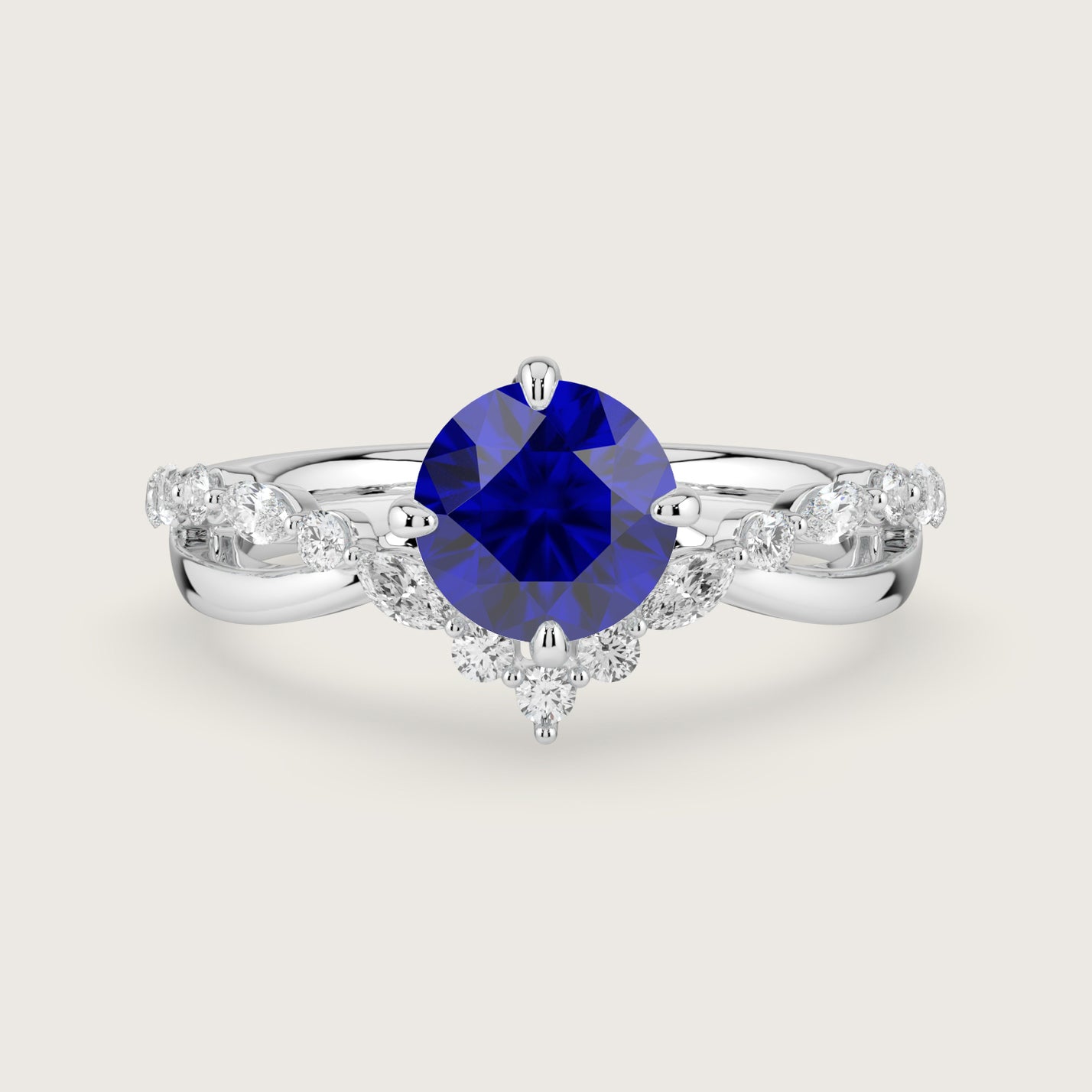 The One, Round Brilliant Sapphire Ring with V-shaped Twist Band