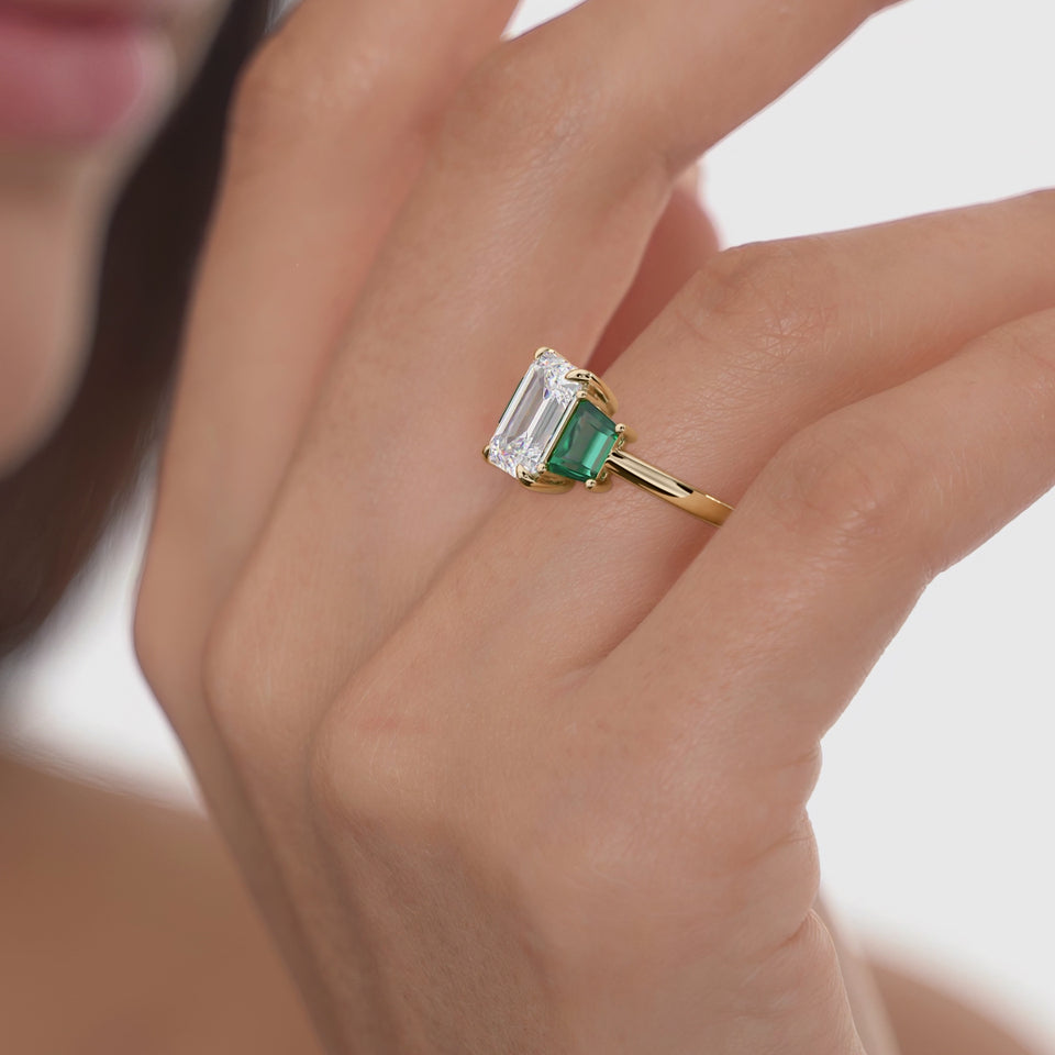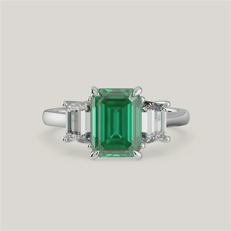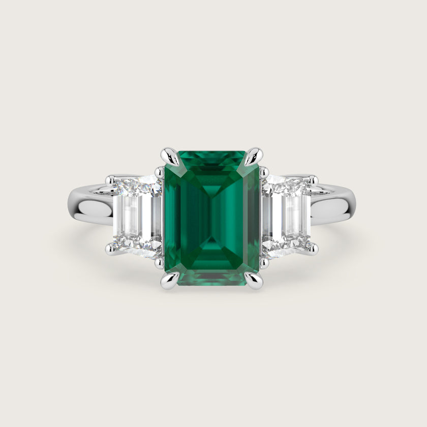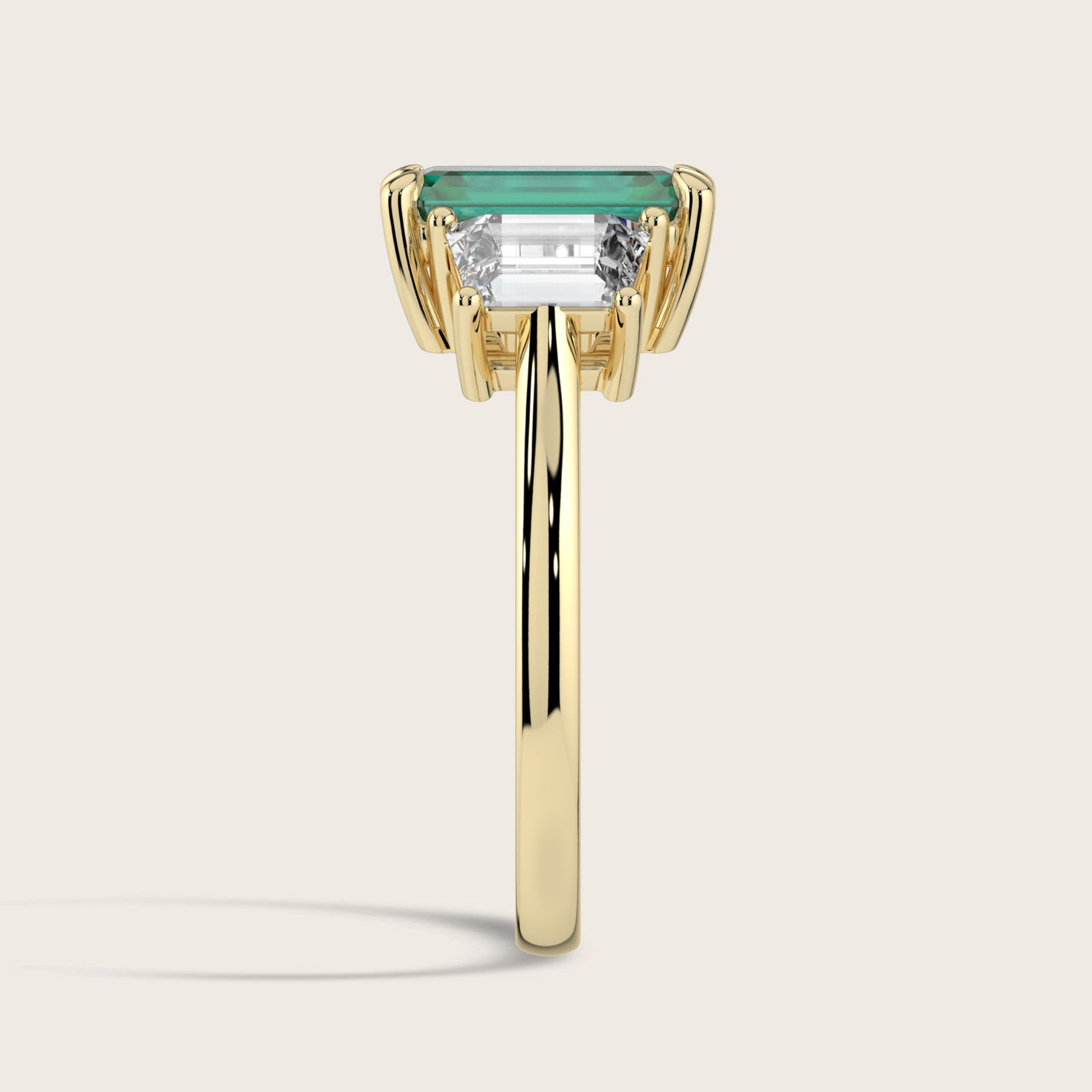 The Vows, Vintage Emerald Cut Emerald Trilogy Ring