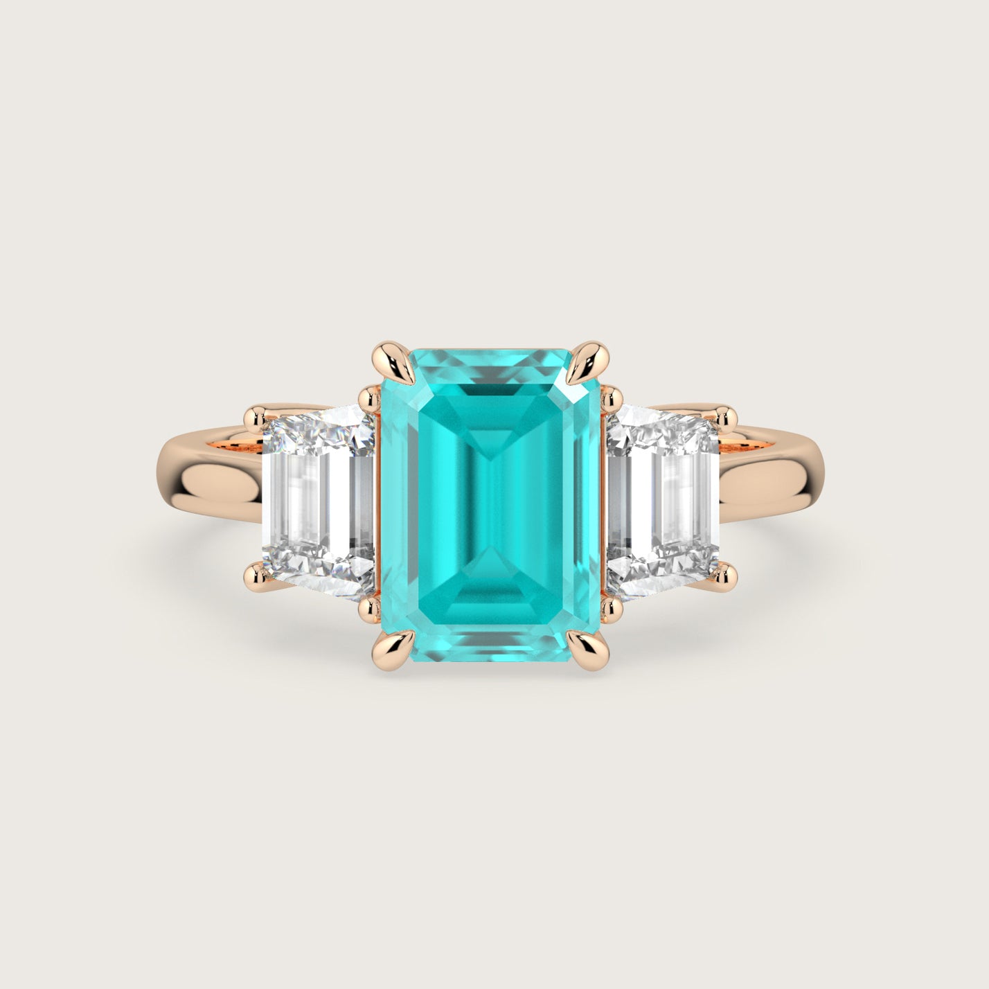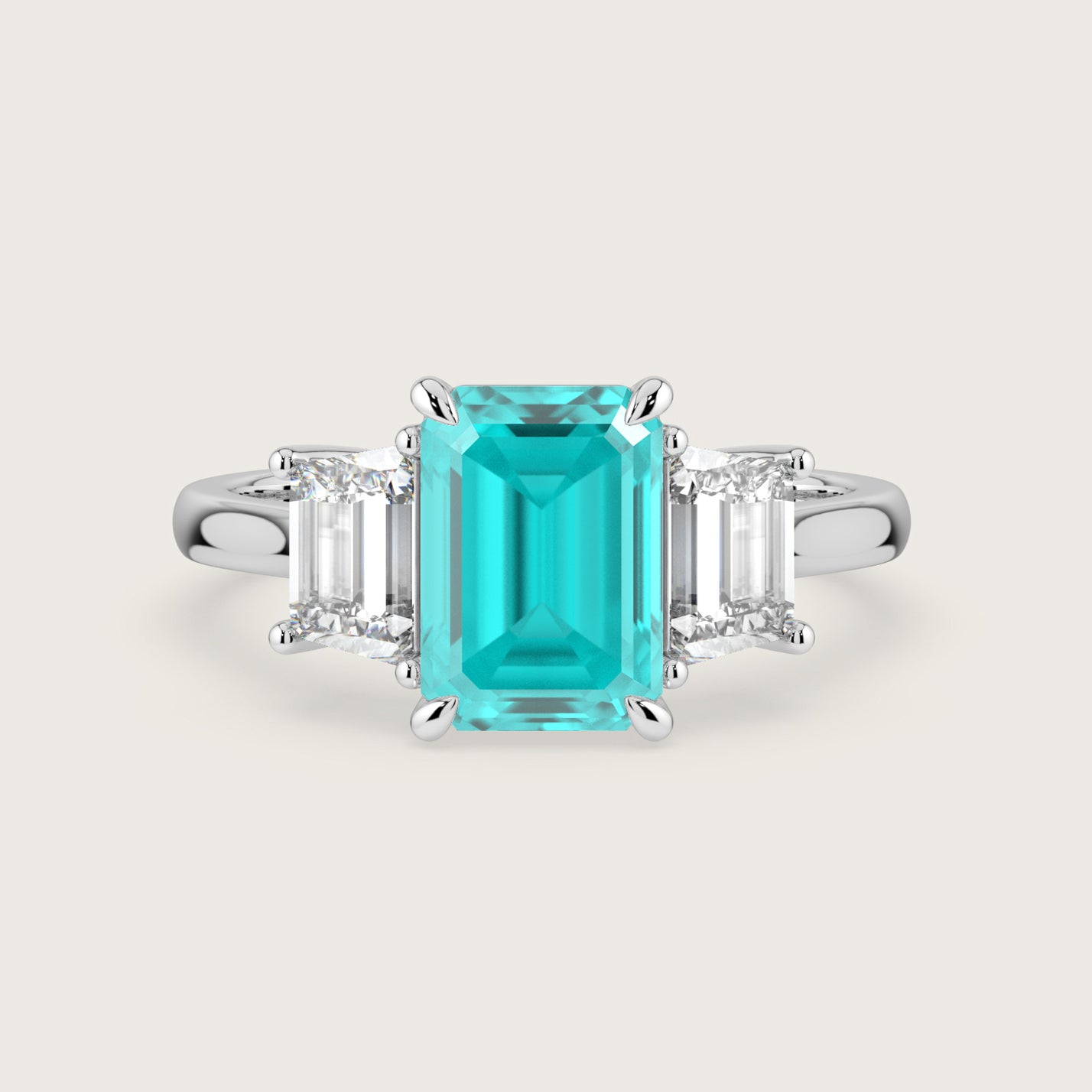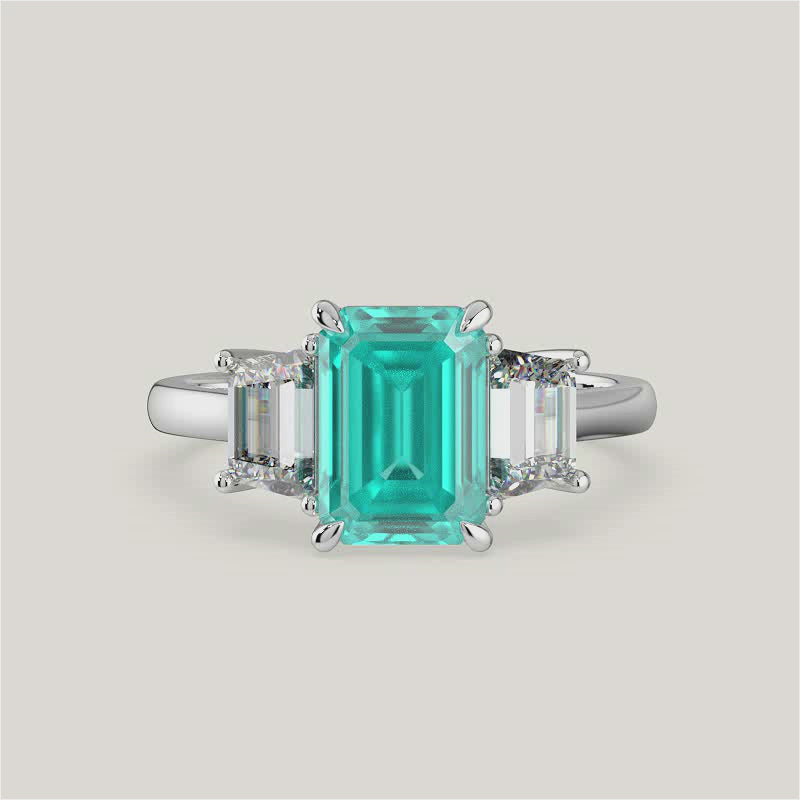 The Vows, Vintage Emerald Cut Paraiba Trilogy Ring