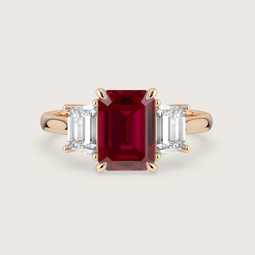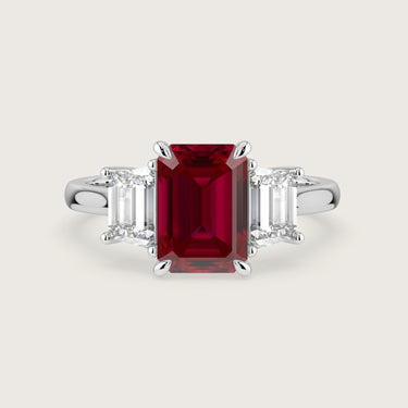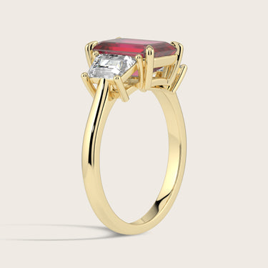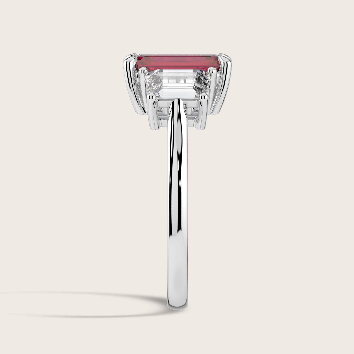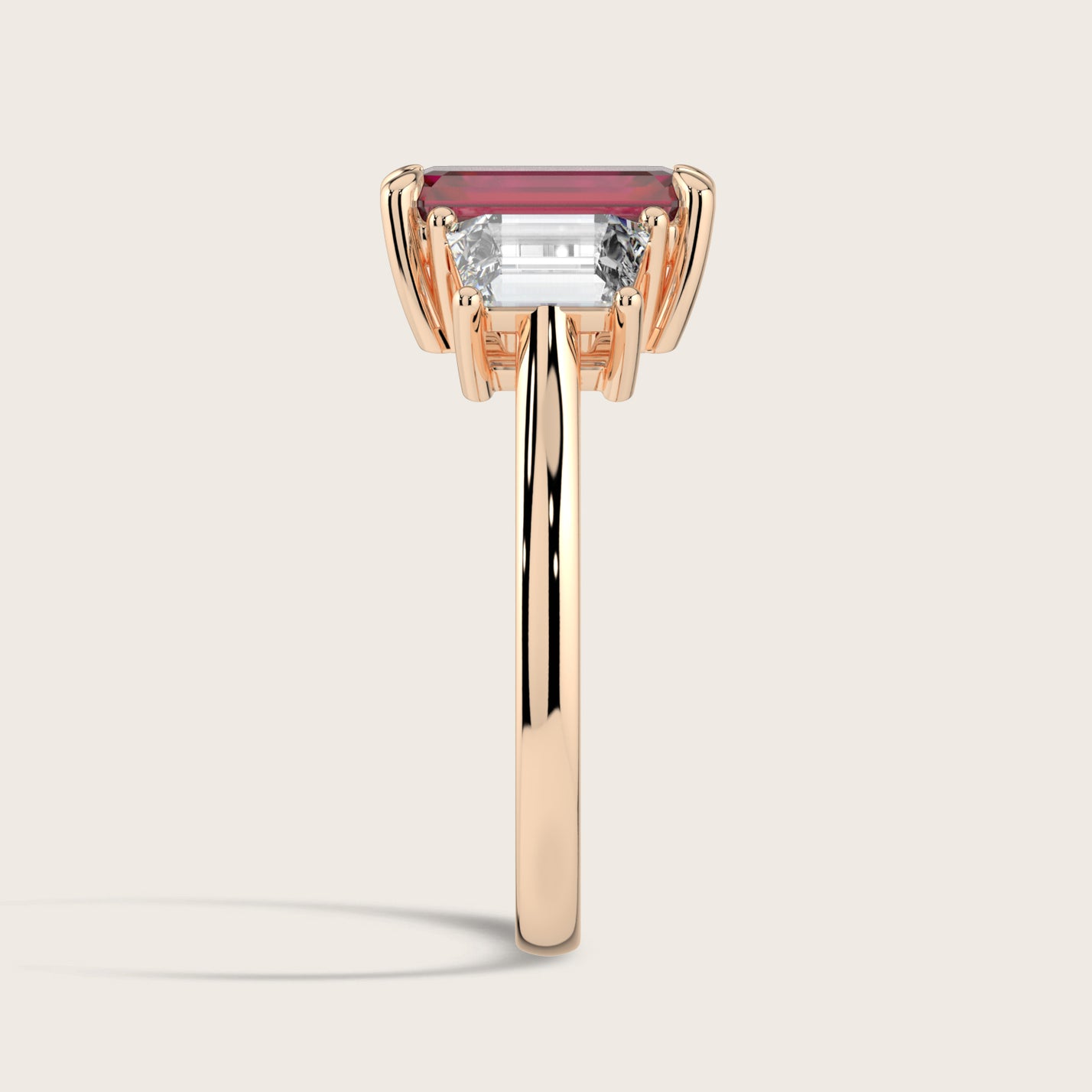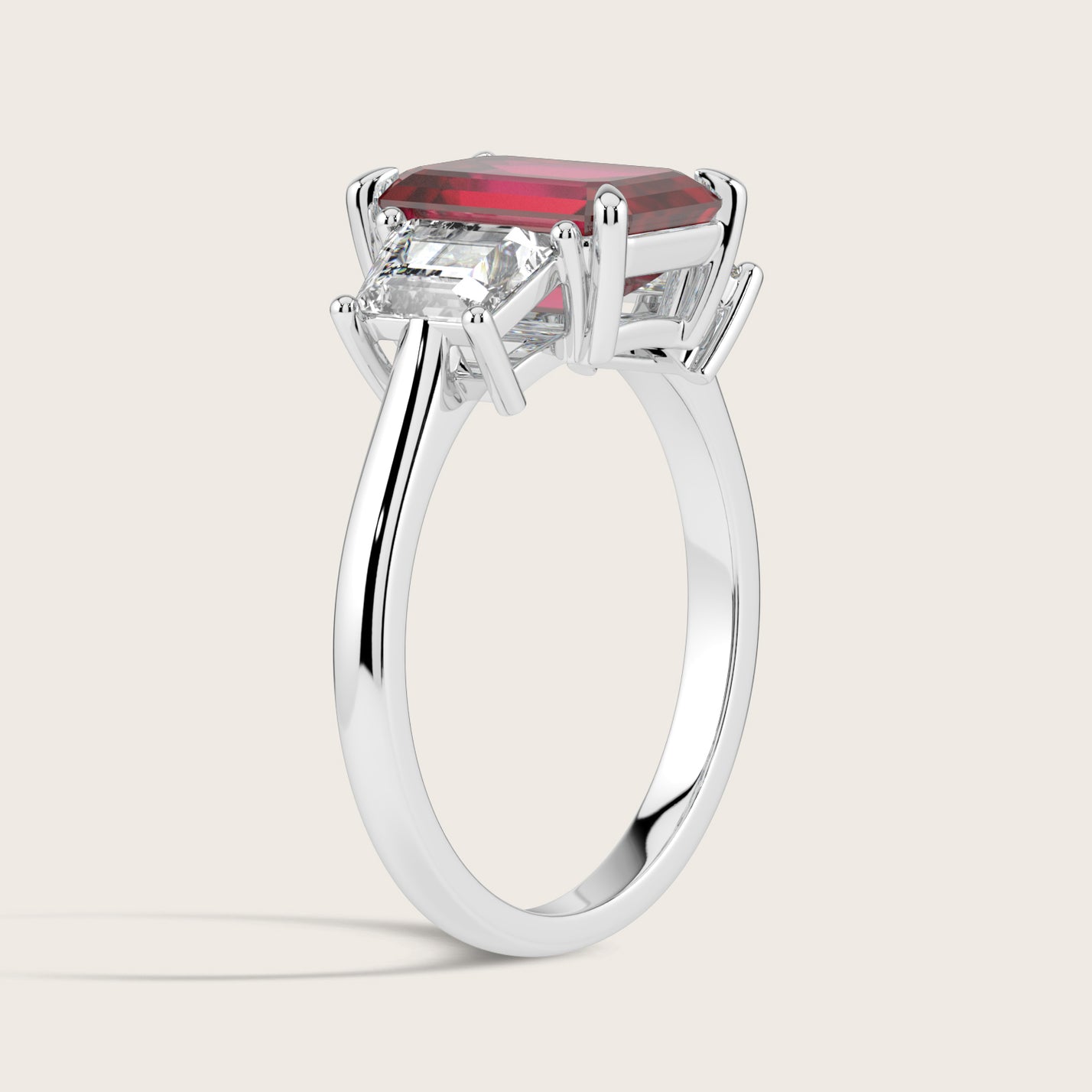 The Vows, Vintage Emerald Cut Ruby Trilogy Ring