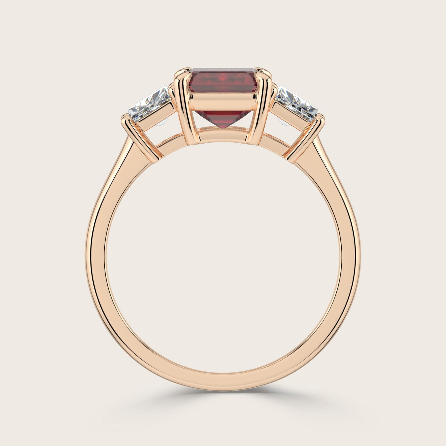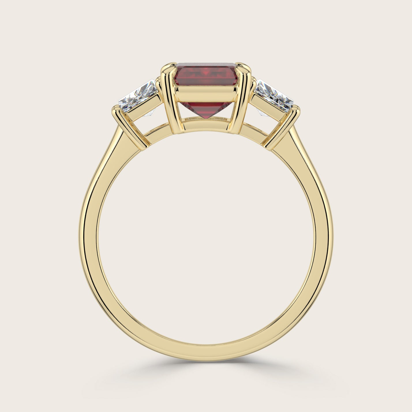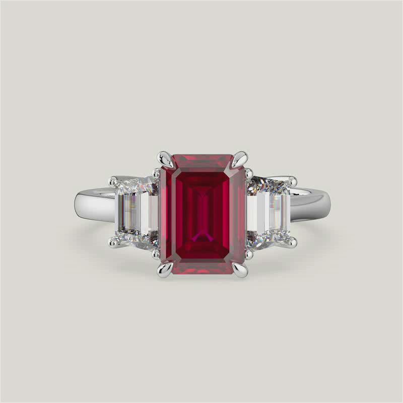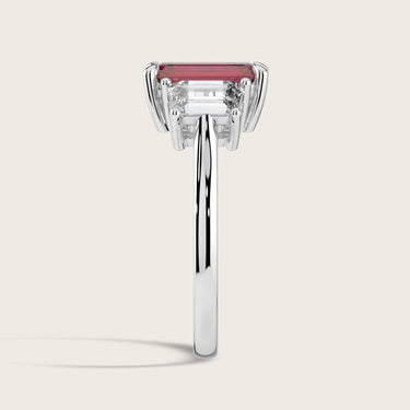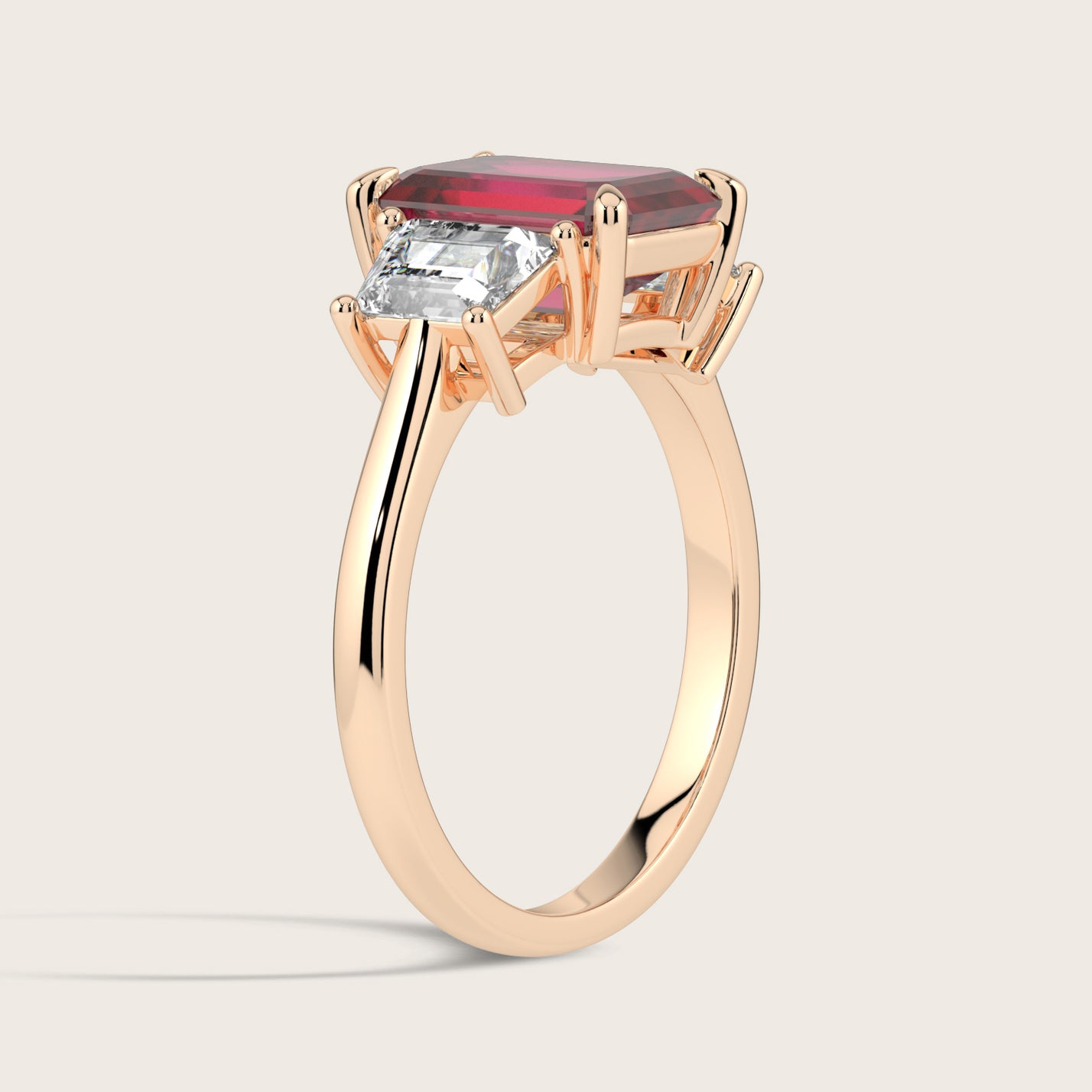 The Vows, Vintage Emerald Cut Ruby Trilogy Ring