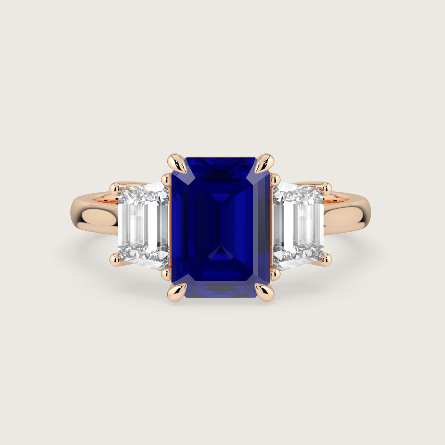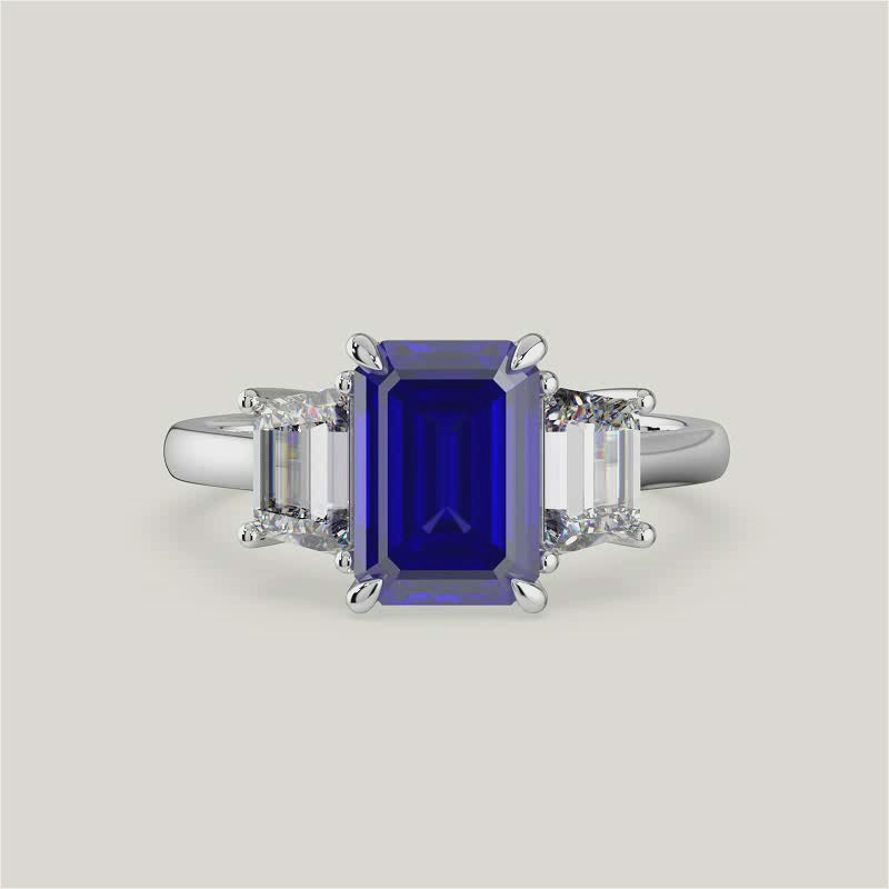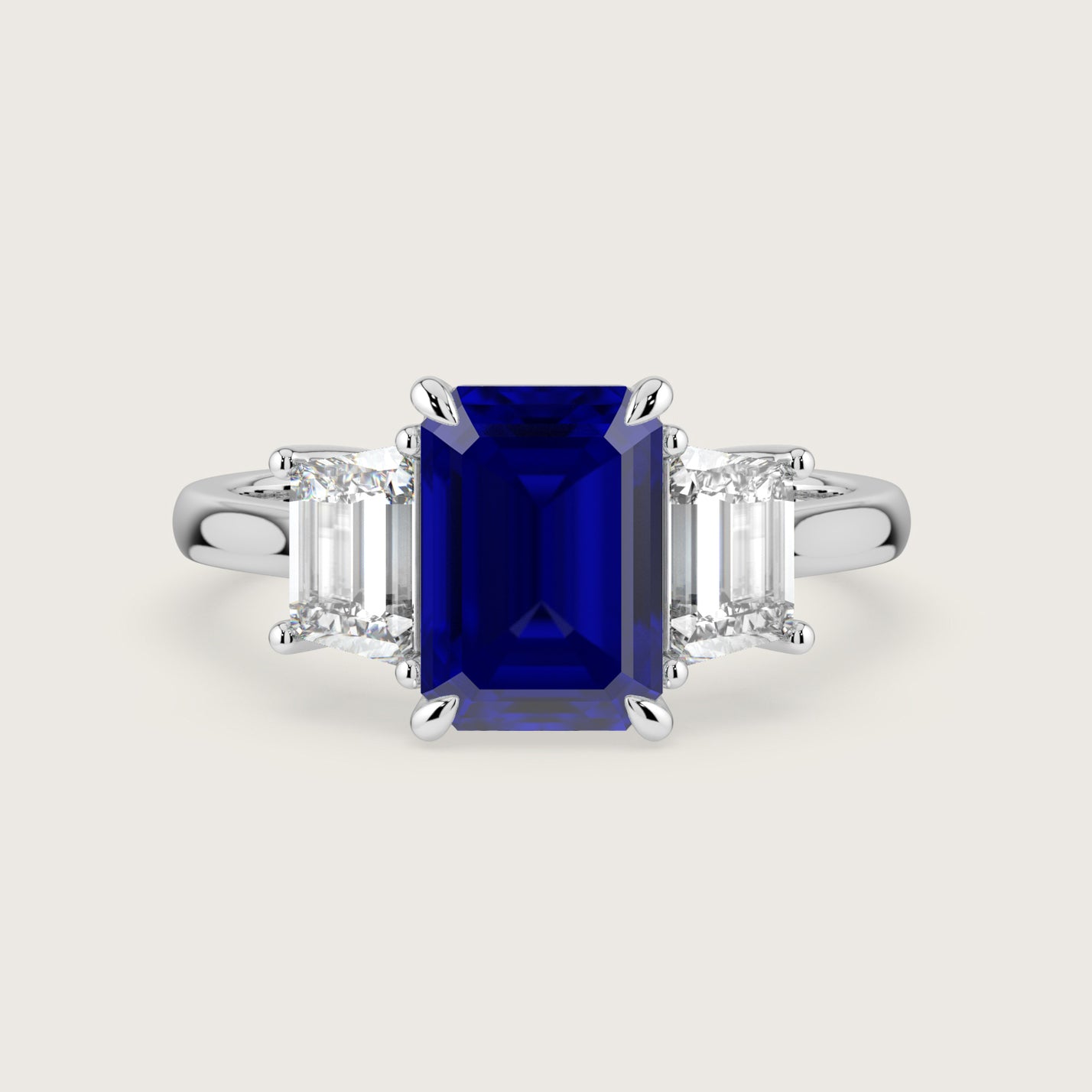 The Vows, Vintage Emerald Cut Sapphire Trilogy Ring