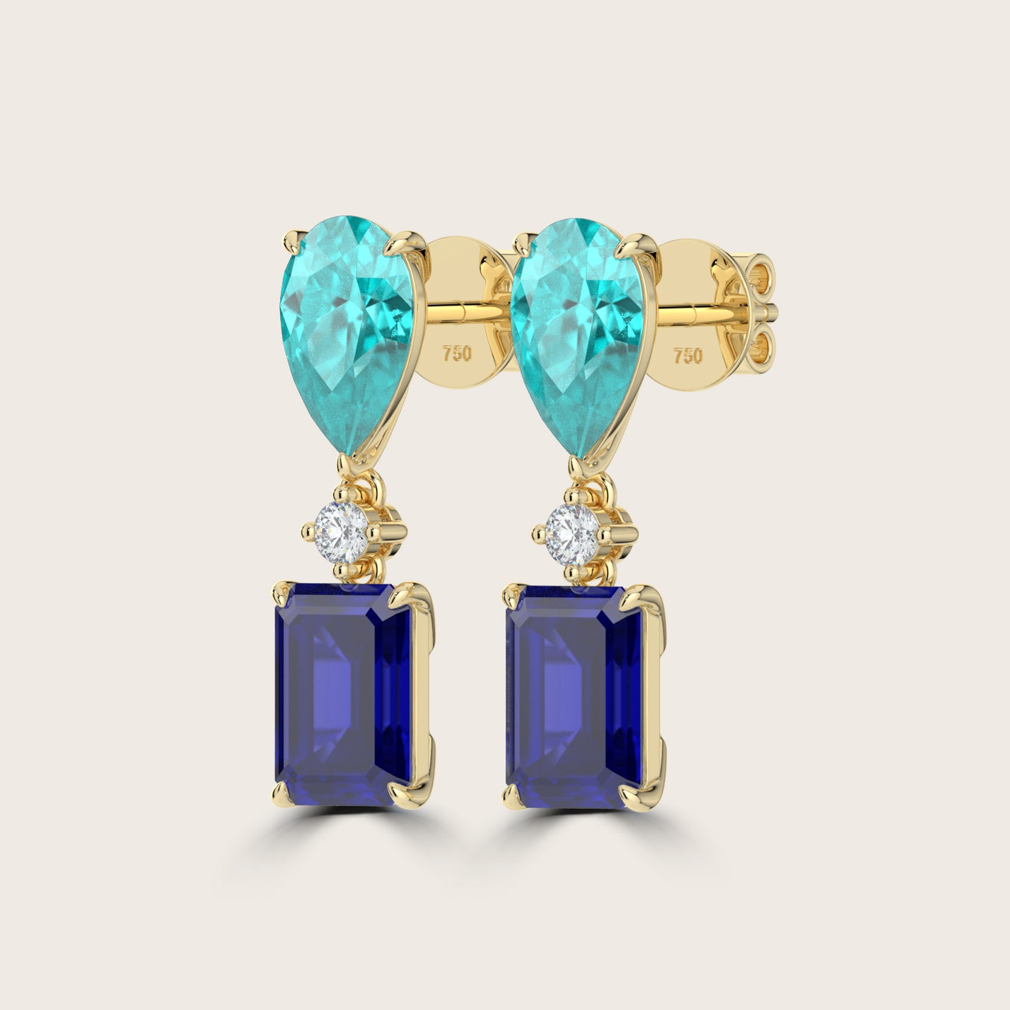 Toi Et Moi Dangling Paraiba & Sapphire Earrings
